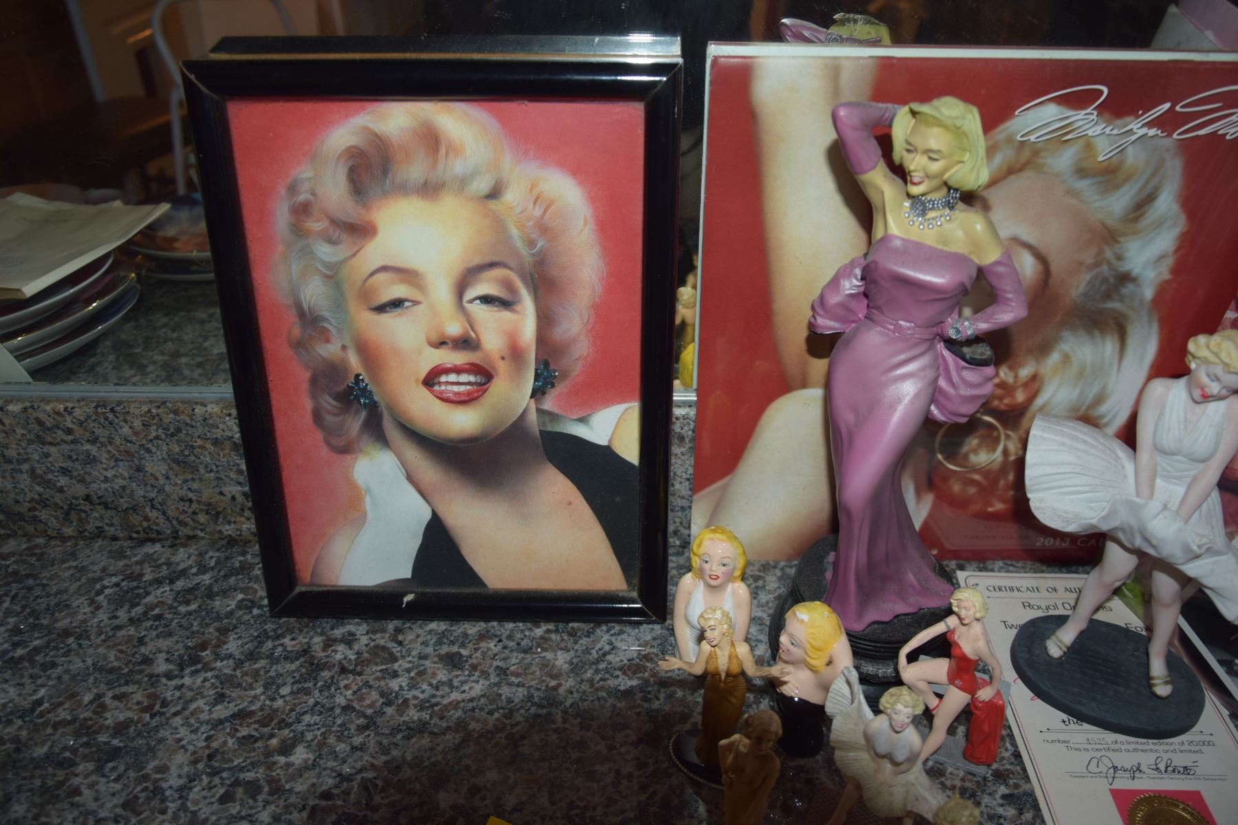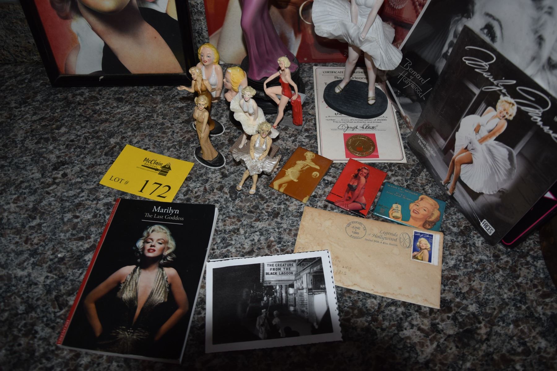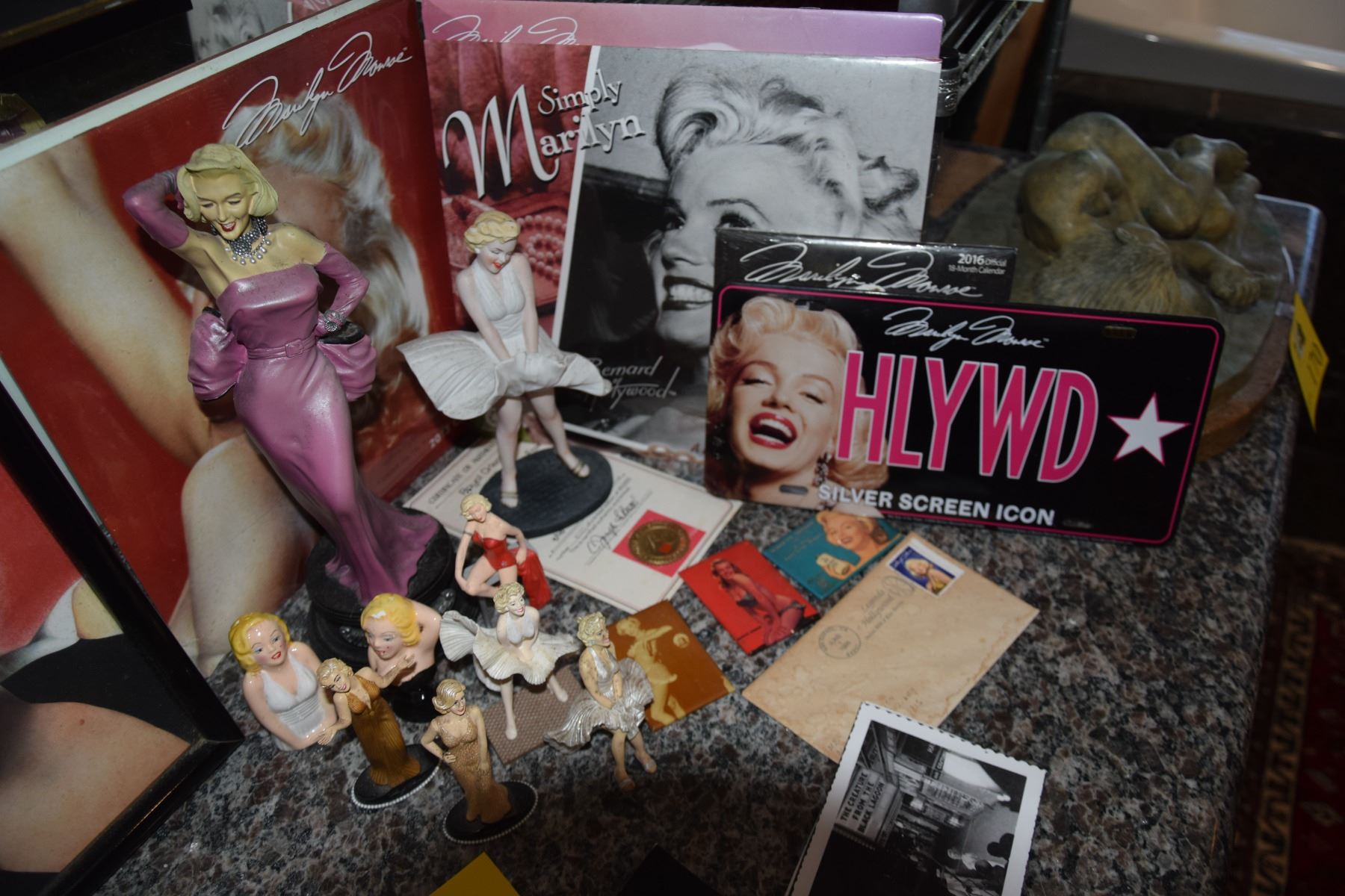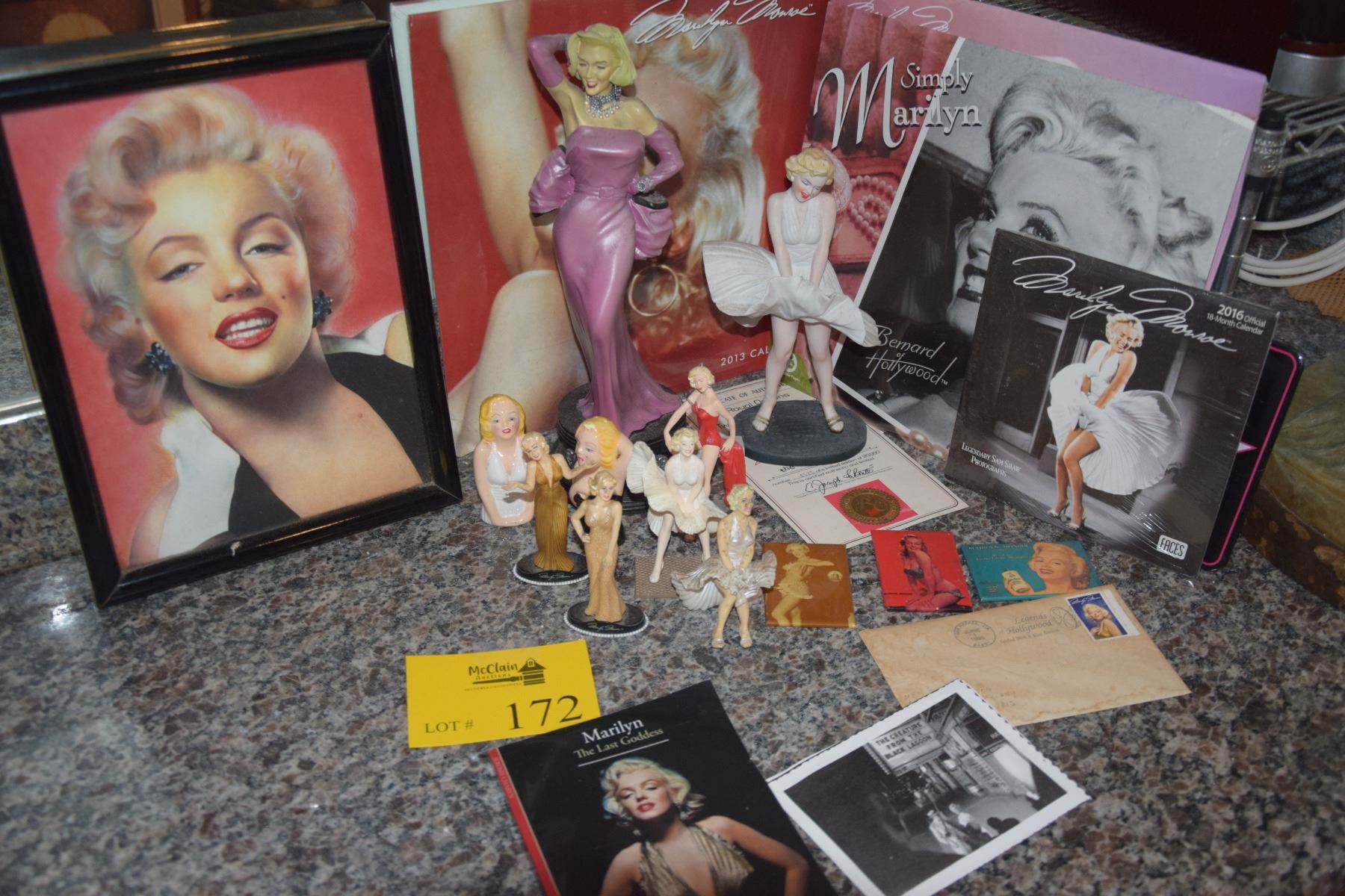 MARILYN MONROE FIGURINES, RECORDS, MAGAZINES, LICENSE PLATE & CALENDARS (22 PCS)