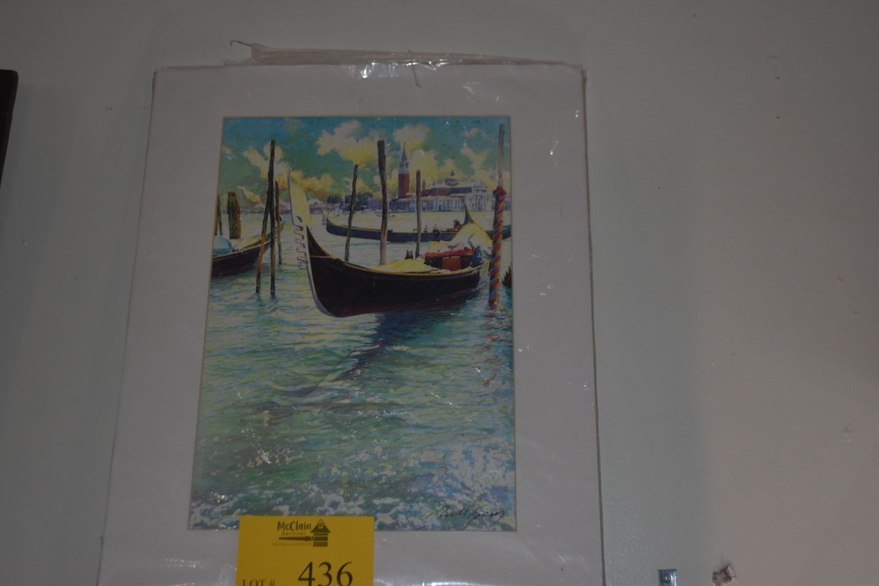 MATTED PRINT, "GONDOLAS VENICE" BY RUSSELL YOUNG (16" X 20")