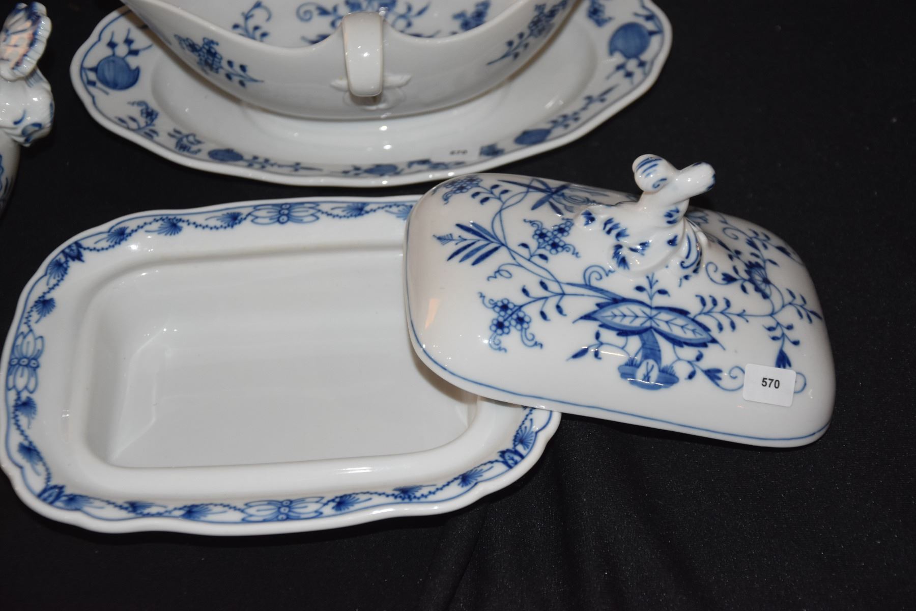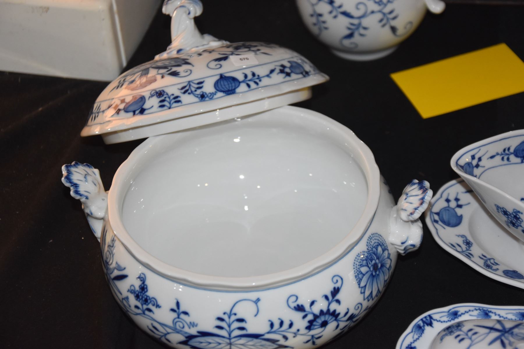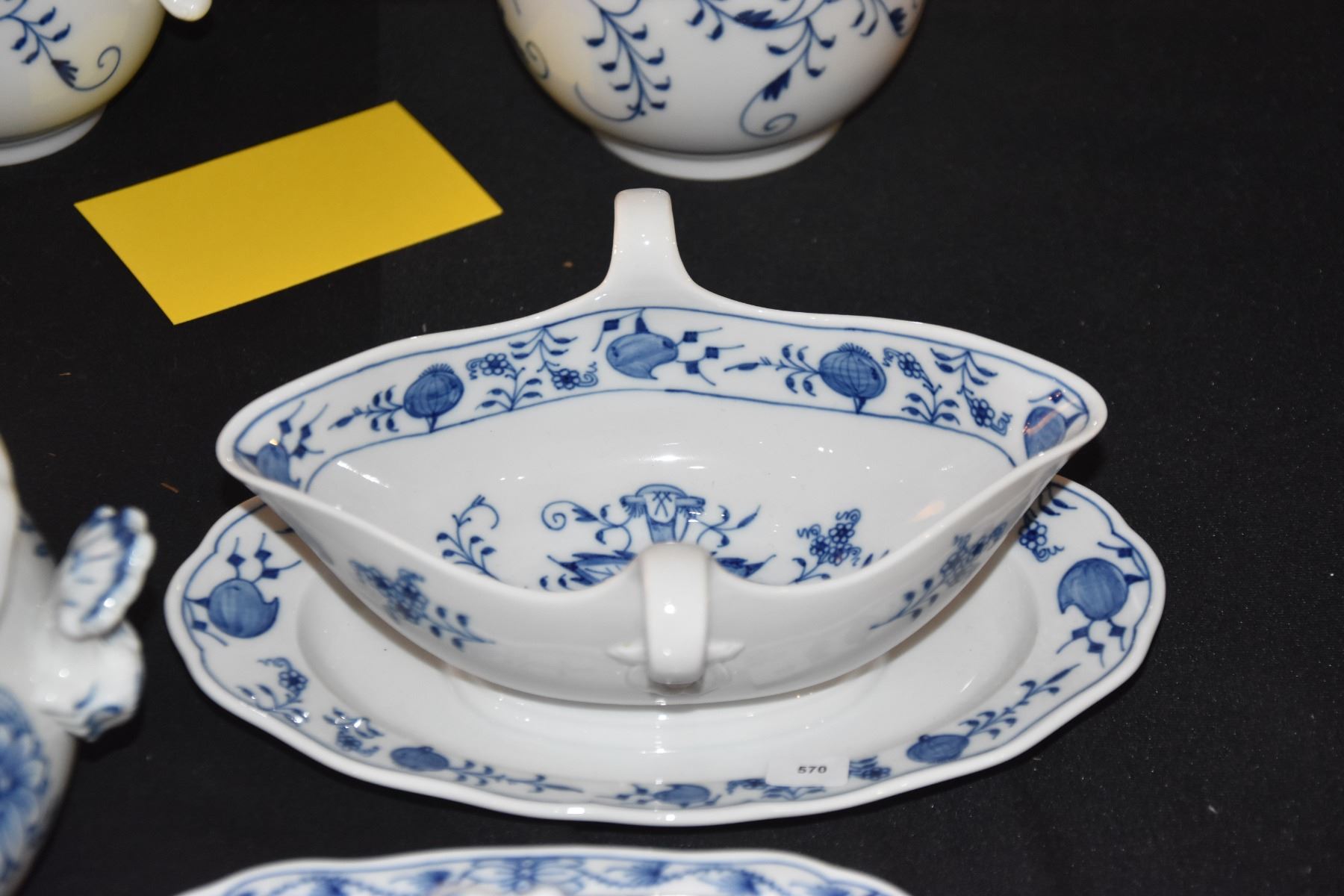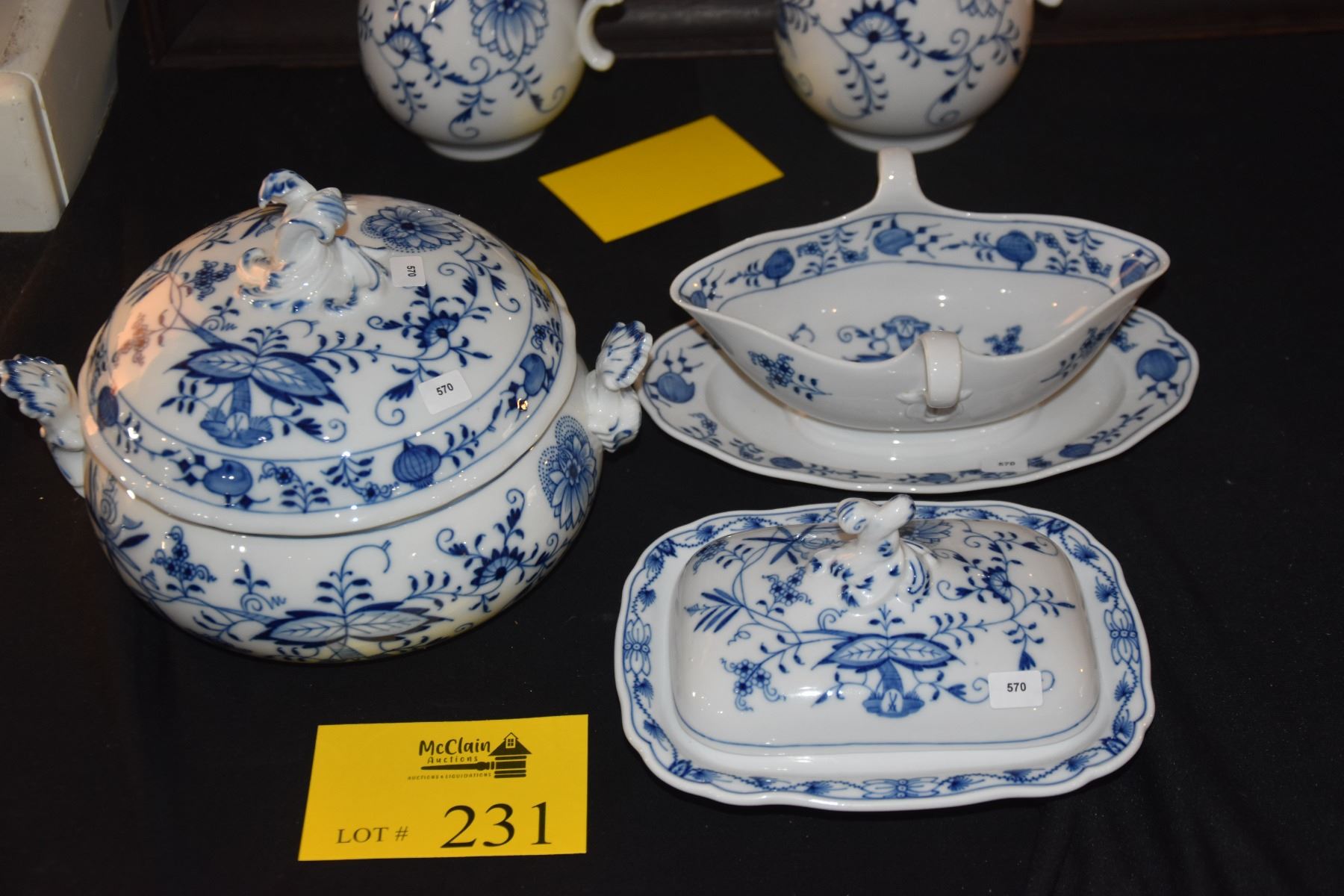MEISSEN COVERED TUREEN, GRAVY BOAT & COVERED DISH, BLUE ONION PATTERN (3 PCS)