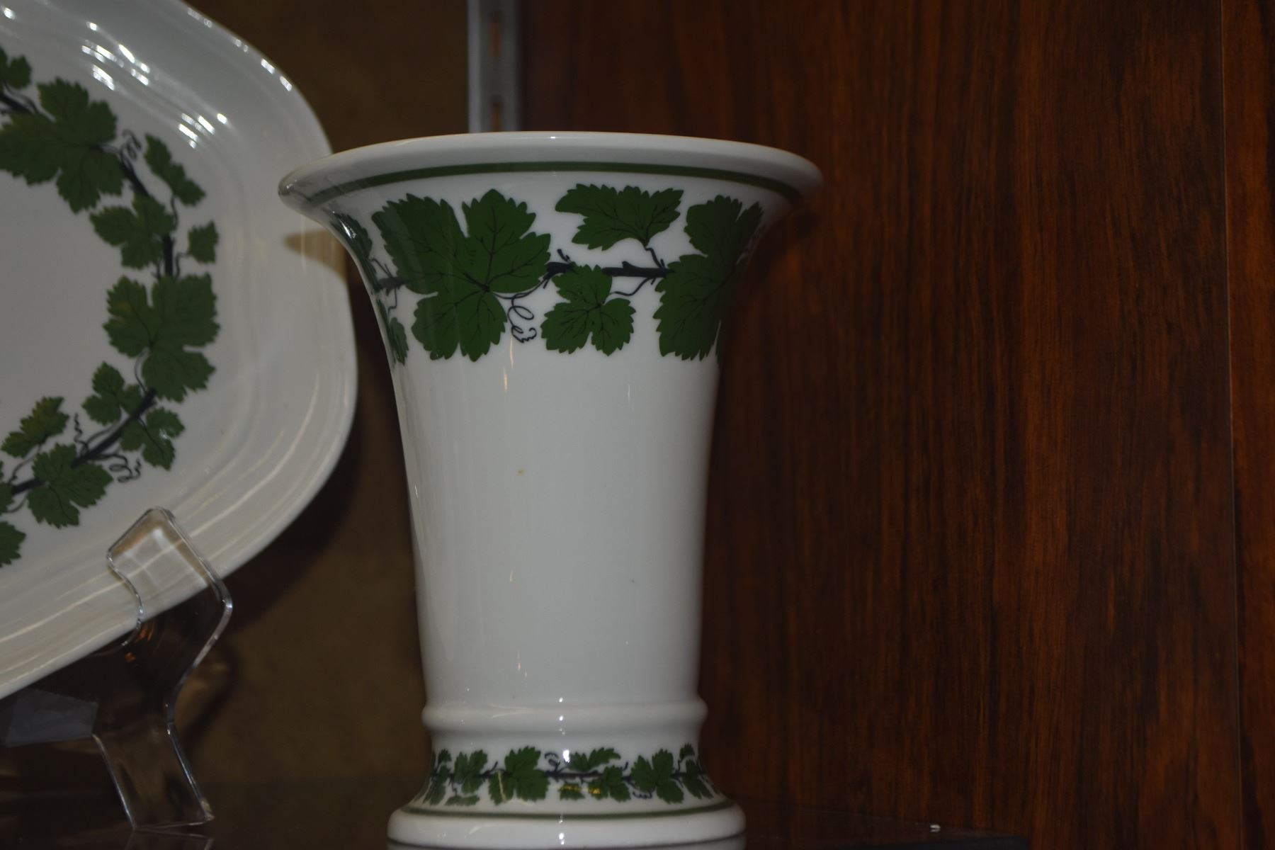 MEISSEN GREEN IVY PORCELAIN TRAY & VASES (3 PCS)