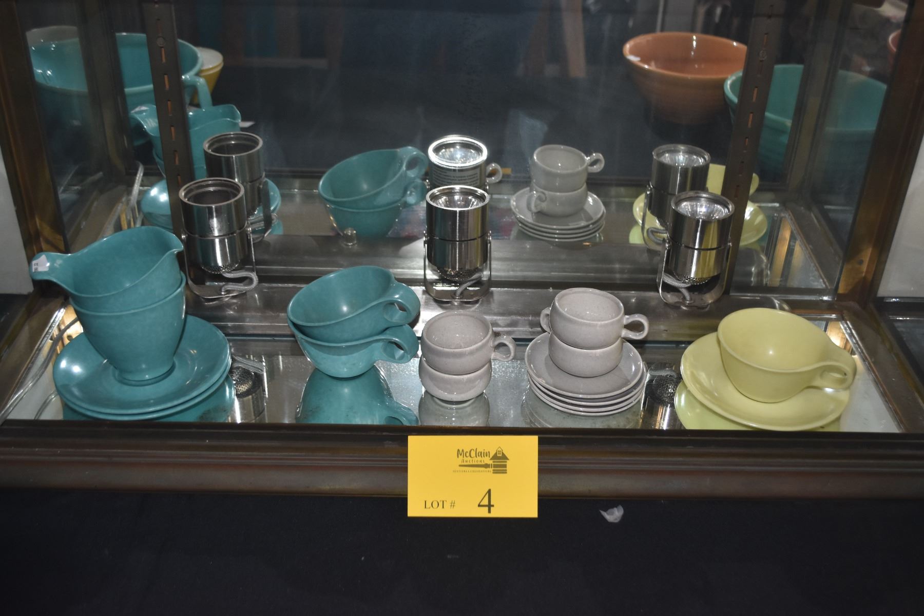 MELAMINE CUPS, SAUCERS, SUGAR, CREAMER & CERAMIC DEMITASSE CUPS & SAUCERS (16 PCS)
