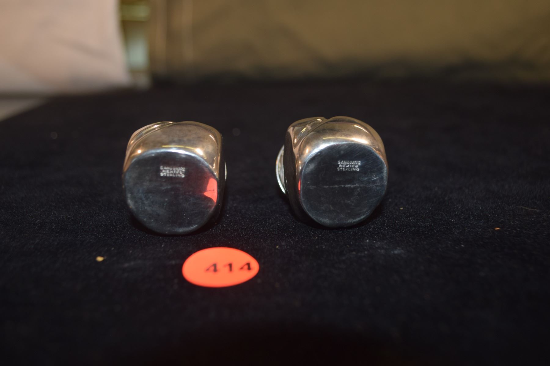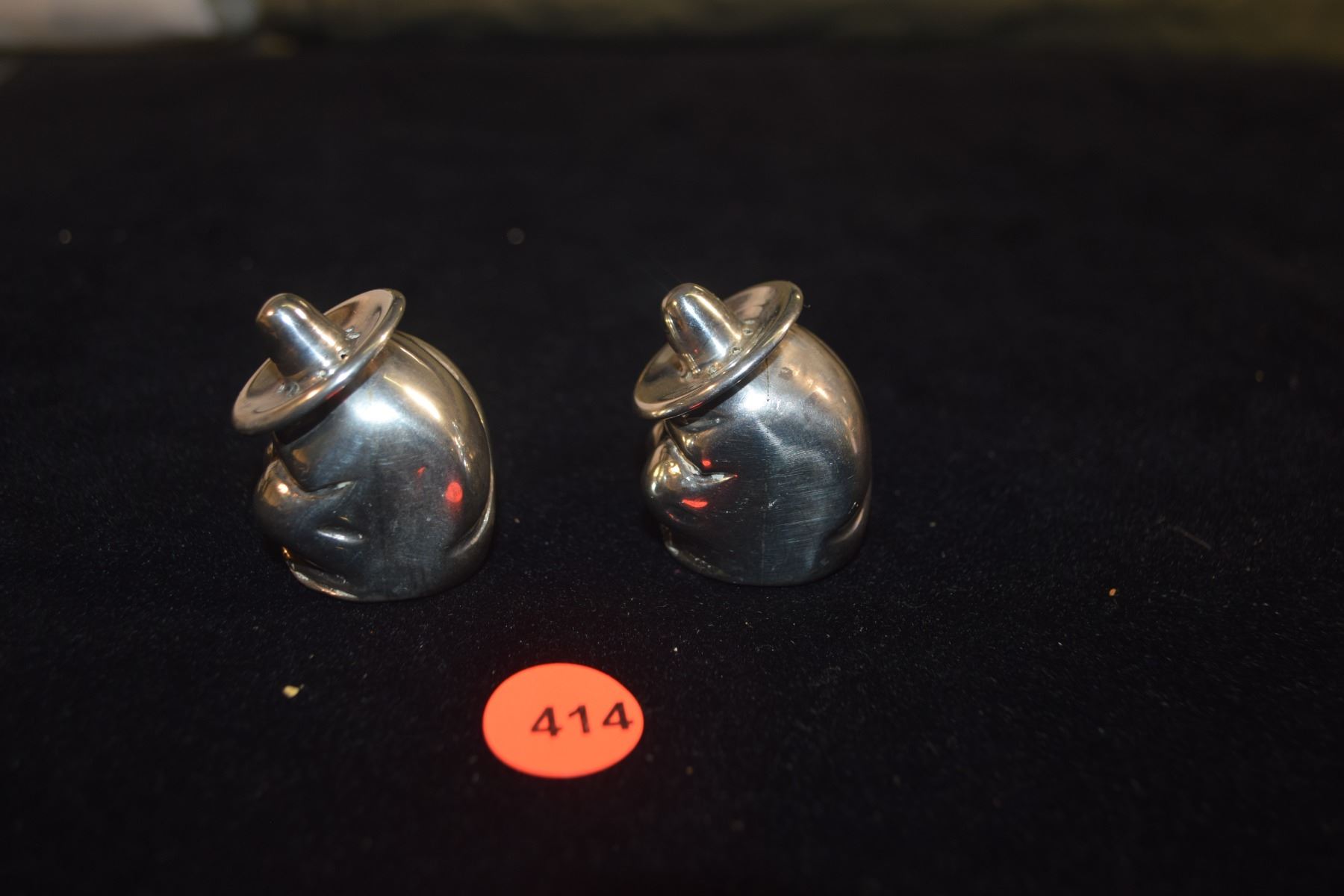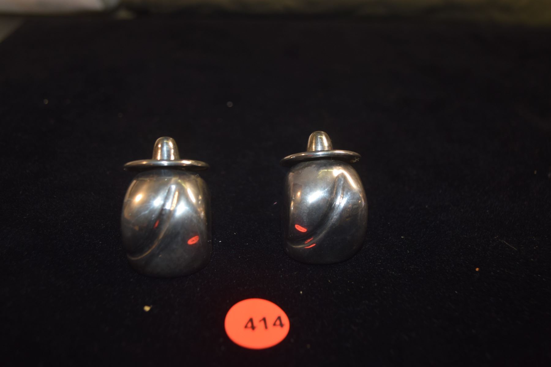 MEXICAN STERLING SIESTA POSE SALT & PEPPER SHAKERS (PUEBLOS W/SOMBREROS); SIGNED SANBORNS (61 G)