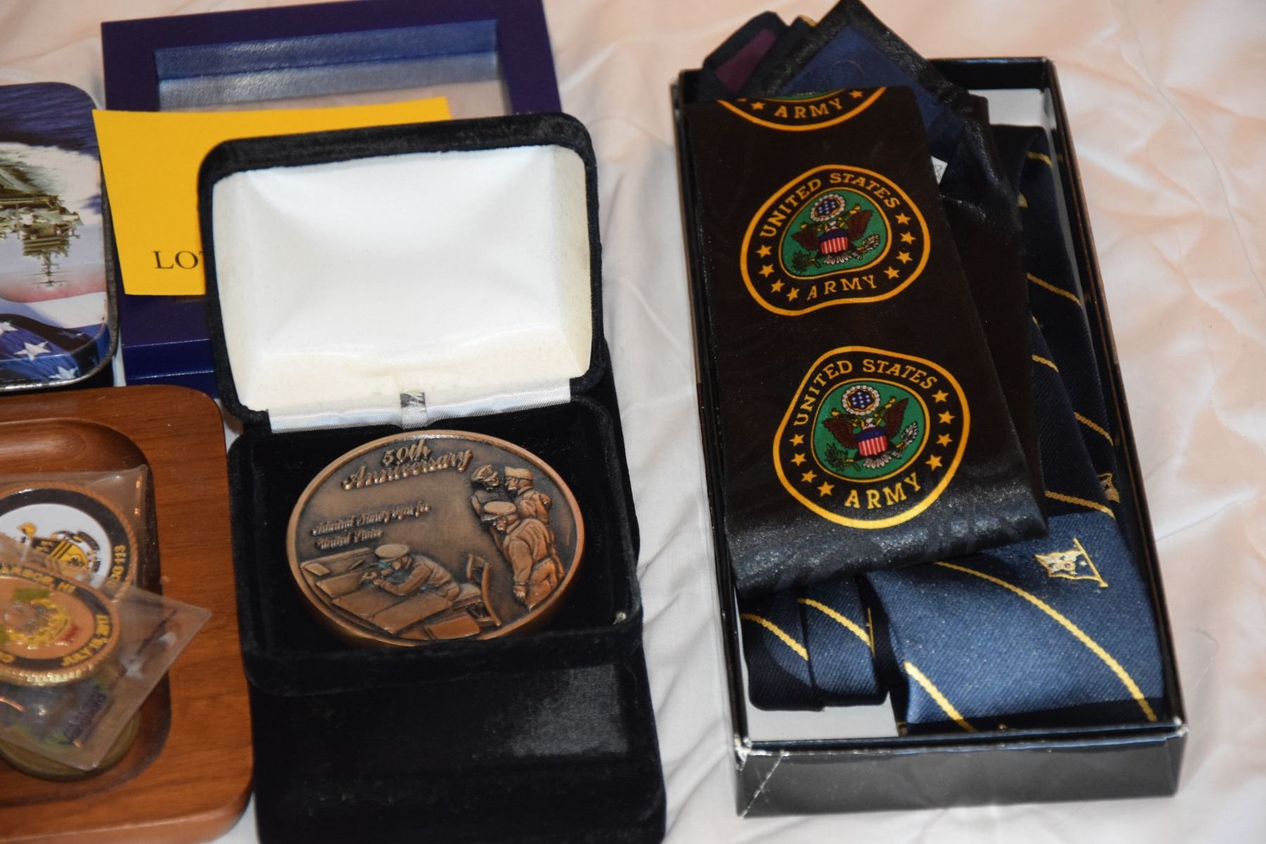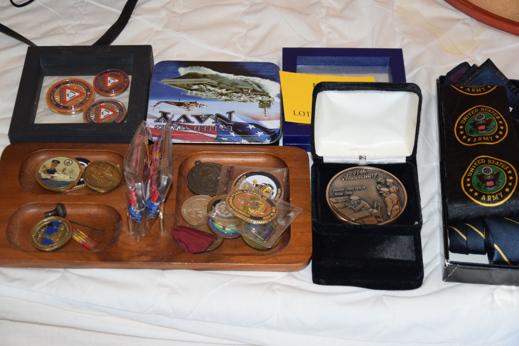 MILITARY MEDALLIONS, TIES, ETC. (30 PCS)