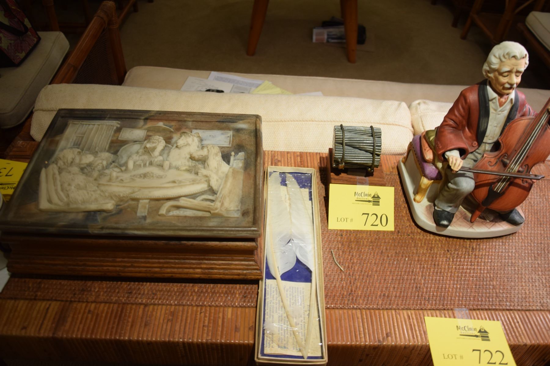 MIXED LOT: BOX, SUSPENSION CABLE, PORCELAIN MUSICIAN (3 PCS)