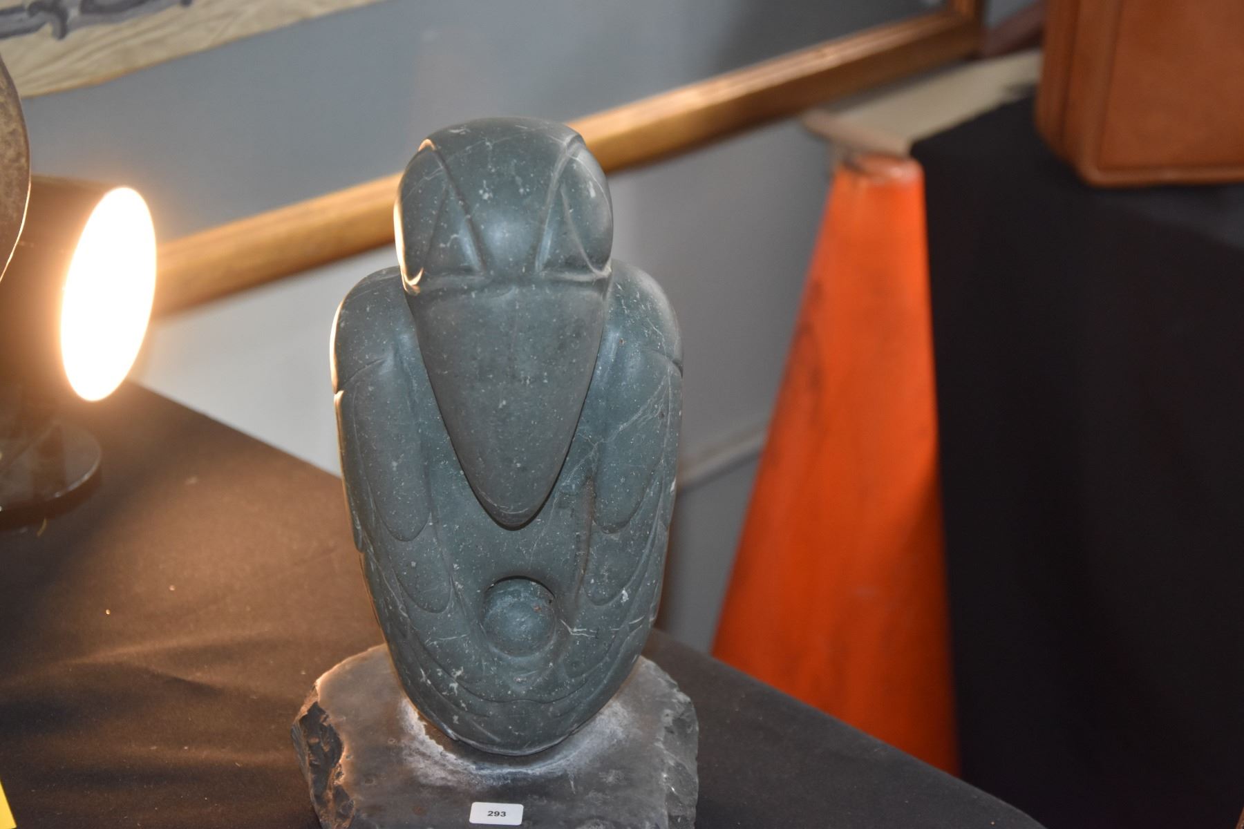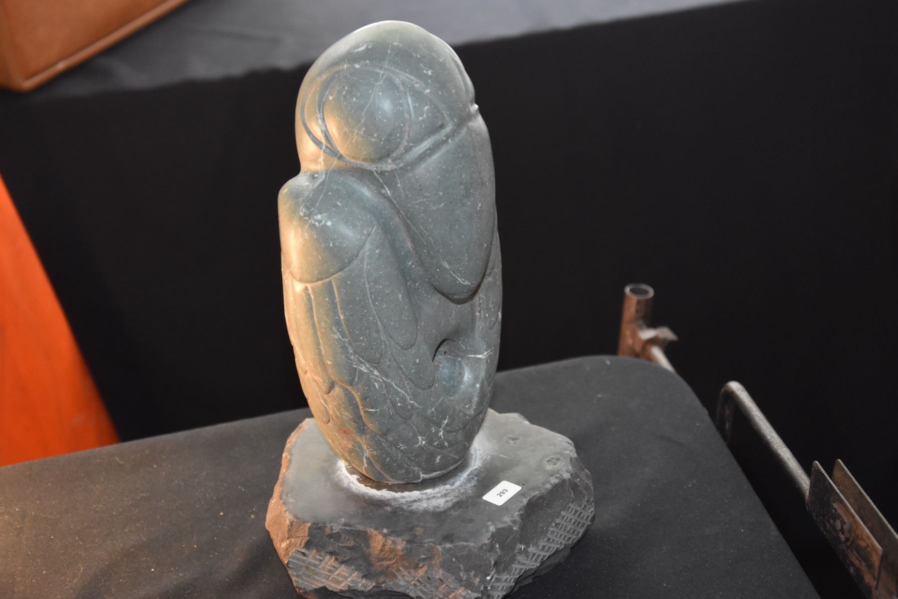 MIXED LOT: CERAMIC FREE FORM SCULPTURE & OLMEC STONE SCULPTURE (12 1/2 & 13 1/2") (2 PCS)