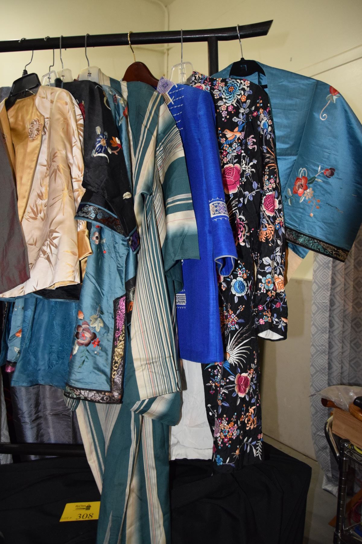 MIXED LOT: CHINESE SILK EMBROIDERED COATS & TOPS & JAPANESE KIMONO (7 PCS)