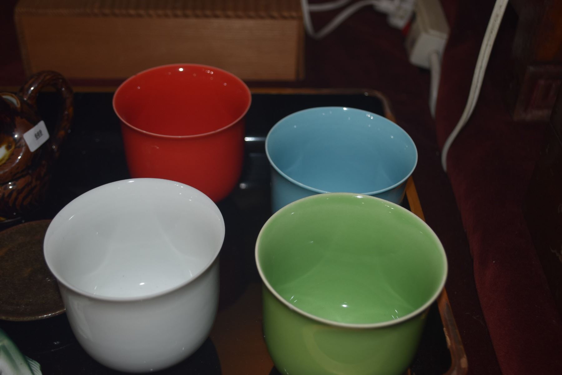 MIXED LOT: JAPANESE DONABE, BOWLS, CUPS, CHOPSTICK RESTS, PORCELAIN BEAR FIGURAL CREAMERS, ETC. (23 PCS)