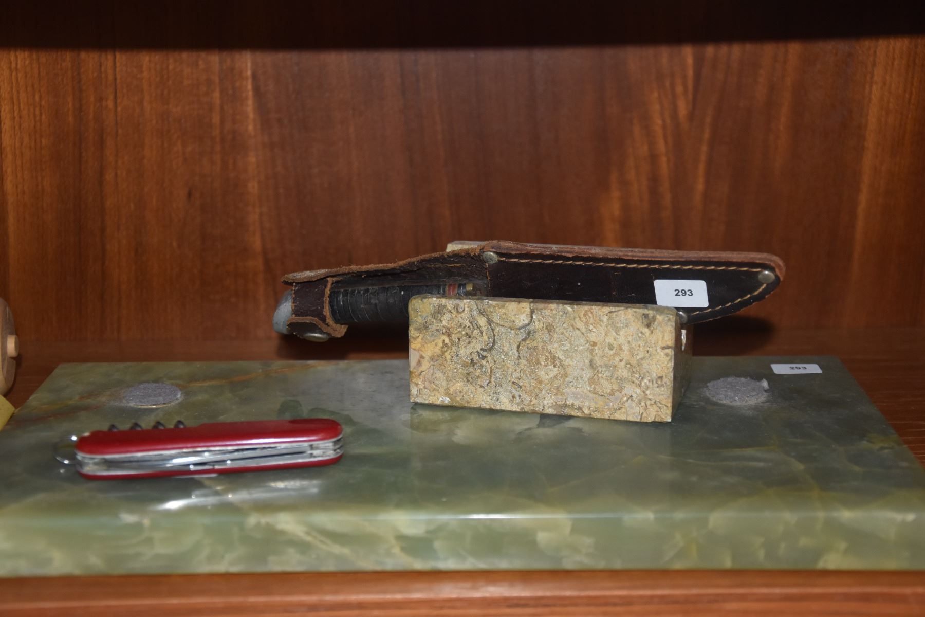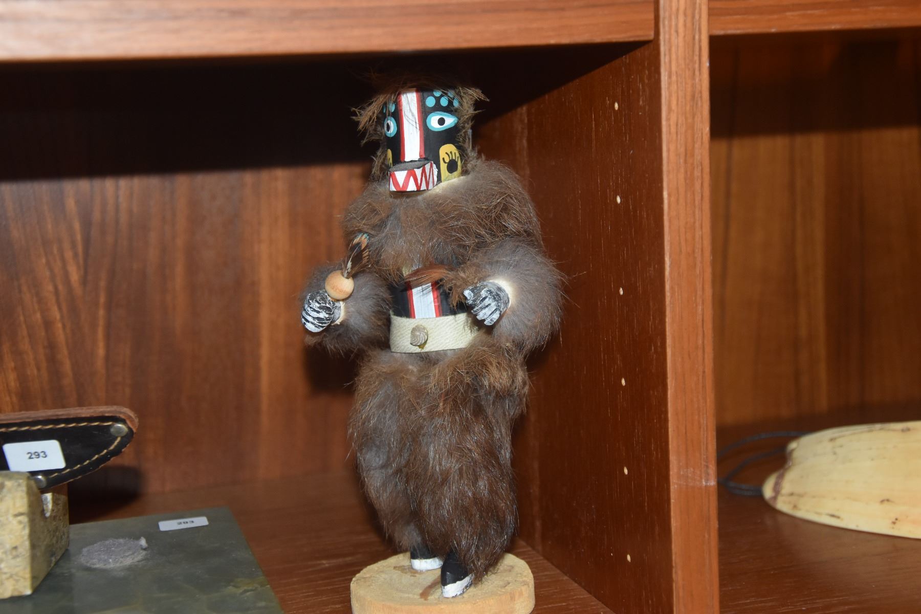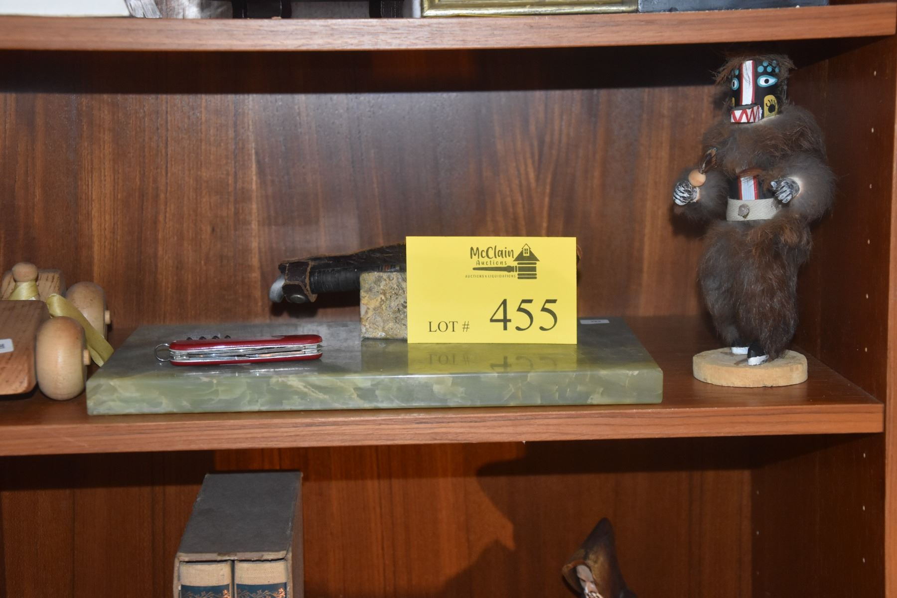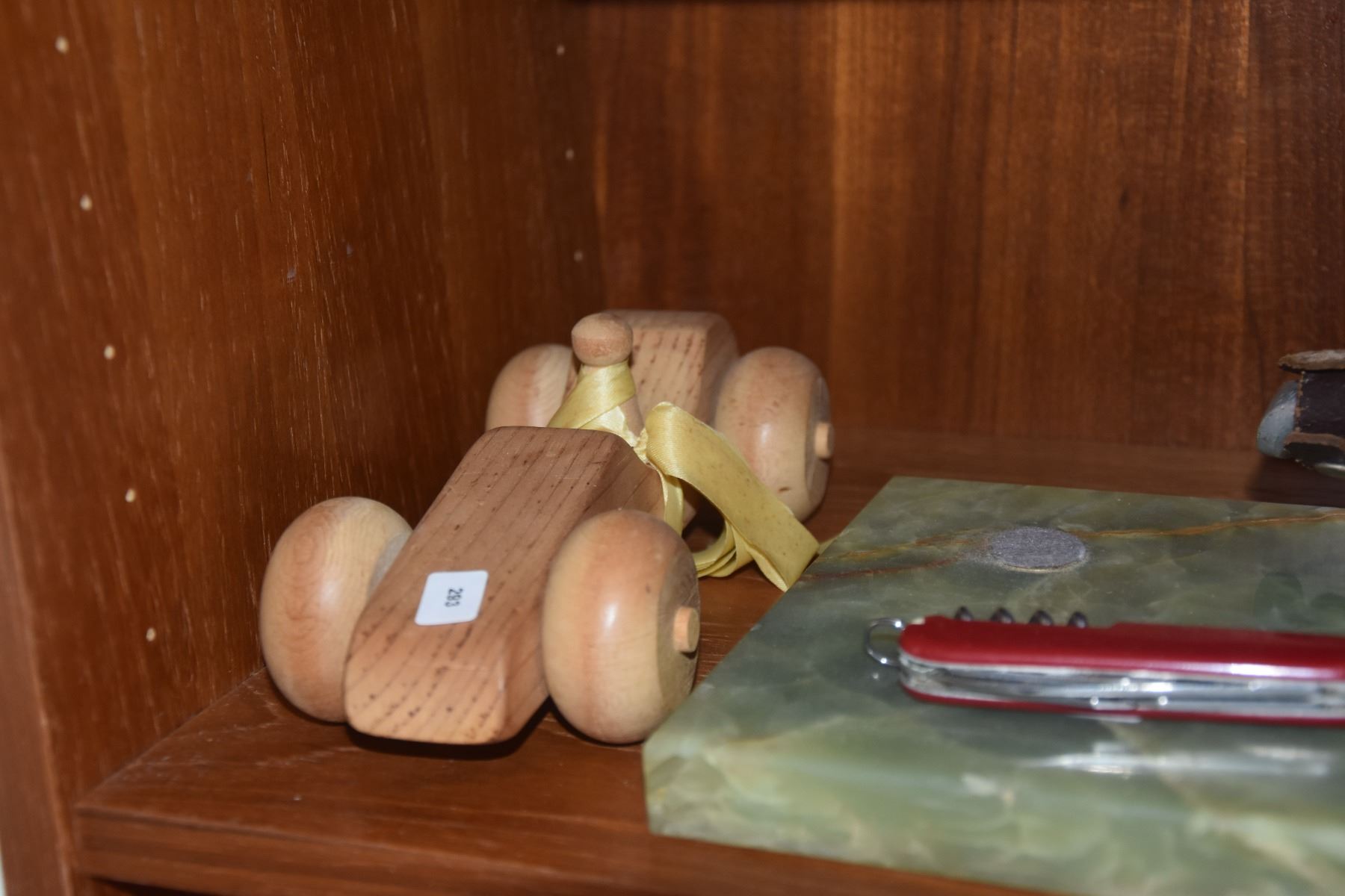 MIXED LOT: KNIVES, WOODEN CAR, SPIRIT DOLL & DESK SET (6 PCS)