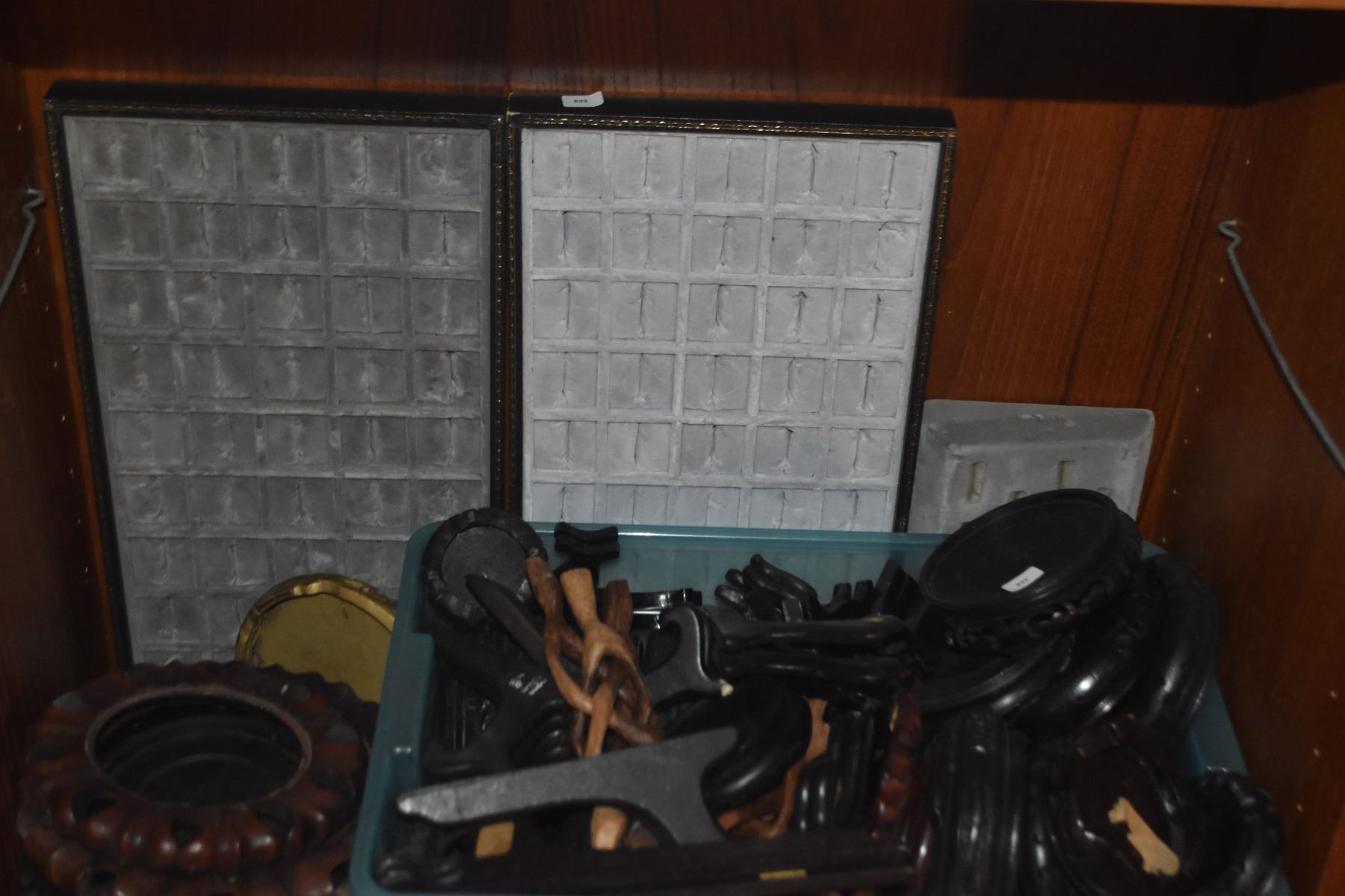 MIXED LOT: RING TRAYS & NUMEROUS WOOD PLATE & VASE STANDS