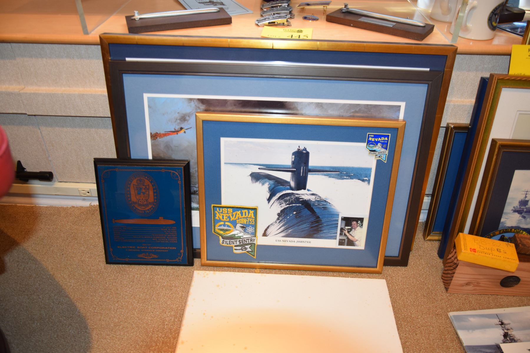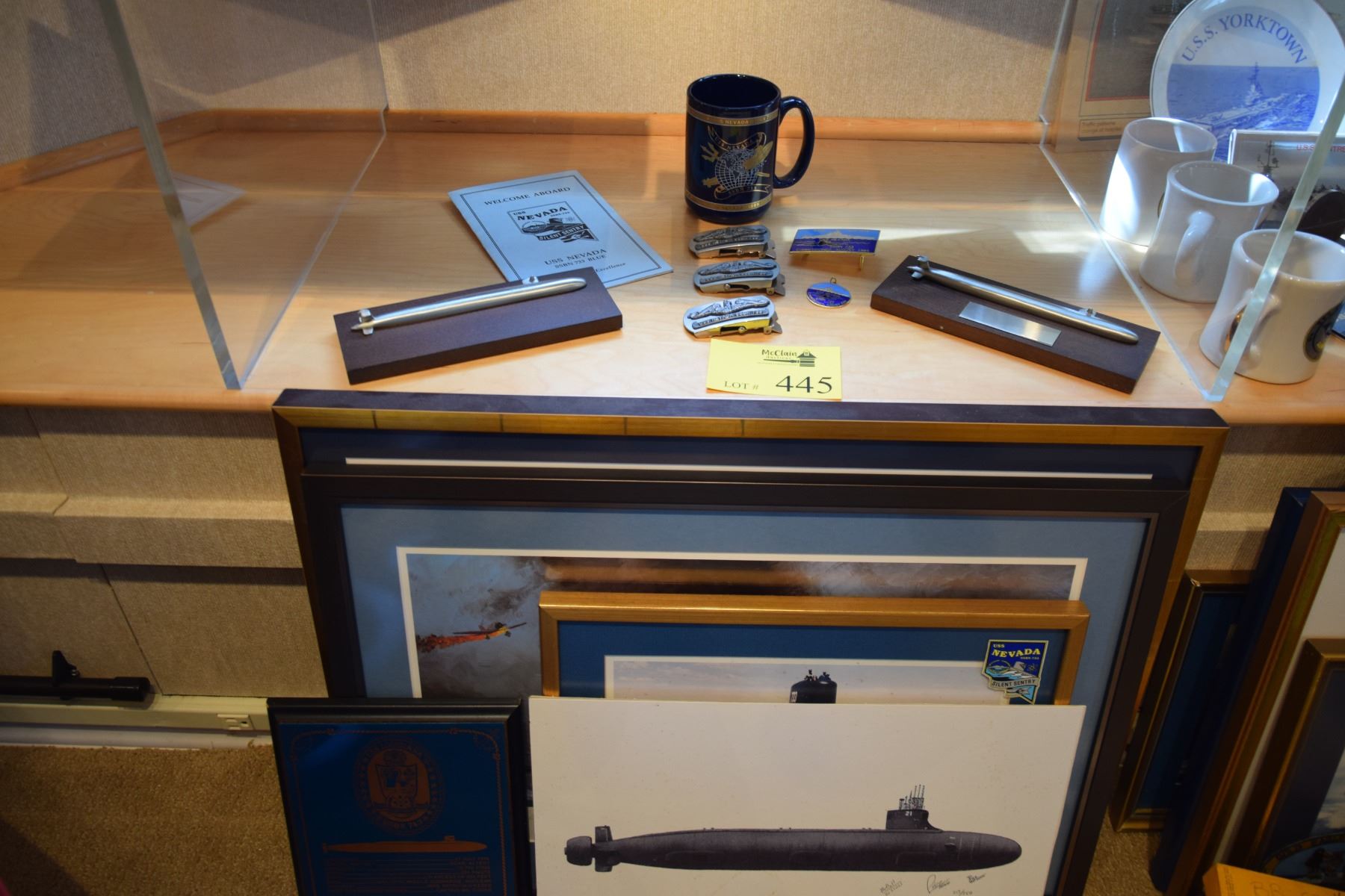 MIXED LOT: SUBMARINES-CUP, BELT BUCKLES, PENDANT & FRAMED ART
