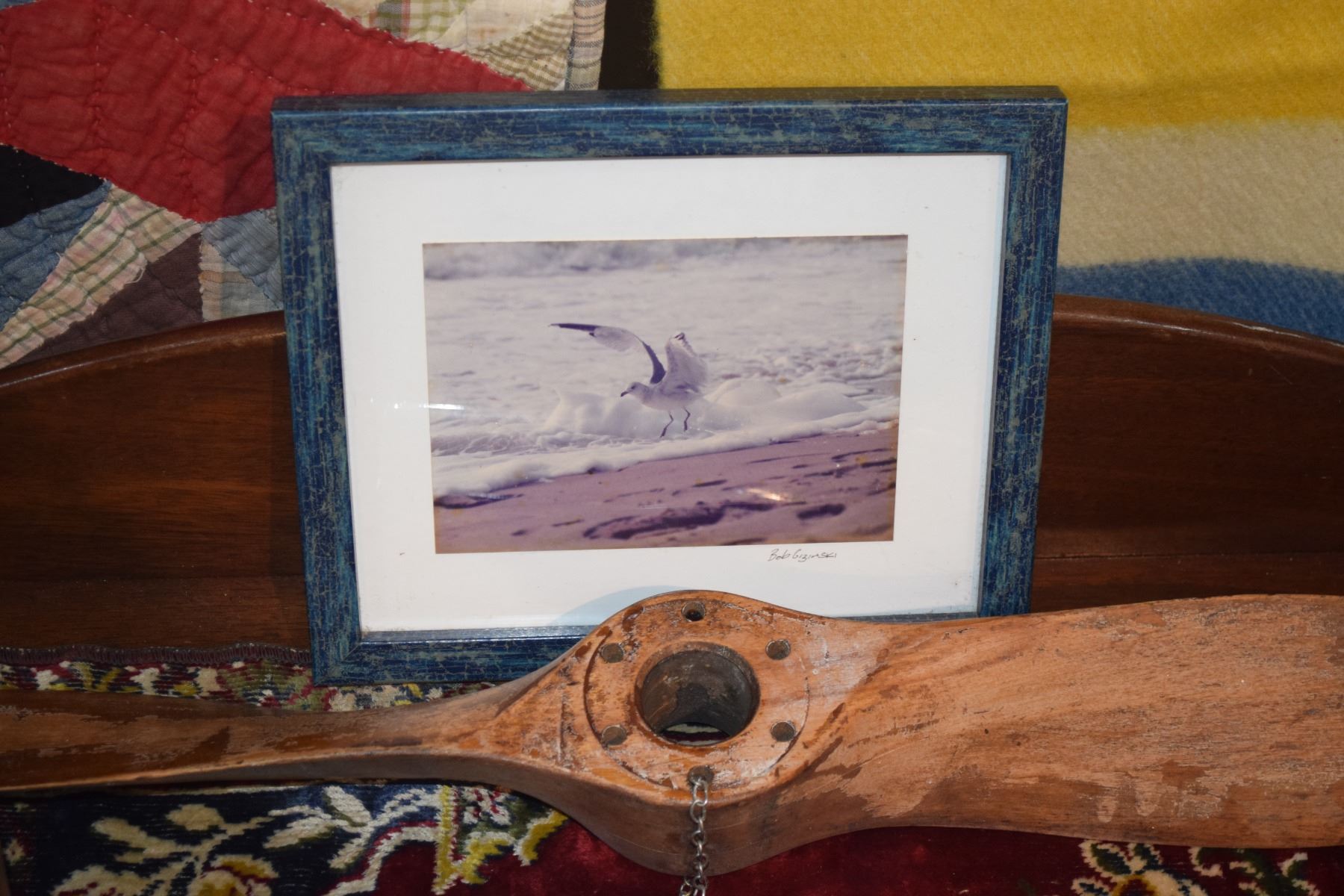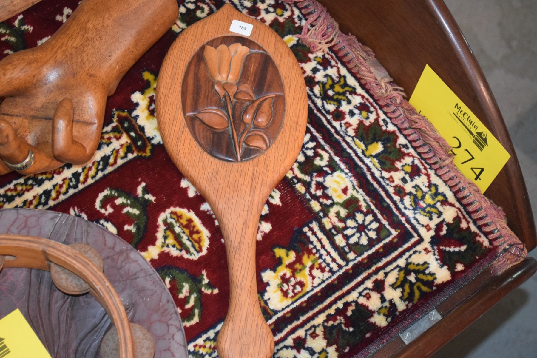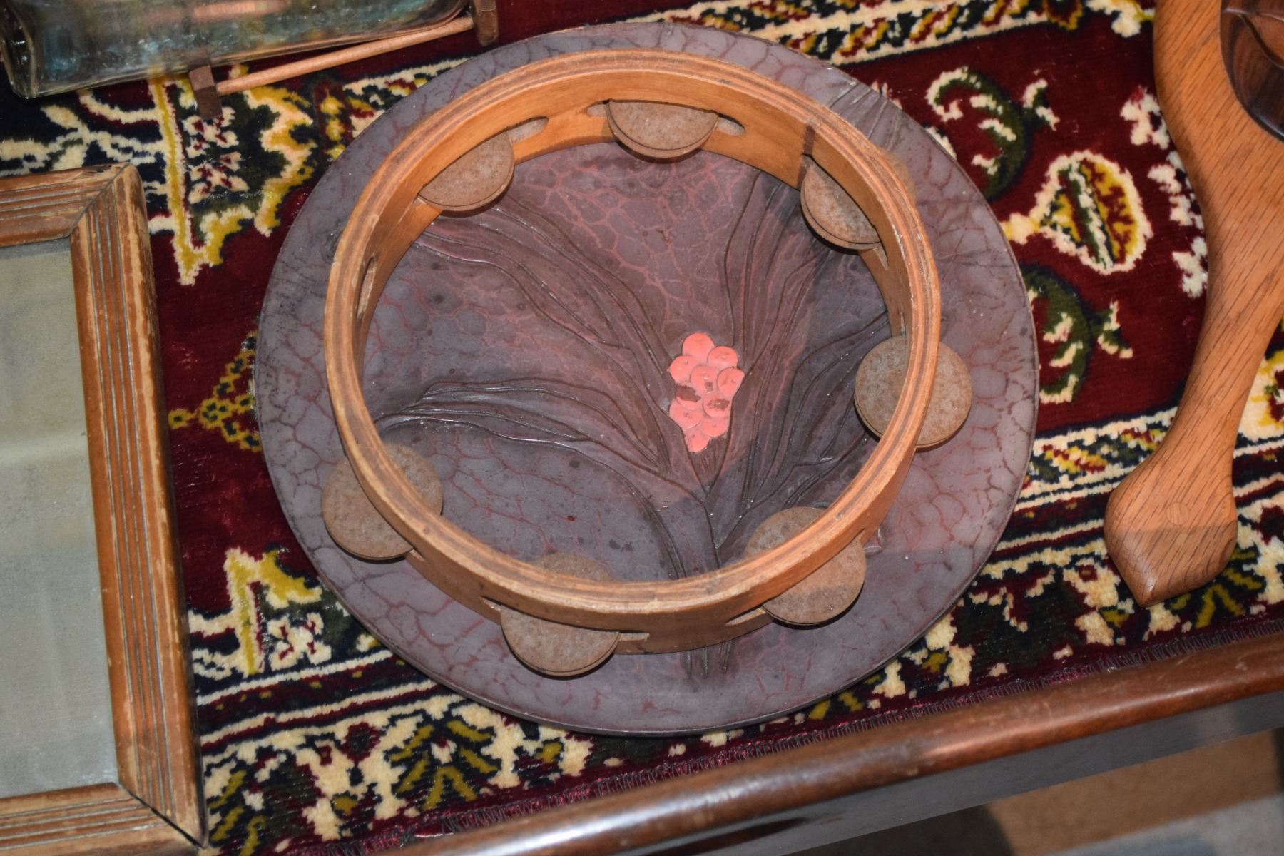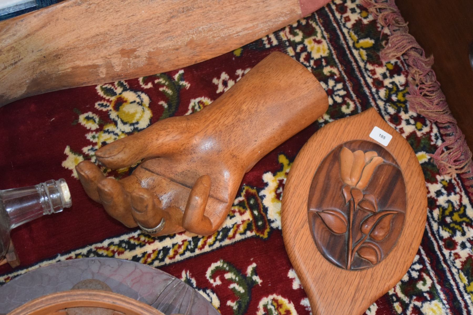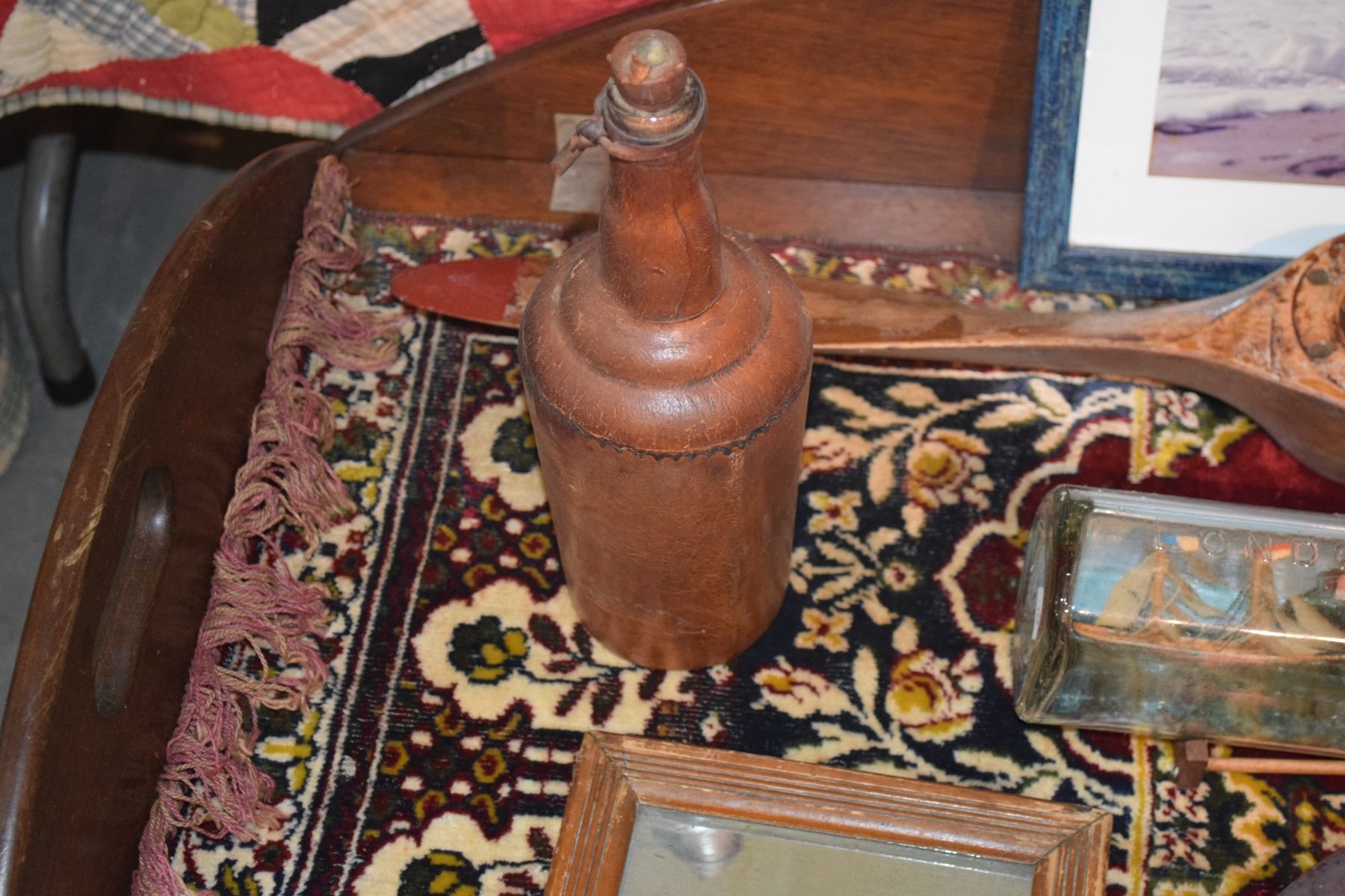 MIXED LOT: TAMBOURINE, MIRRORS, SHIP IN BOTTLE, PROPELLER, PLATE, BOTTLE, WOOD HAND & MAT (9 PCS)