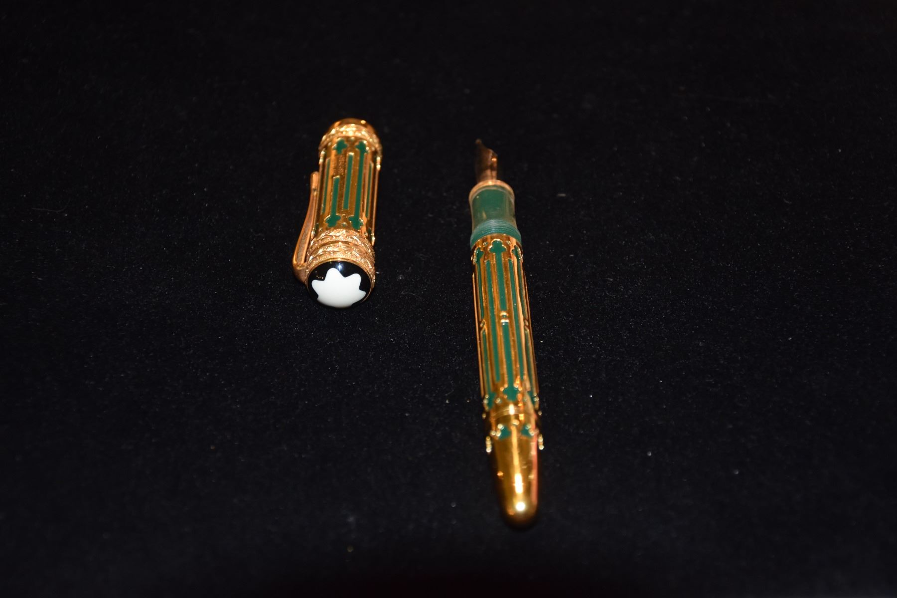 MONTBLANC GOLD & LACQUER GREEN FOUNTAIN PEN (LIMITED EDITION) (INCLUDING INK REFILL) (2 PCS)