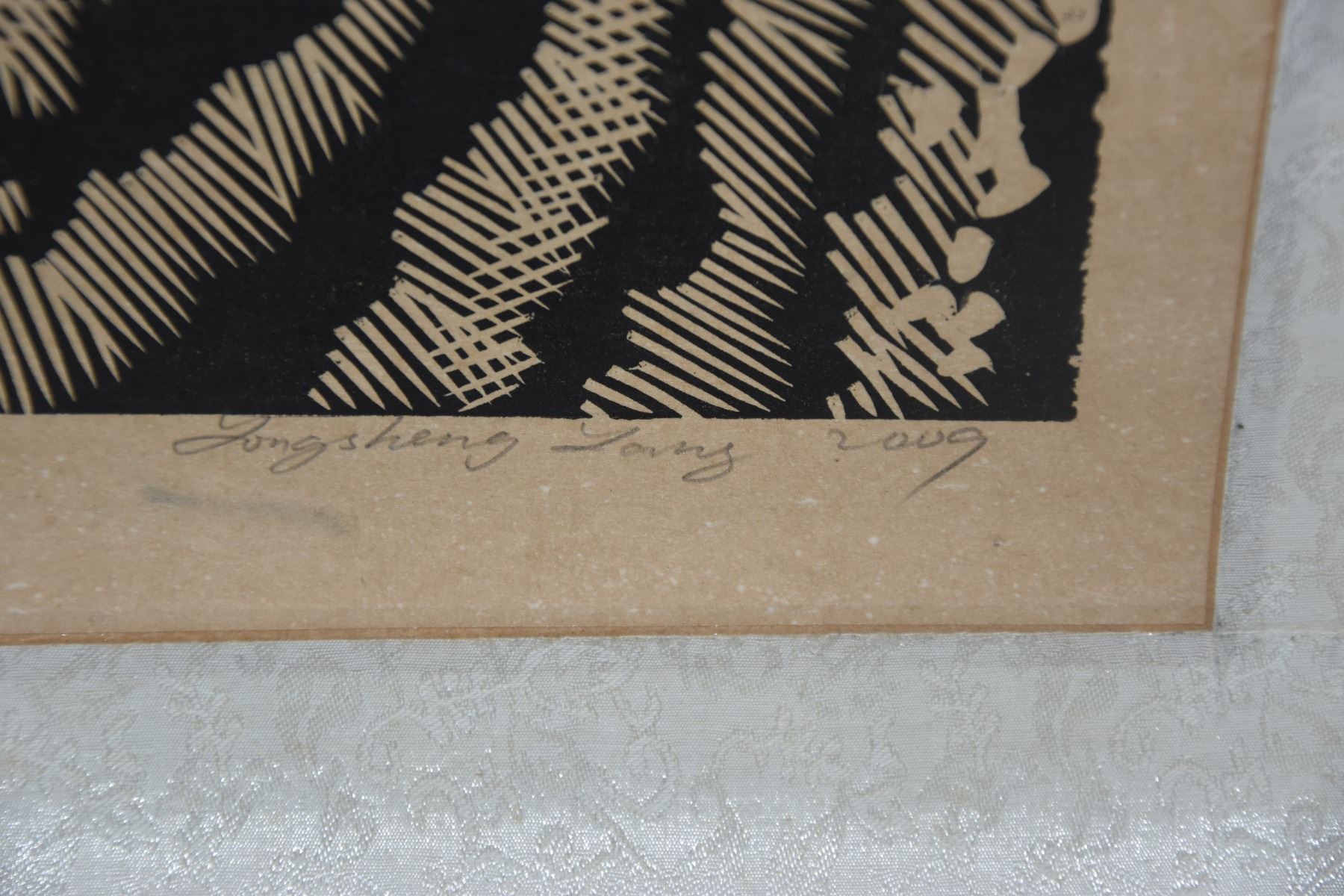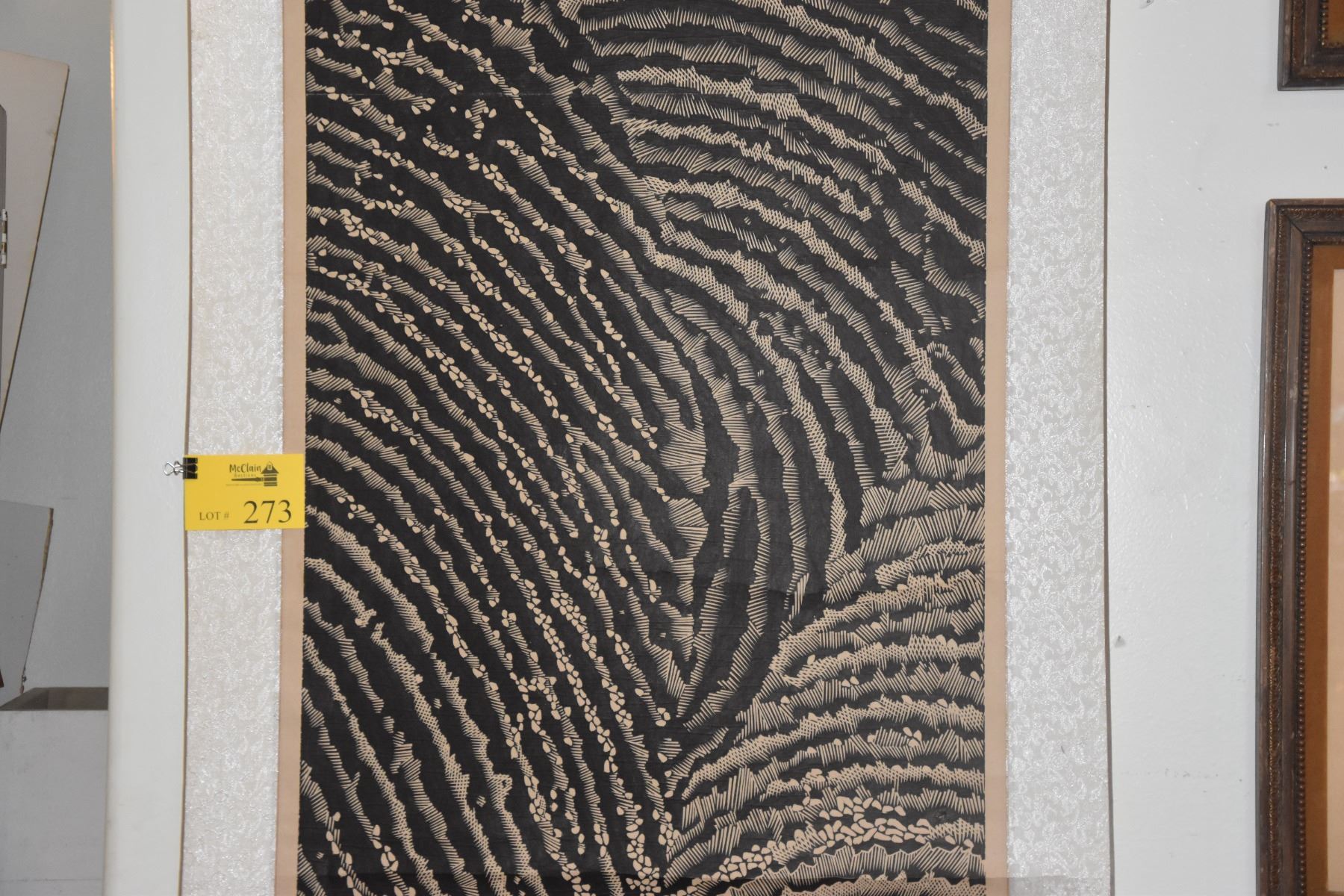 MOUNTED WOODBLOCK SCROLL, "FINGERPRINT LANDSCAPE IV"; SIGNED YONGSHANG YANG, 2009 1/6 (118" X 32 1/2")