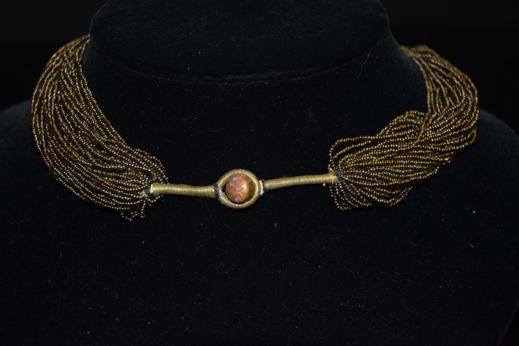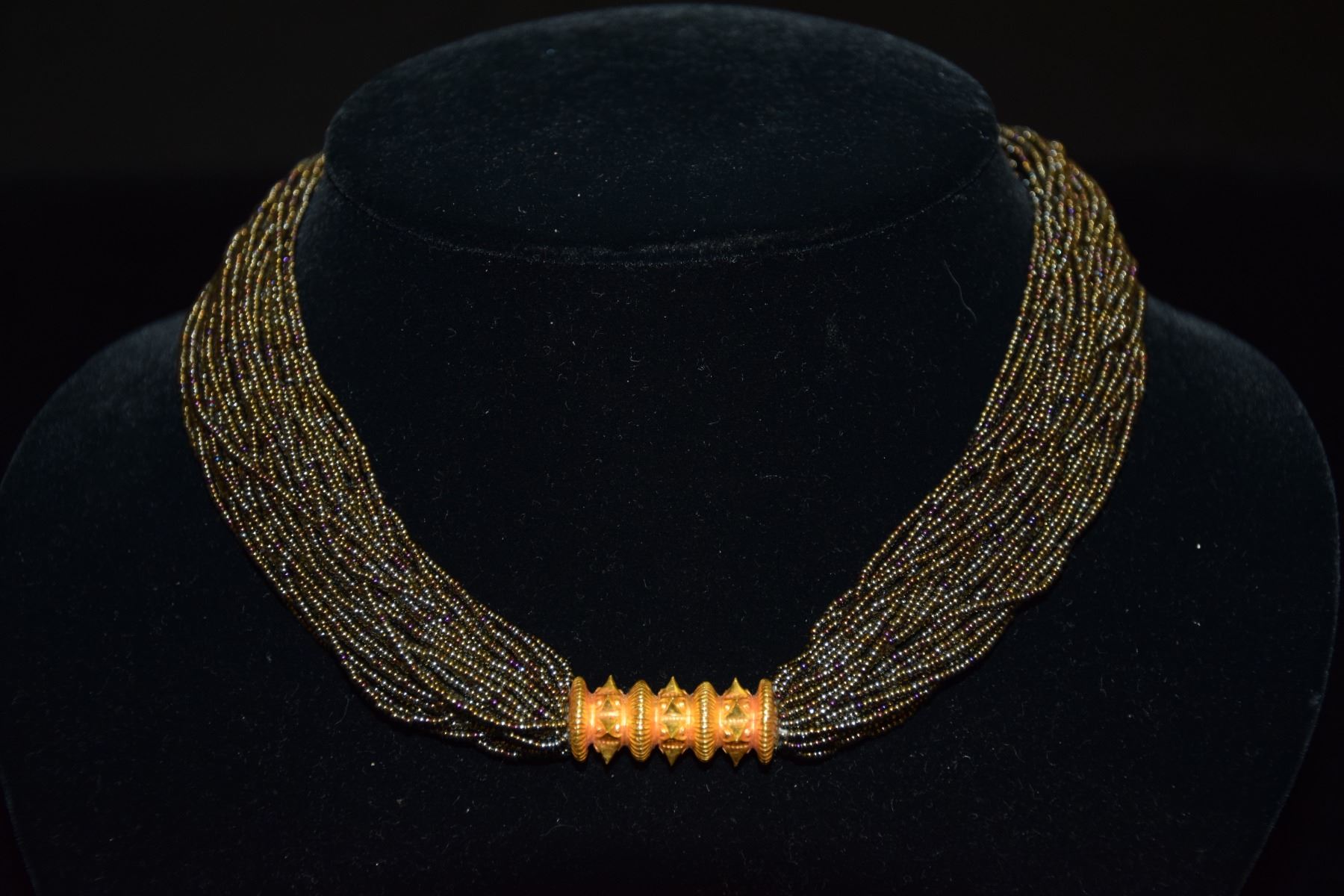 MULTI-STRAND GLASS BEAD TORSO W/18K (TESTED) BEAD ACCENT