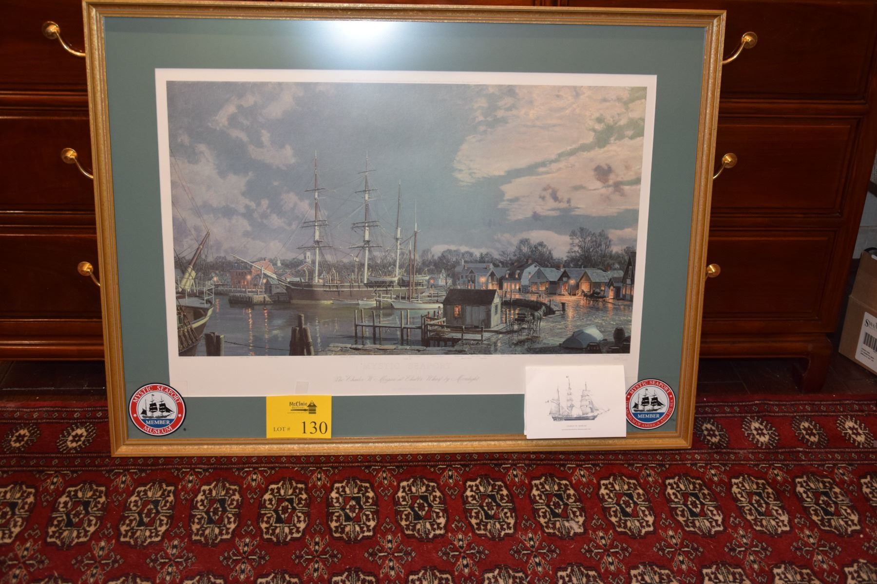 MYSTIC SEAPORT: THE CHARLES W. MORGAN" AT CHUBB'S WHARF BY MOONLIGHT; JOHN STOBART 3638/6141 (16 1/2" X 28")
