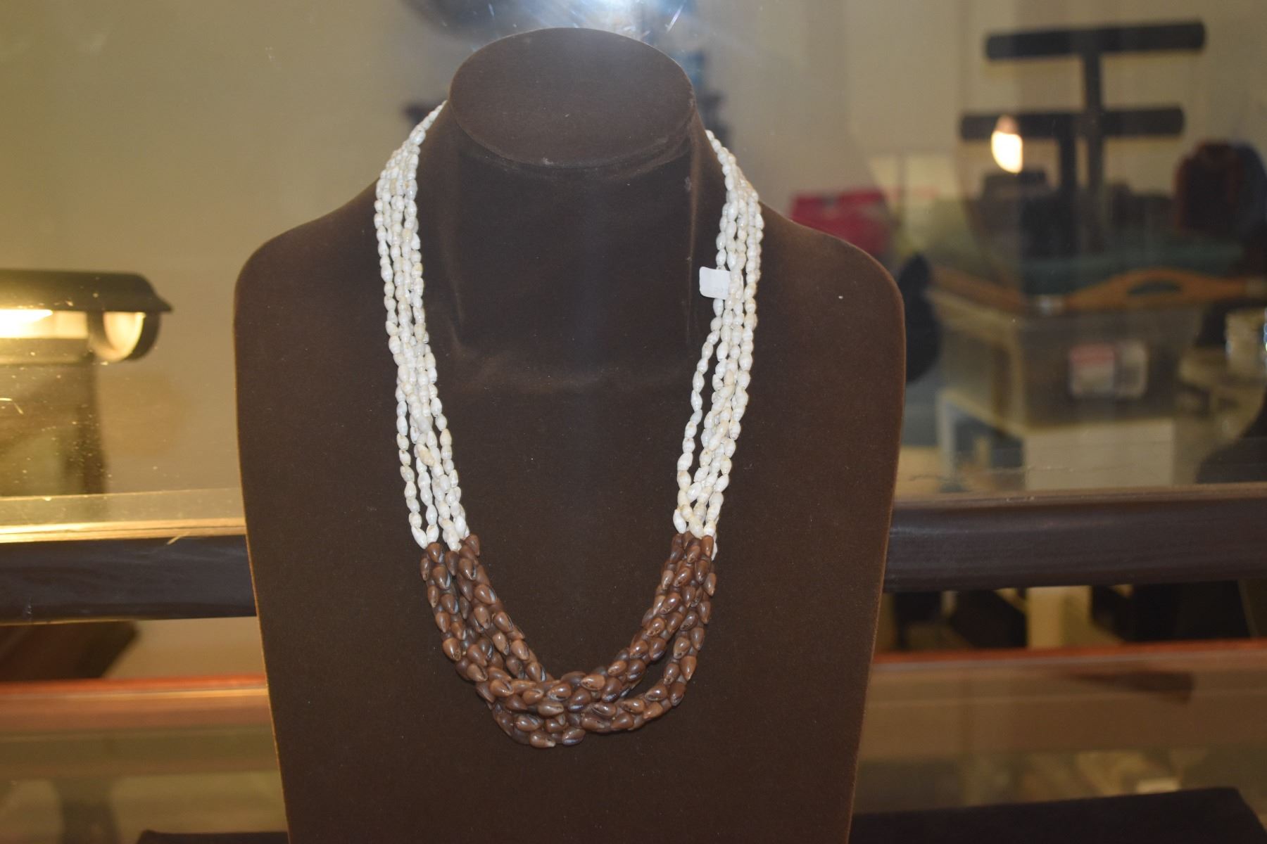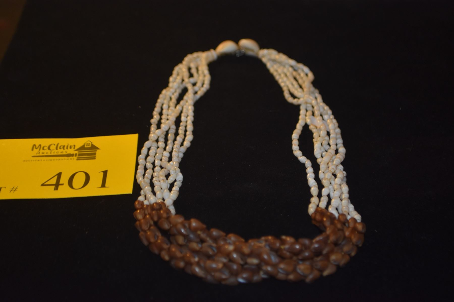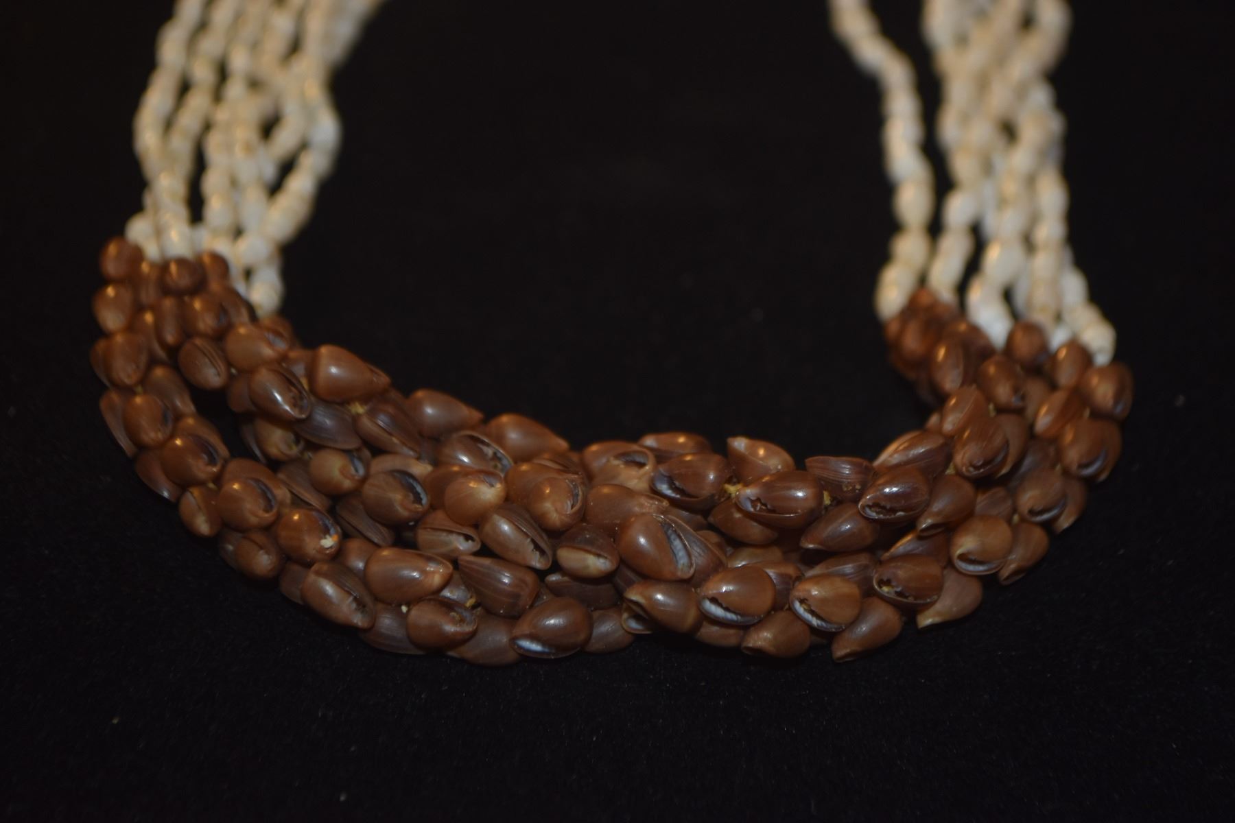 NI'IHAU SHELL NECKLACE, POLEHO & LAIKI SHELLS (25 1/2")