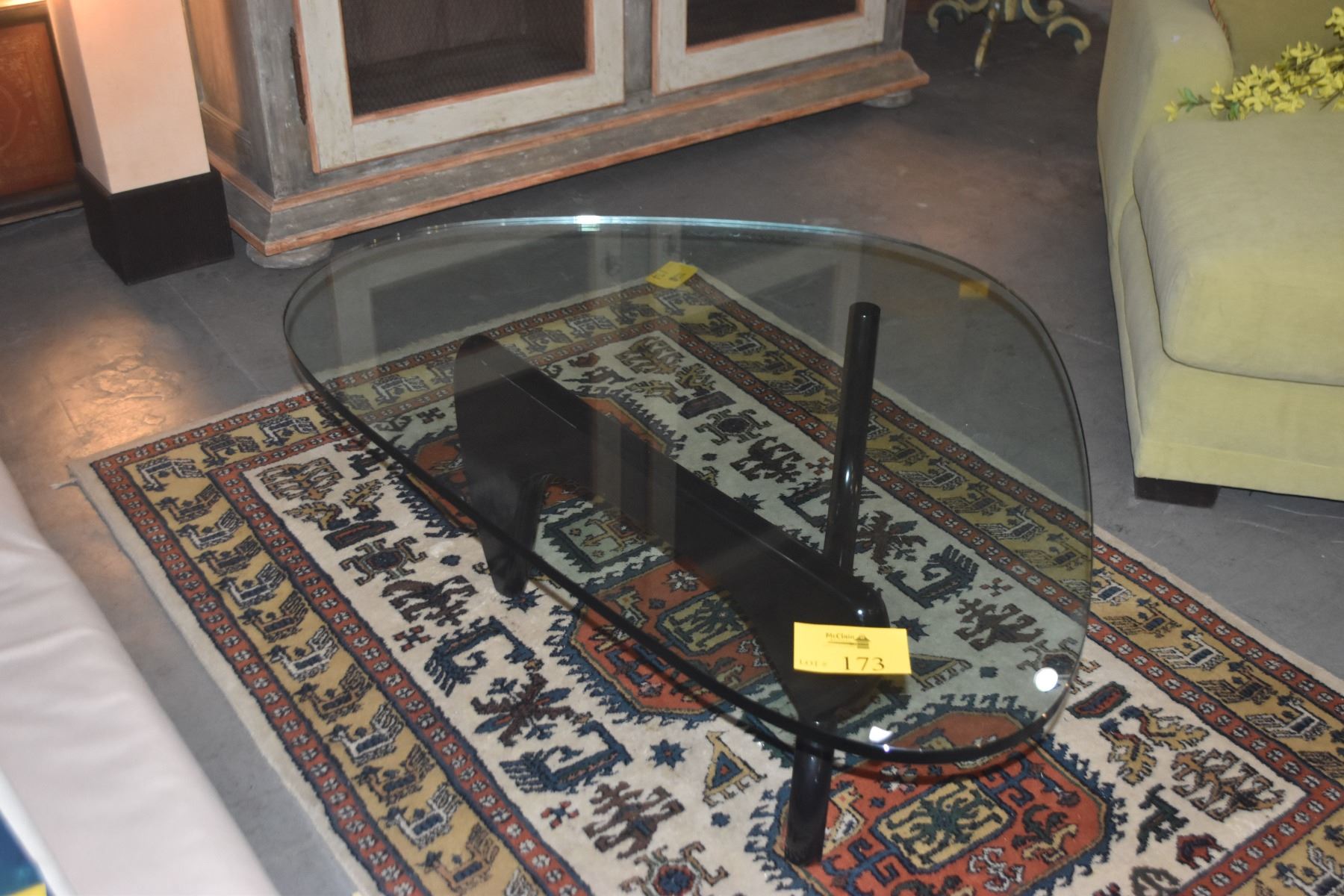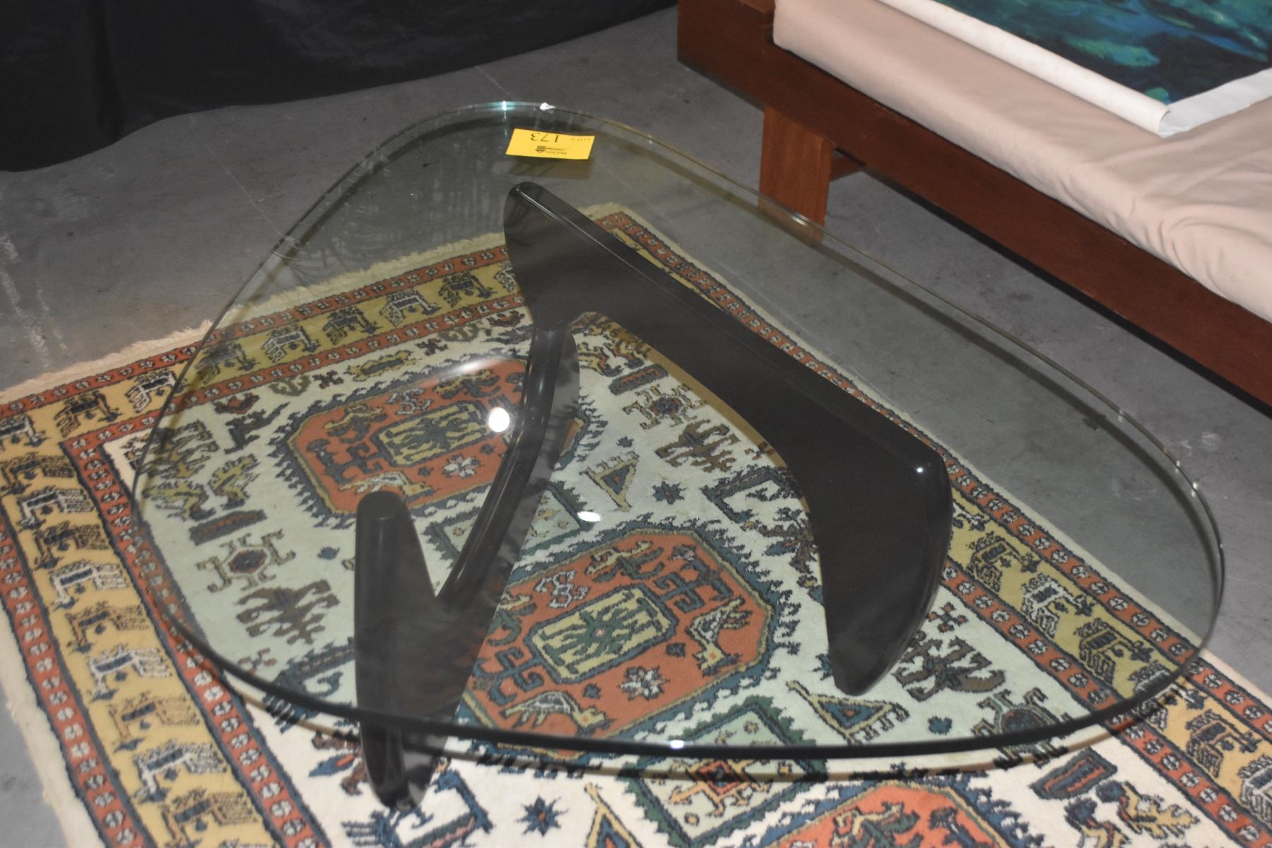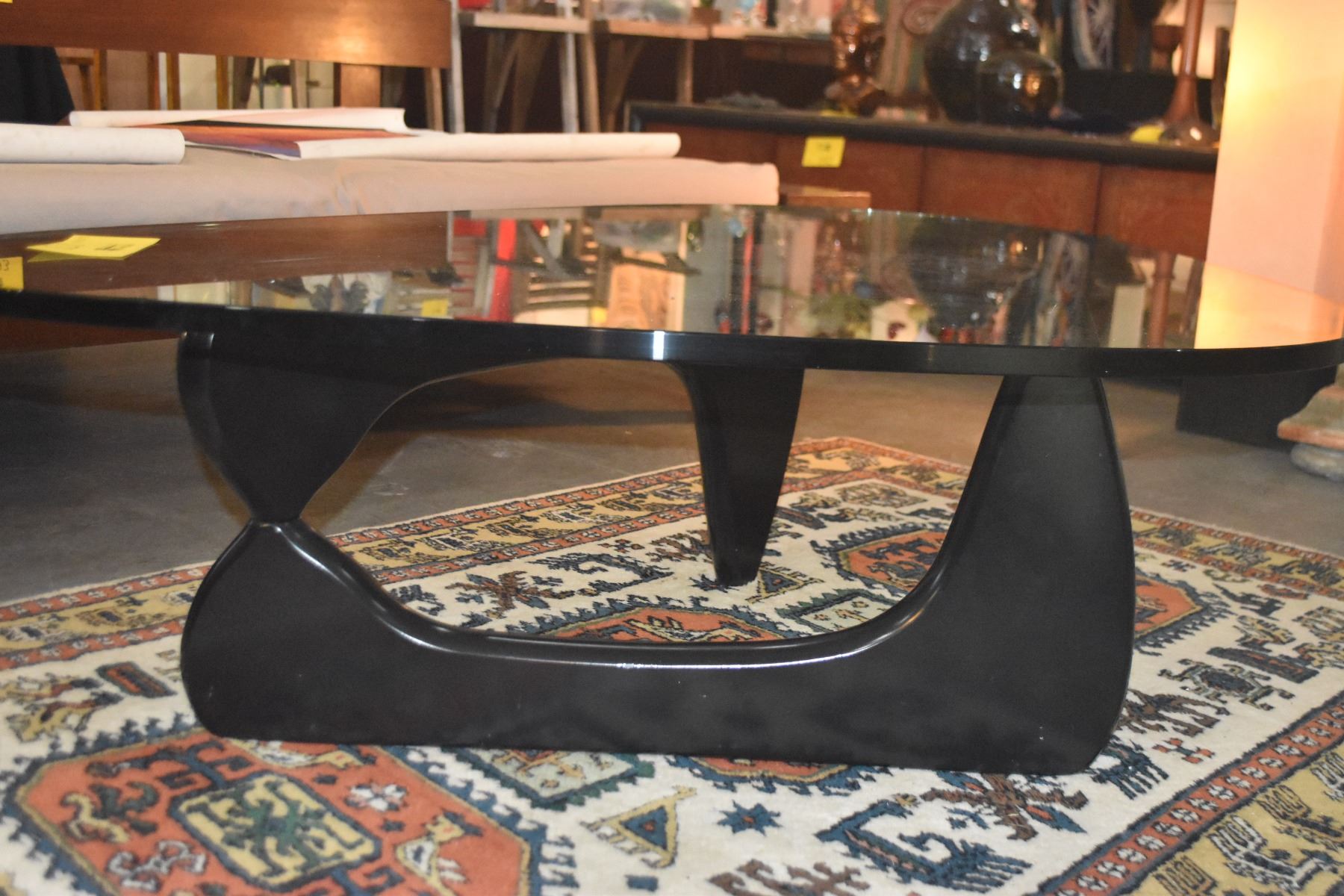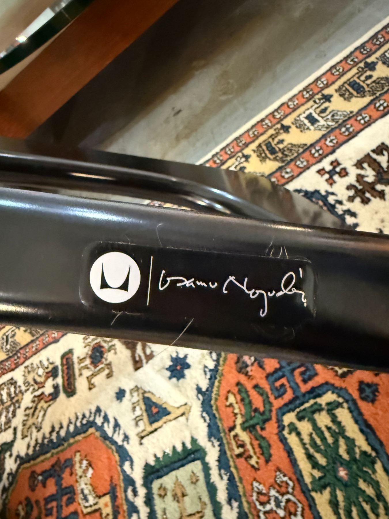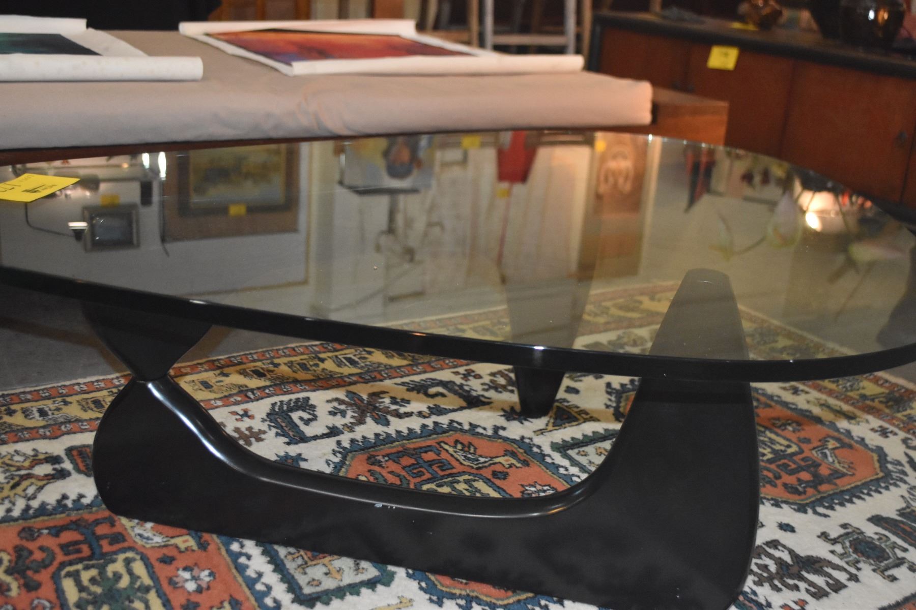 NOGUCHI GLASS TOP COFFEE TABLE; SIGNED ON BASE & GLASS (BLACK)
