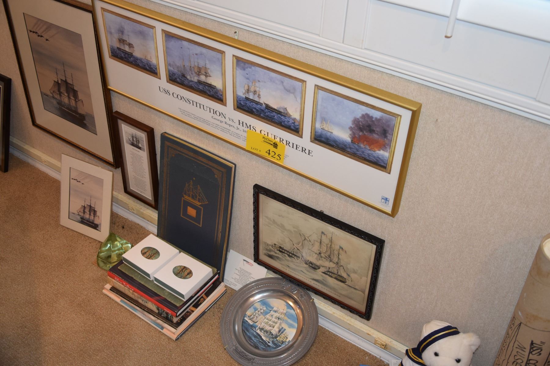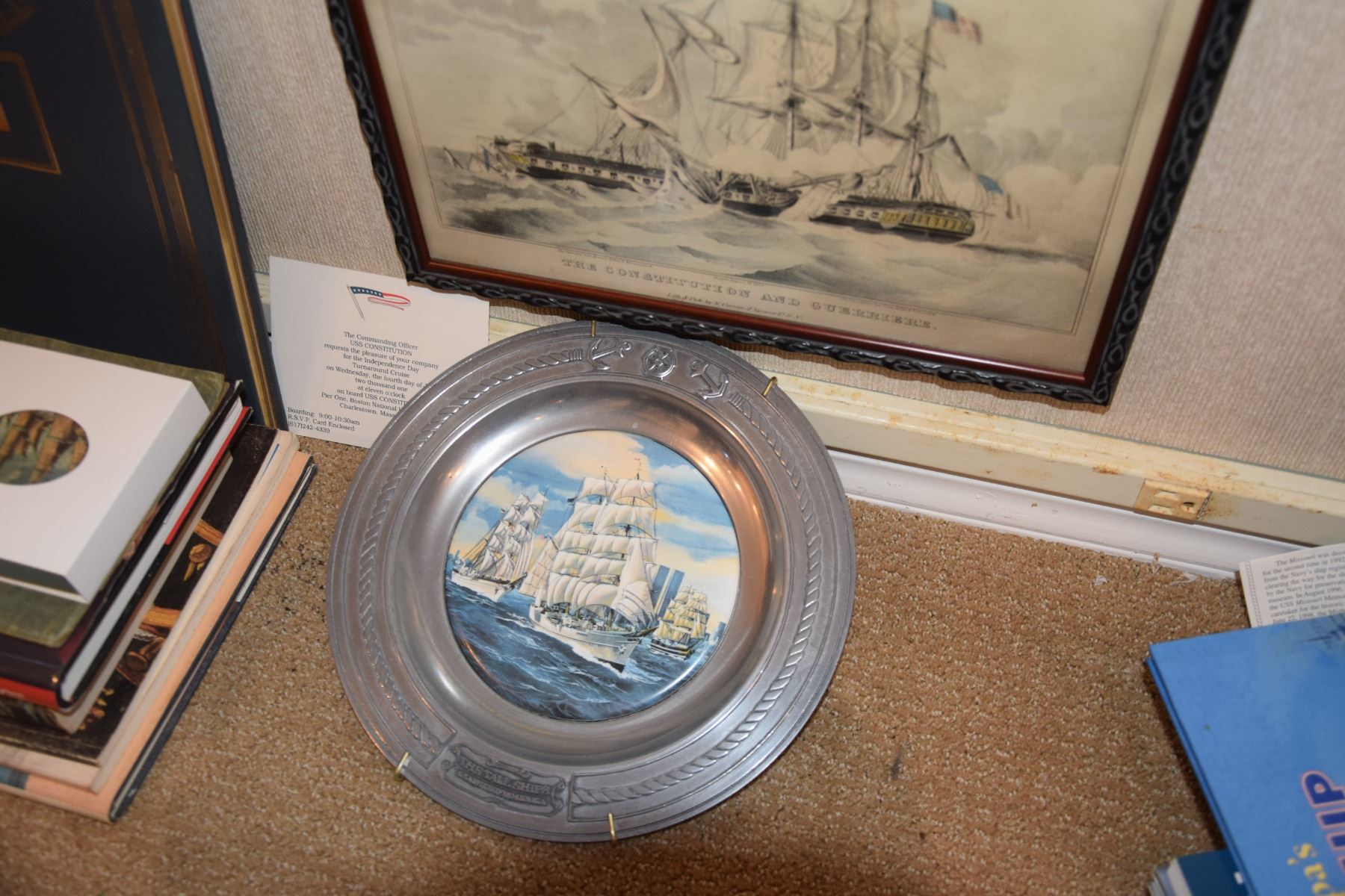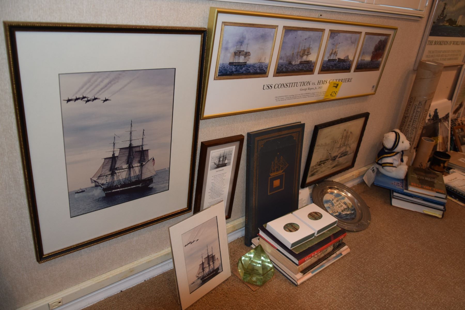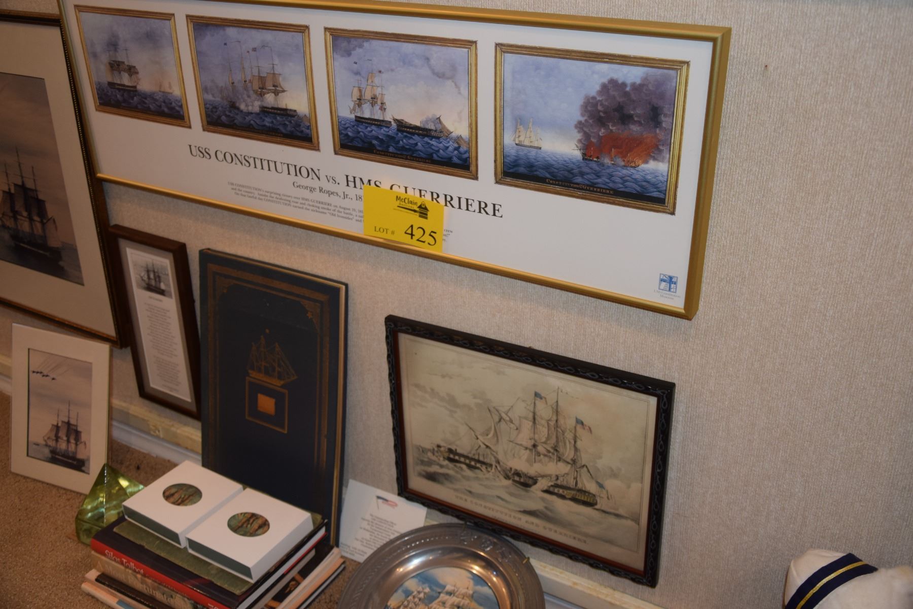 OLD IRONSIDE/USS CONSTITUION: BOOKS, PRINTS, PLATE, PHOTO, COASTERS, PRISM, ETC, (16 PCS)