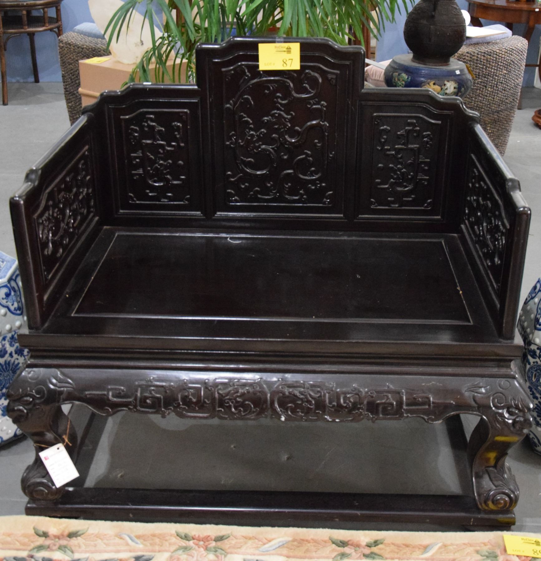 ORIENTAL WOOD CARVED DOUBLE CHAIR (FROM REV. CLARENCE GUERREIRO COLLECTION)