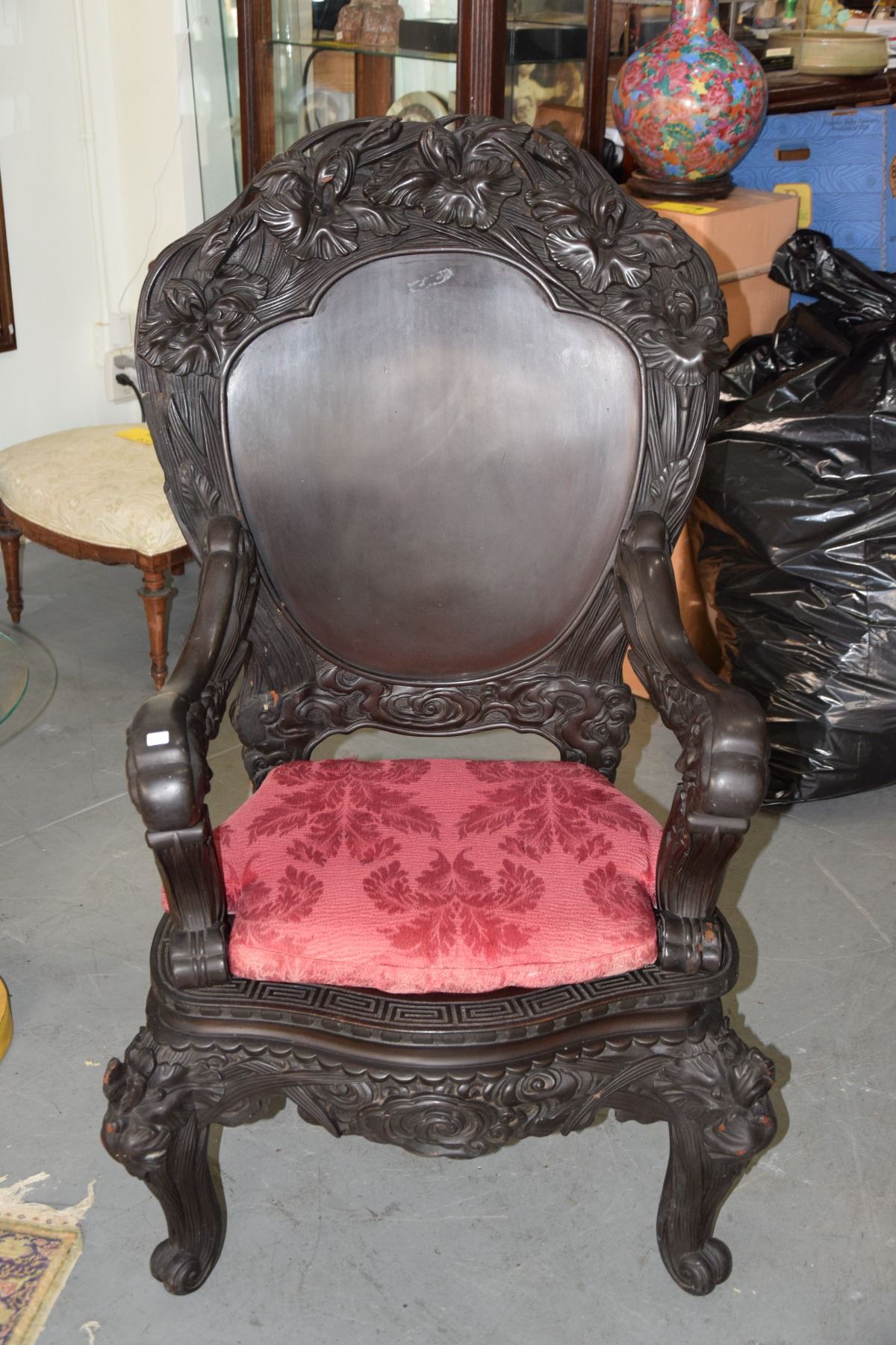 ORNATELY CARVED ORIENTAL ARMCHAIR (FROM REV. CLARENCE GUERREIRO COLLECTION)