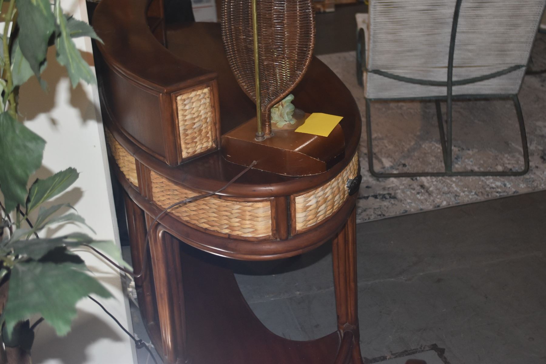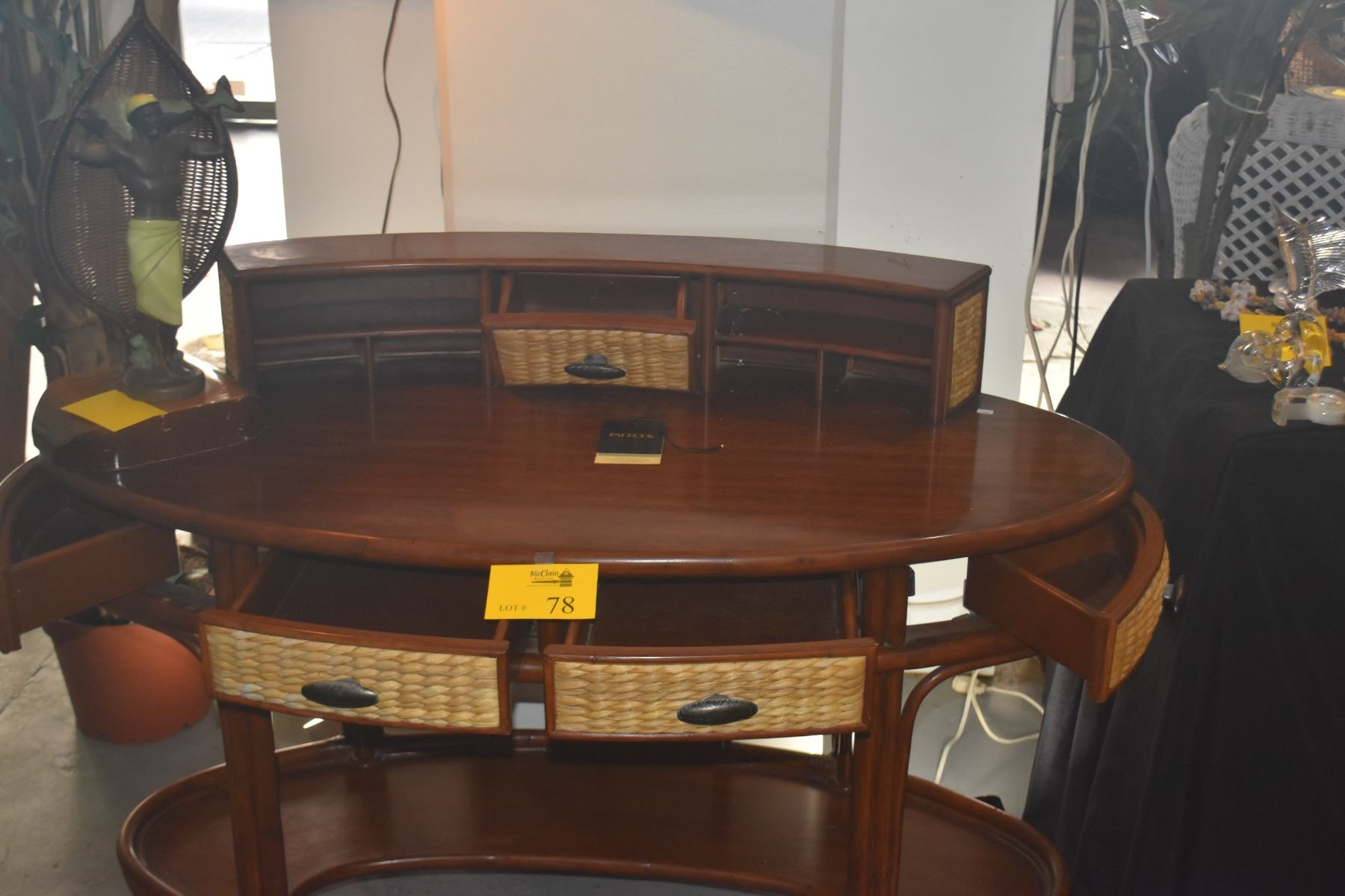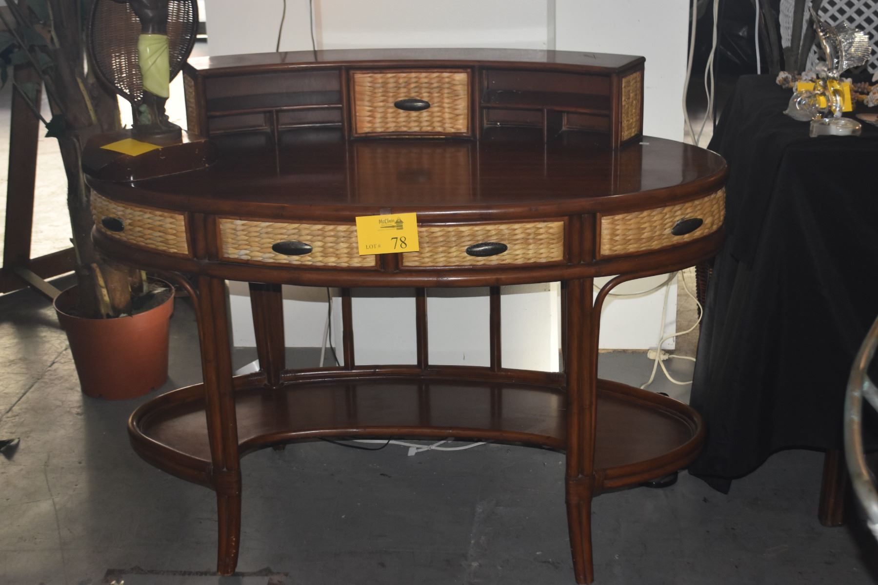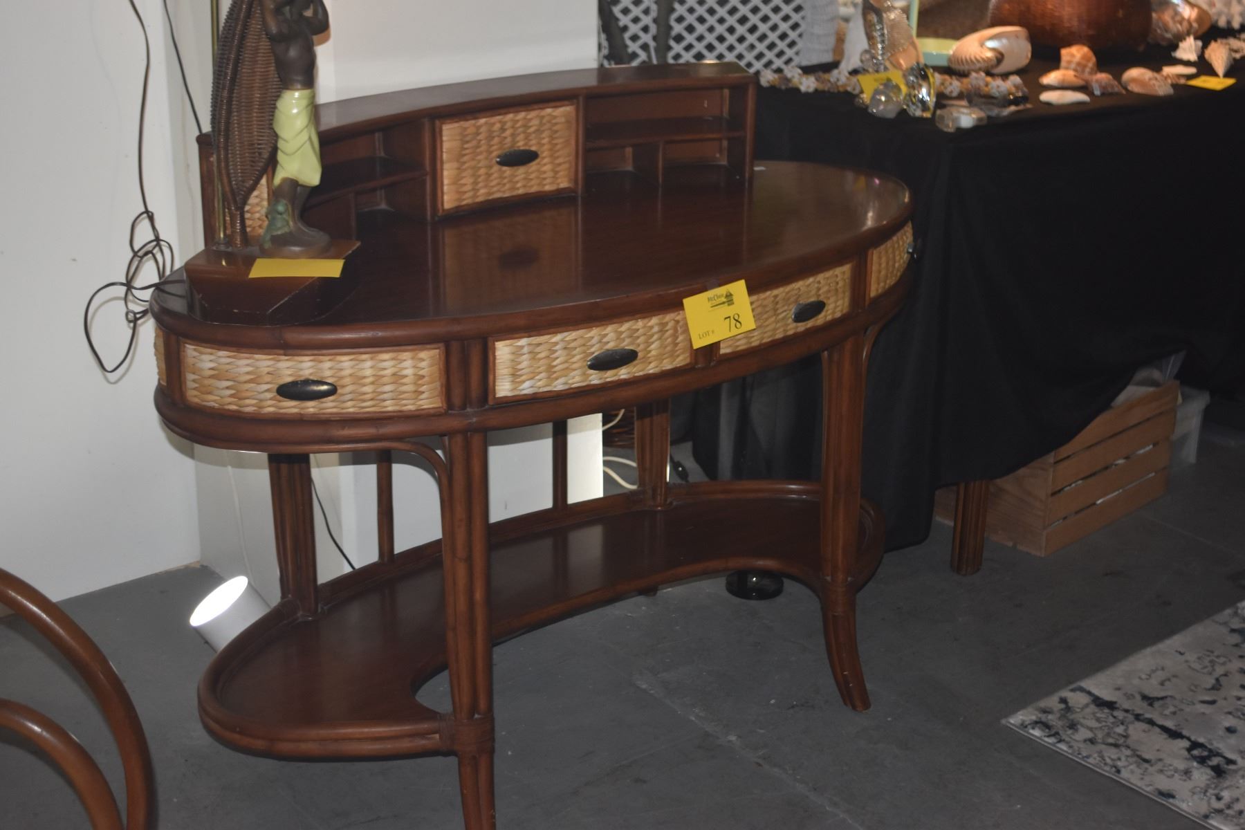 OVAL WOOD DESK W/WICKER DRAWER FRONTS BY PALECEK (49" X 24")