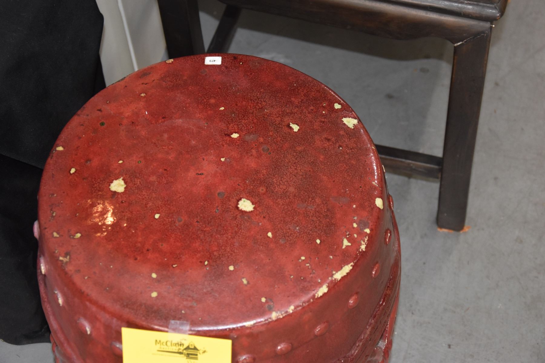 OX BLOOD CYANNE GARDEN STOOL (KILN SPOTS) (14 1/2" X 20")