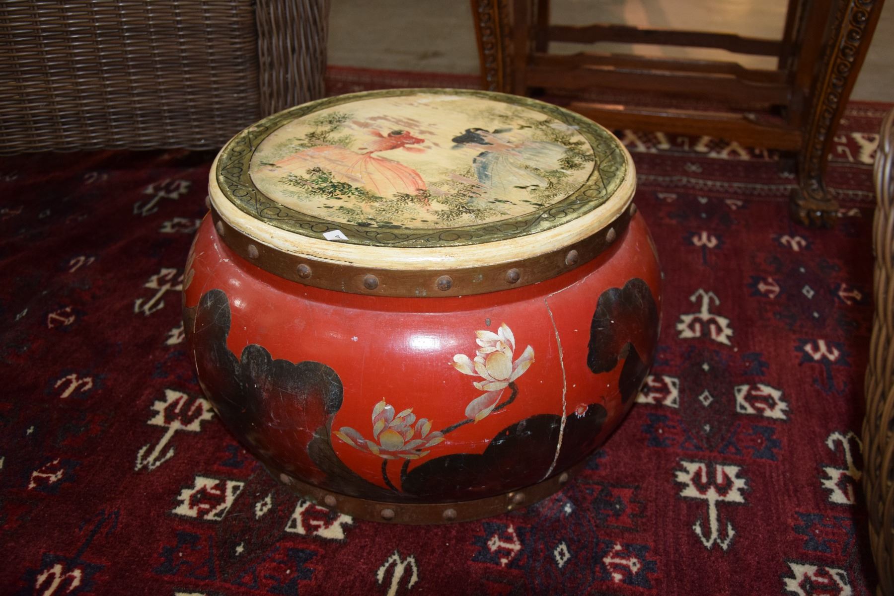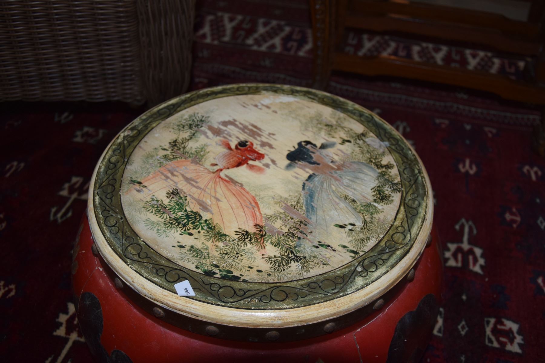 PAINTED WOOD DRUM STOOL