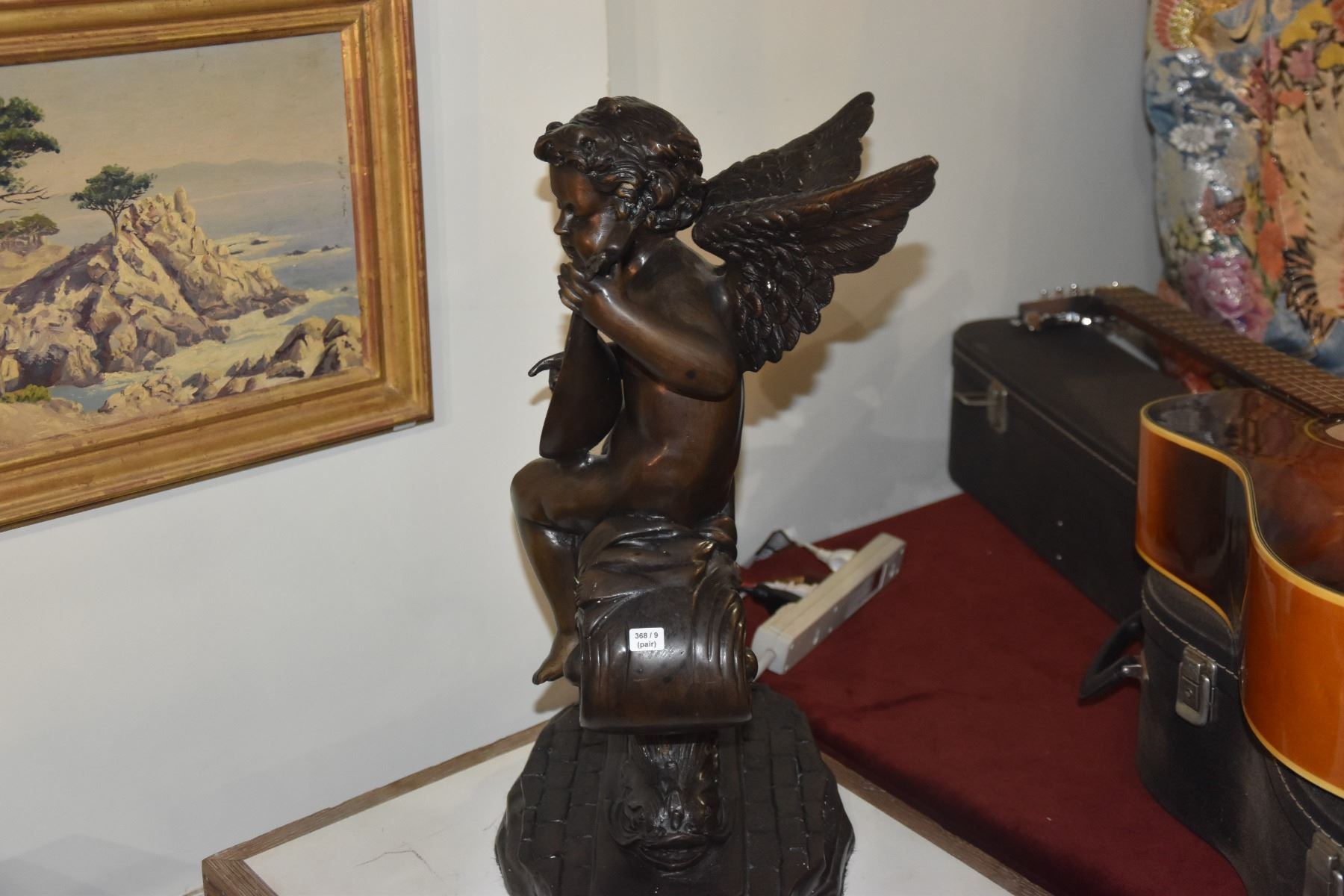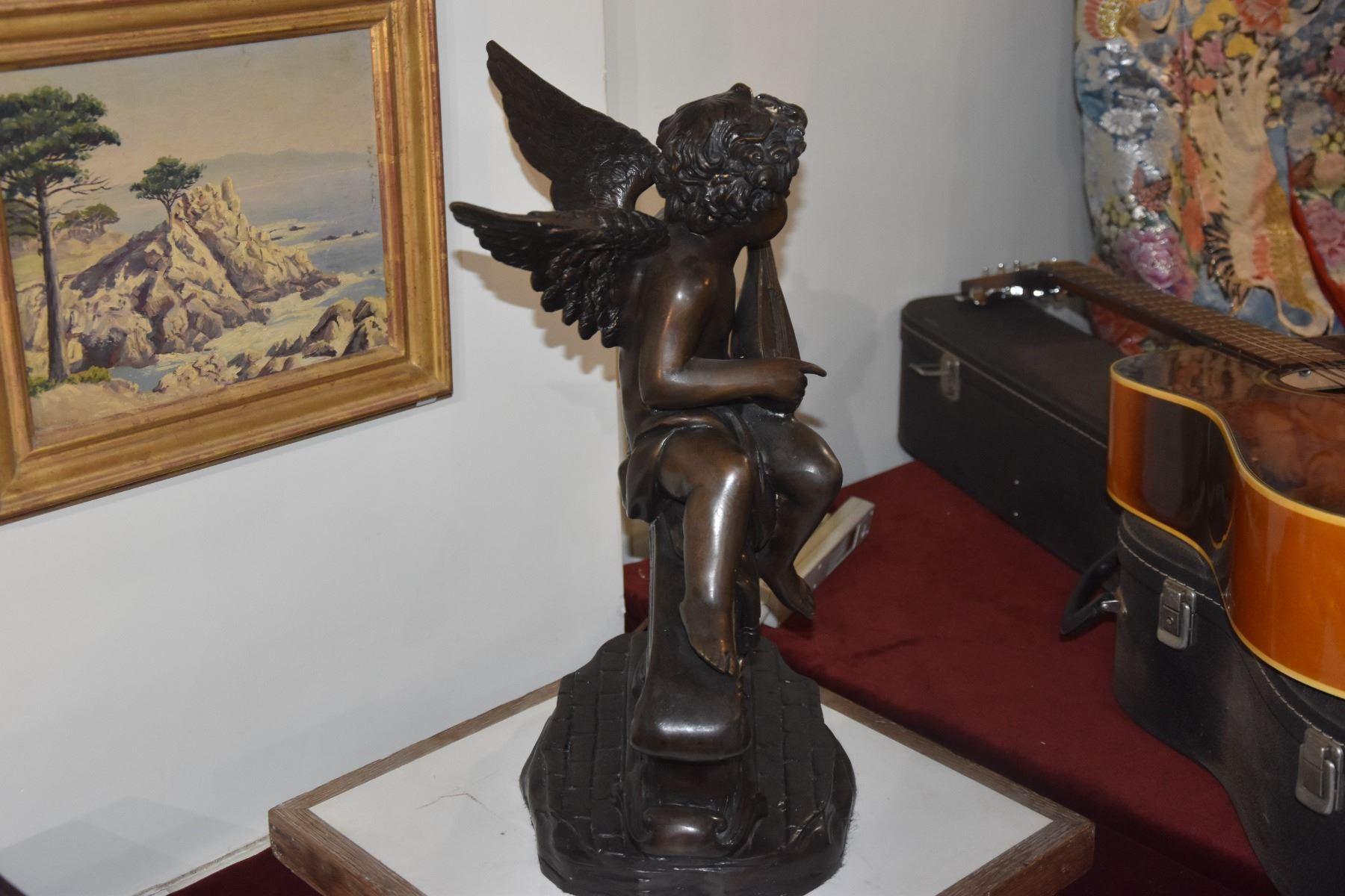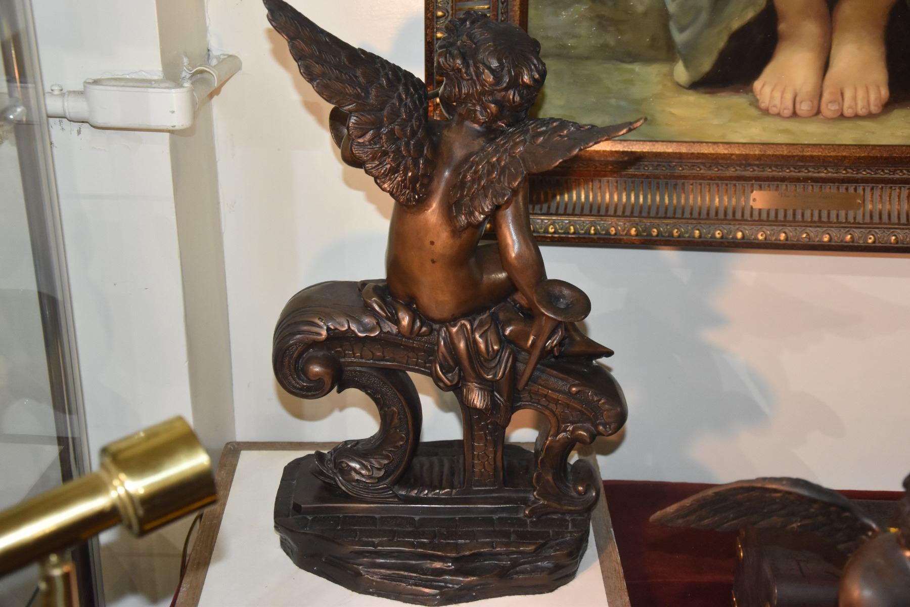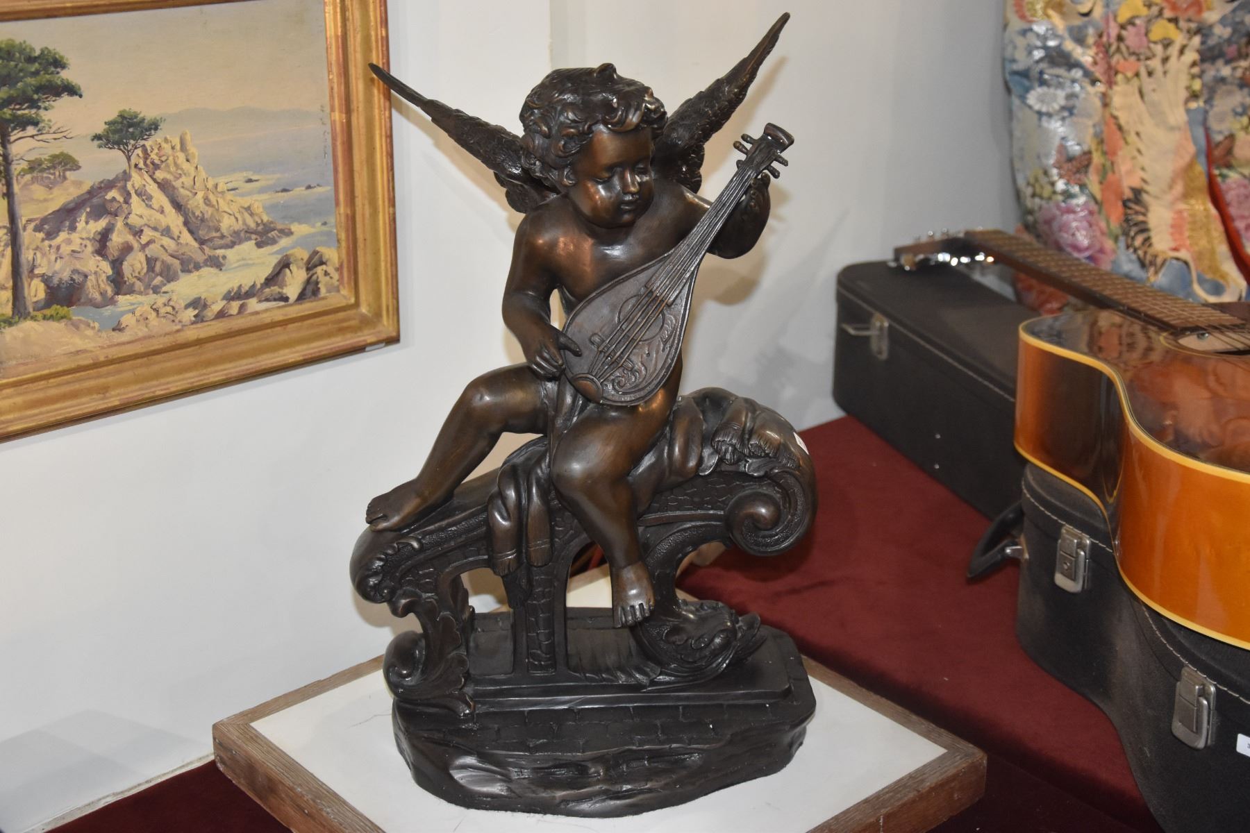 PAIR BRONZED WINGED PUTTI W/MUSICAL INSTRUMENTS (20" X 13") (PAIR)