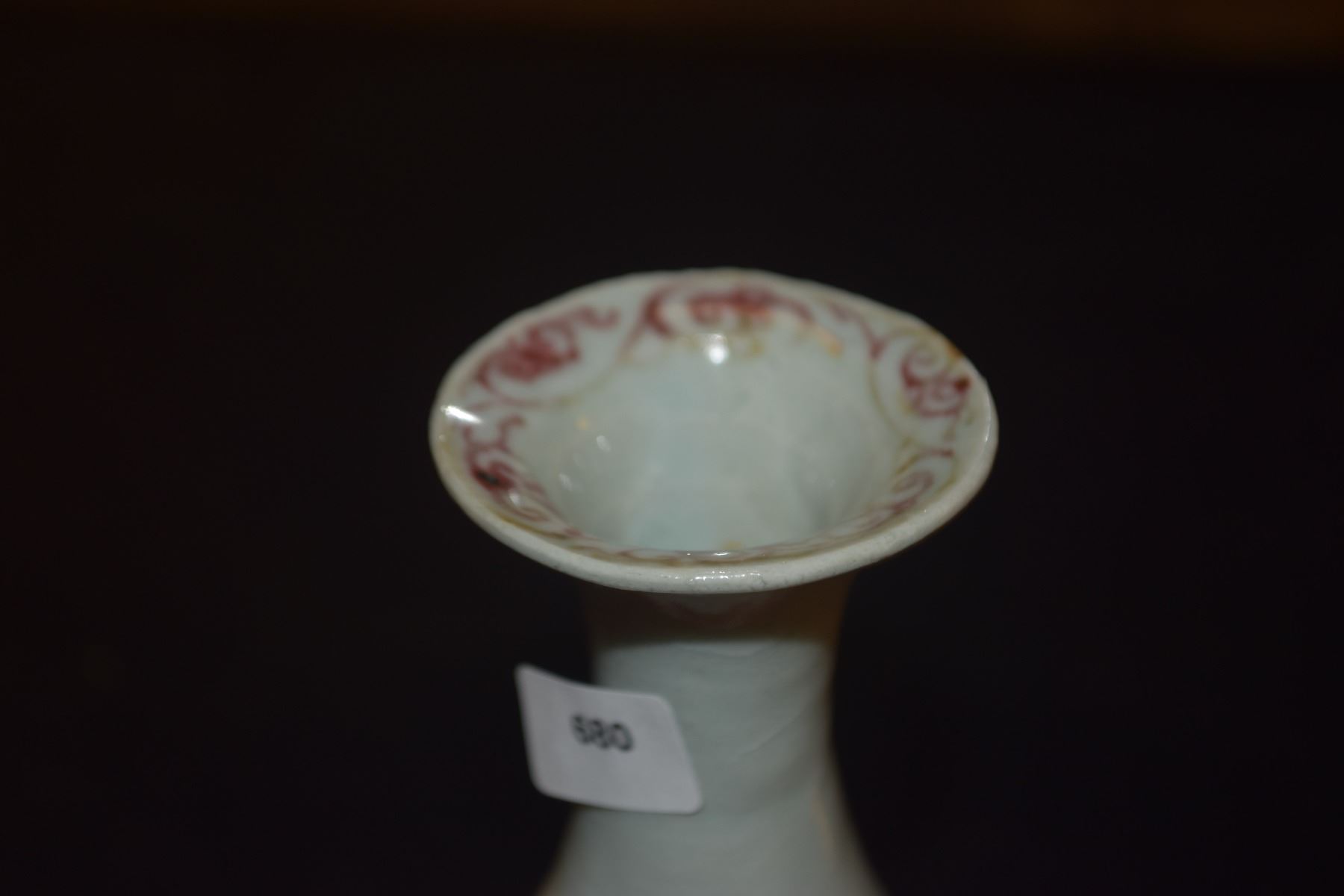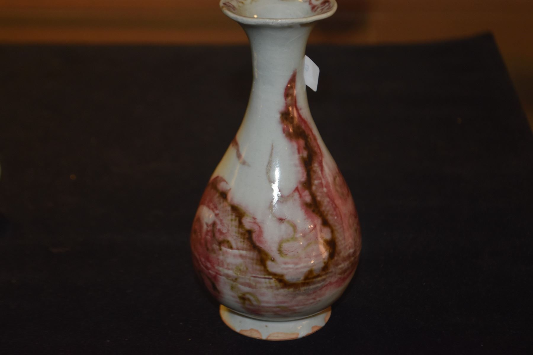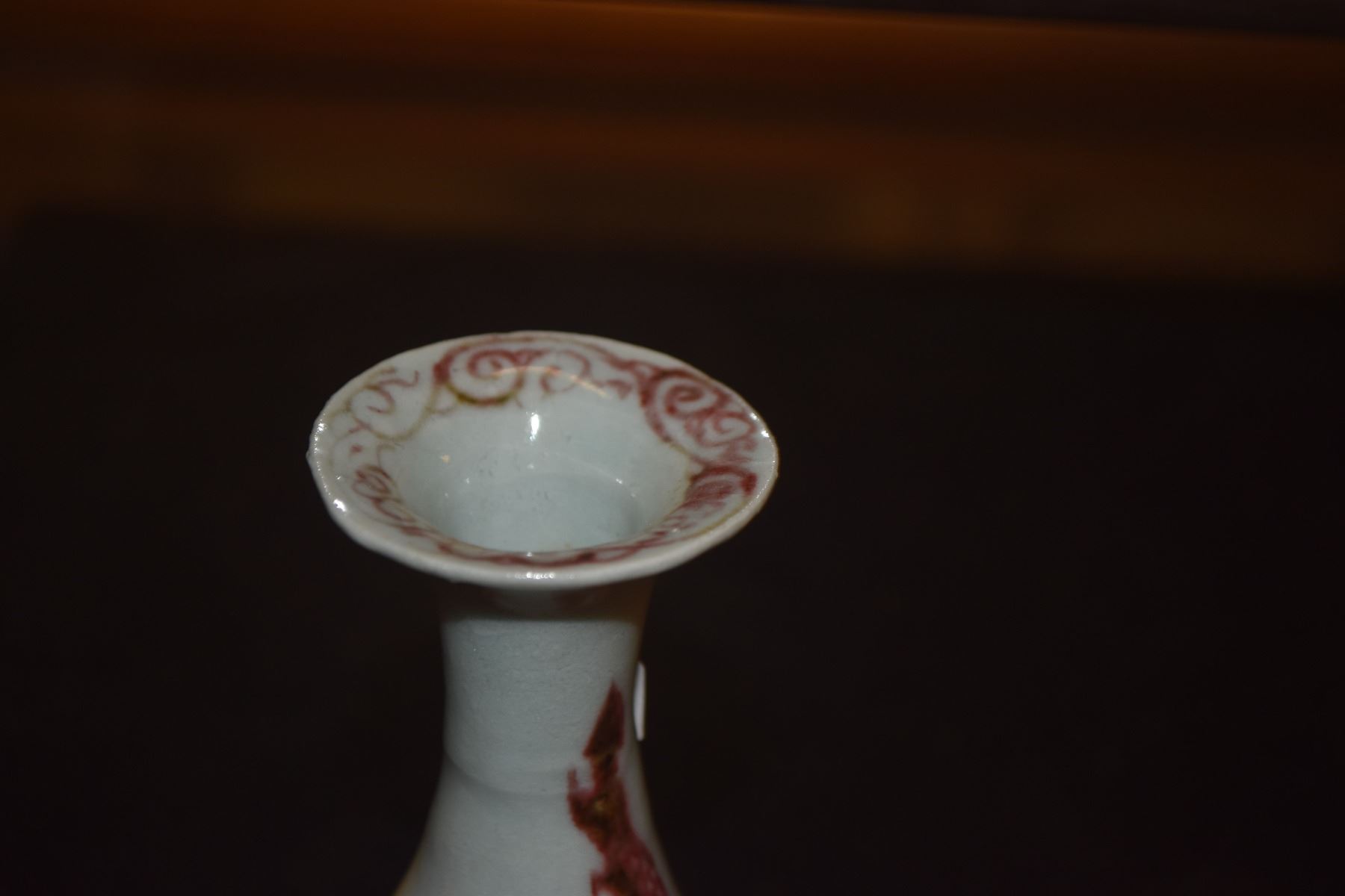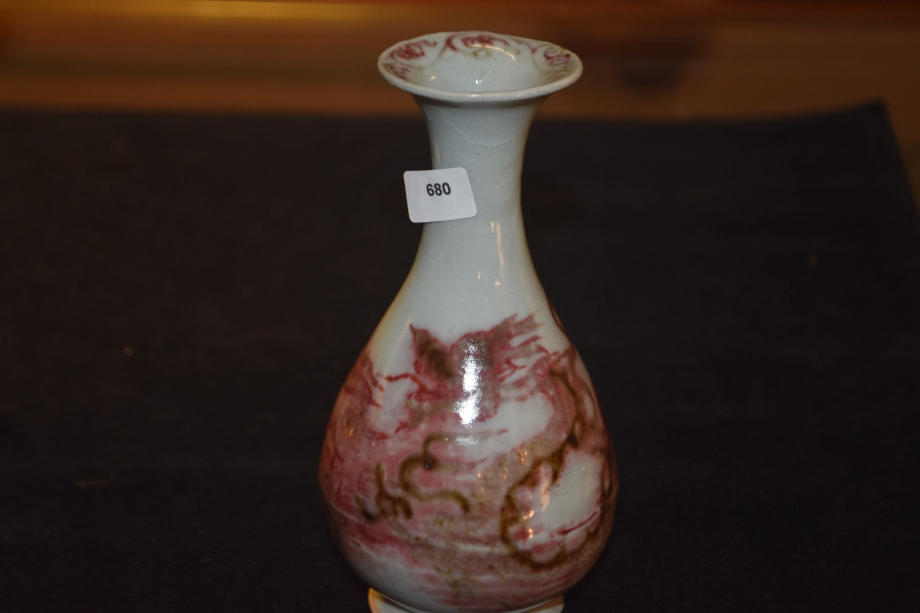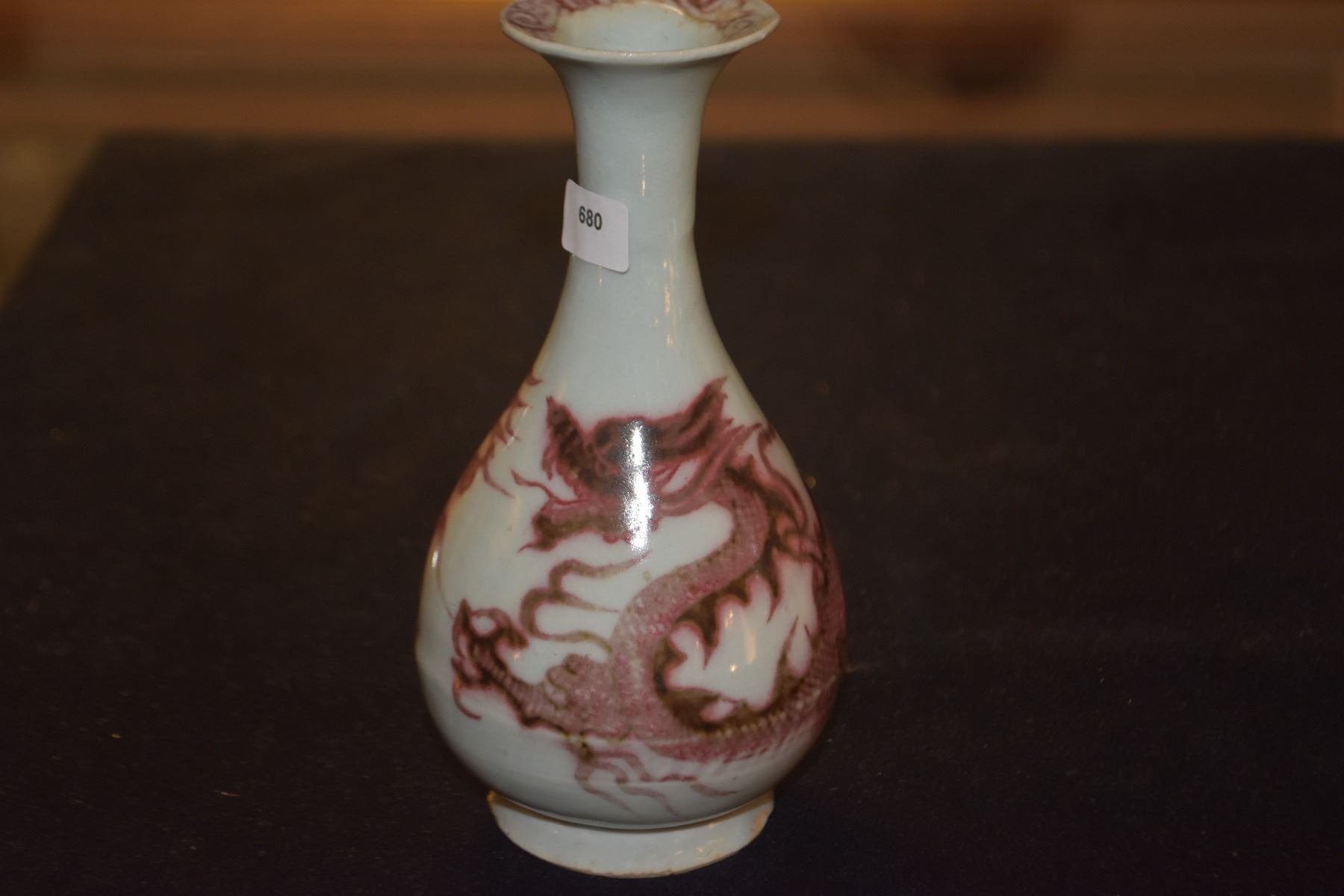 PAIR CHINESE PORCELAIN, PEARL SHAPED VASES W/COPPER RED DRAGON, NO MARKS (5 7/8") (PAIR)