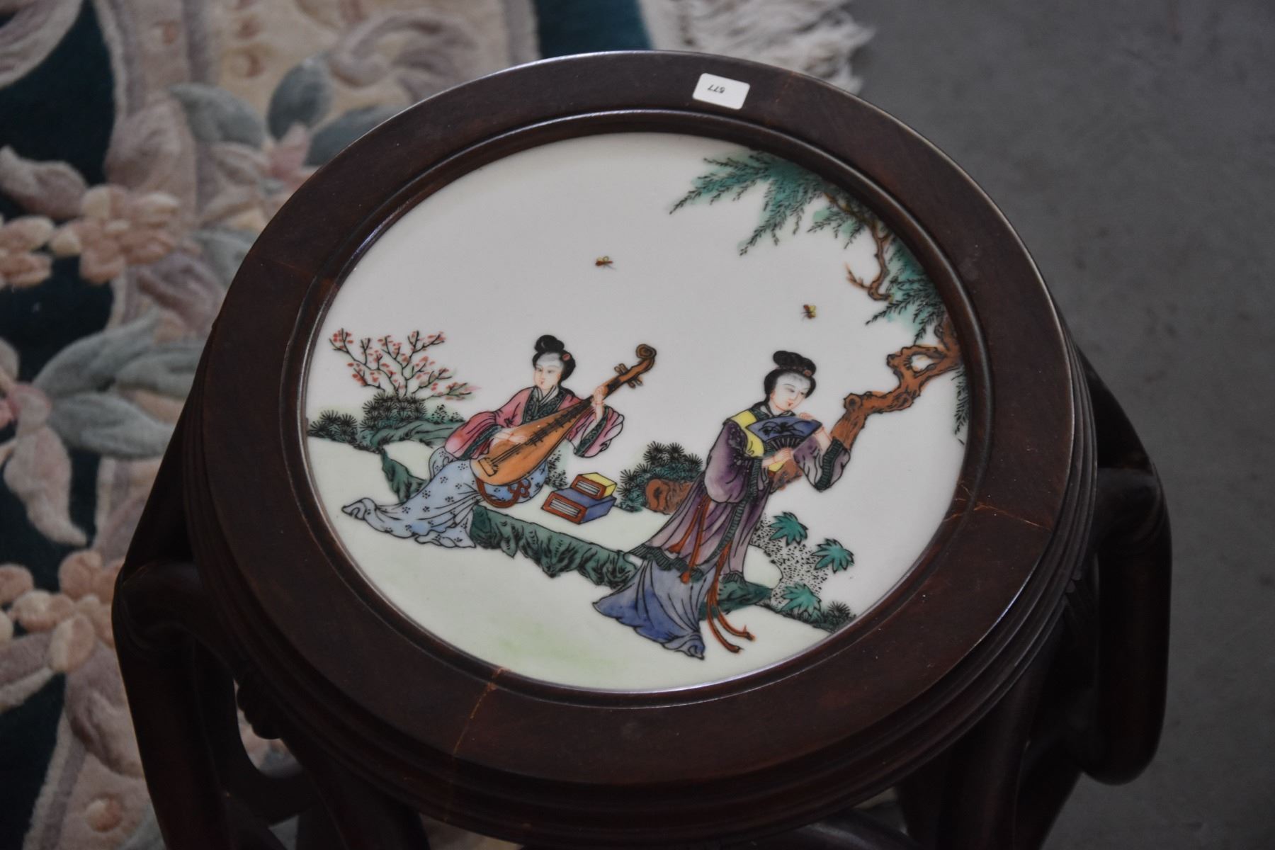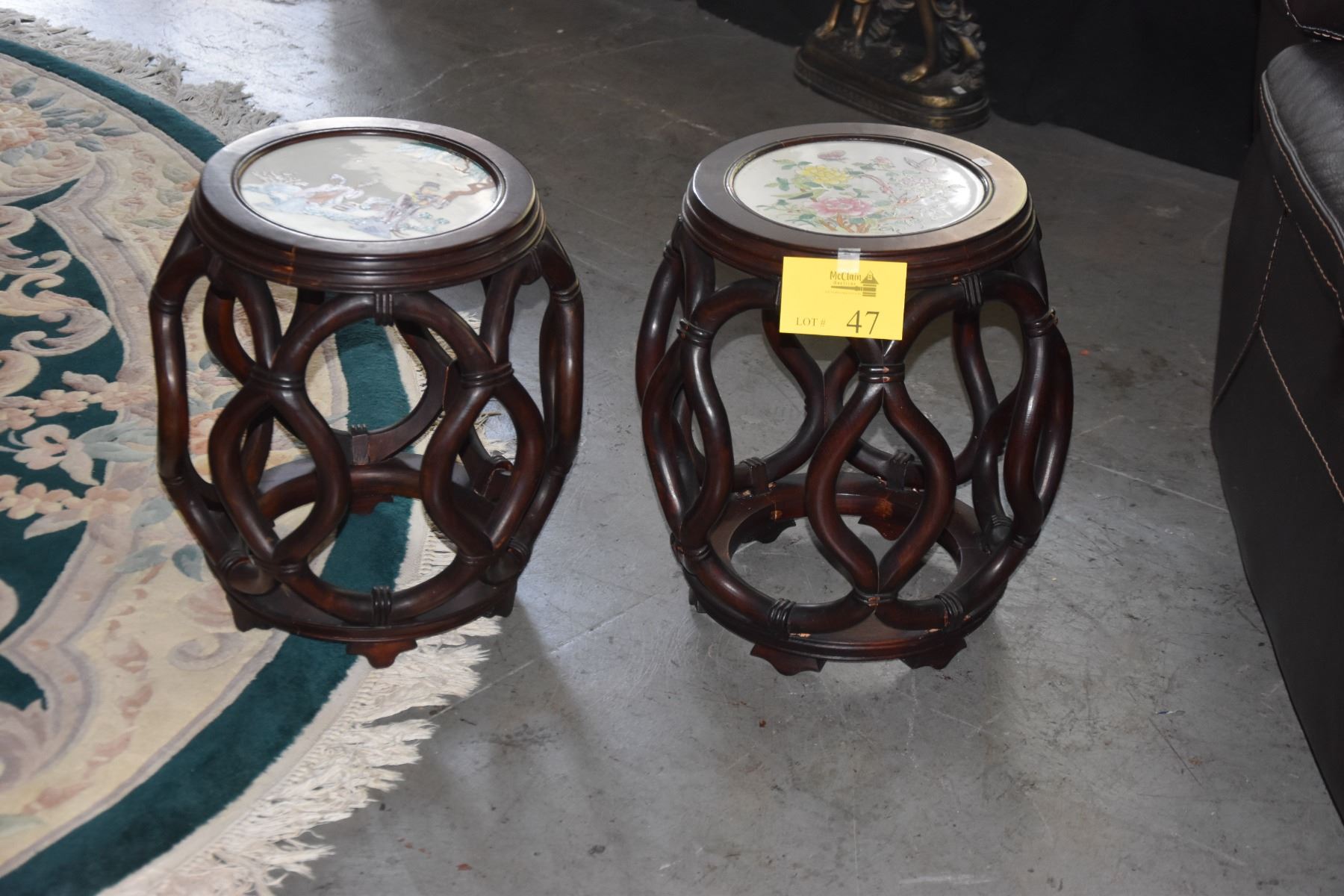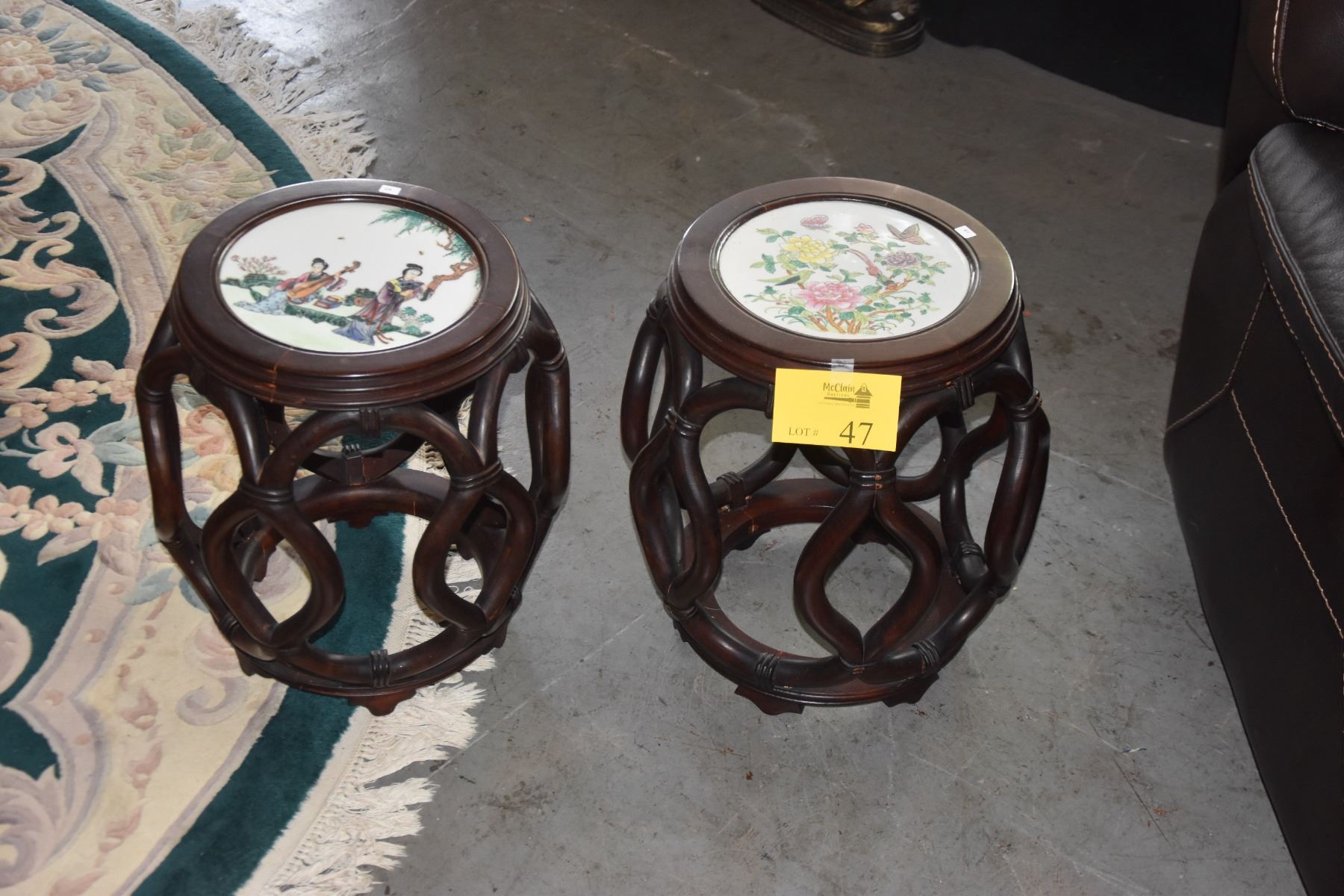 PAIR CHINESE WOOD GARDEN STOOLS W/PORCELAIN TOPS (PAIR)