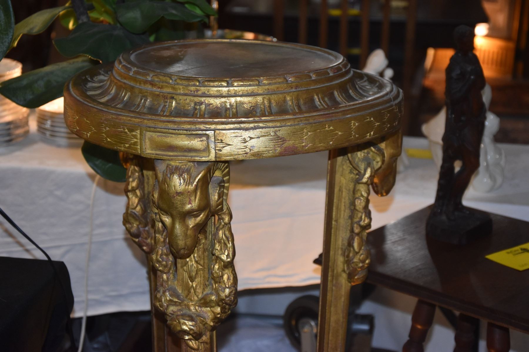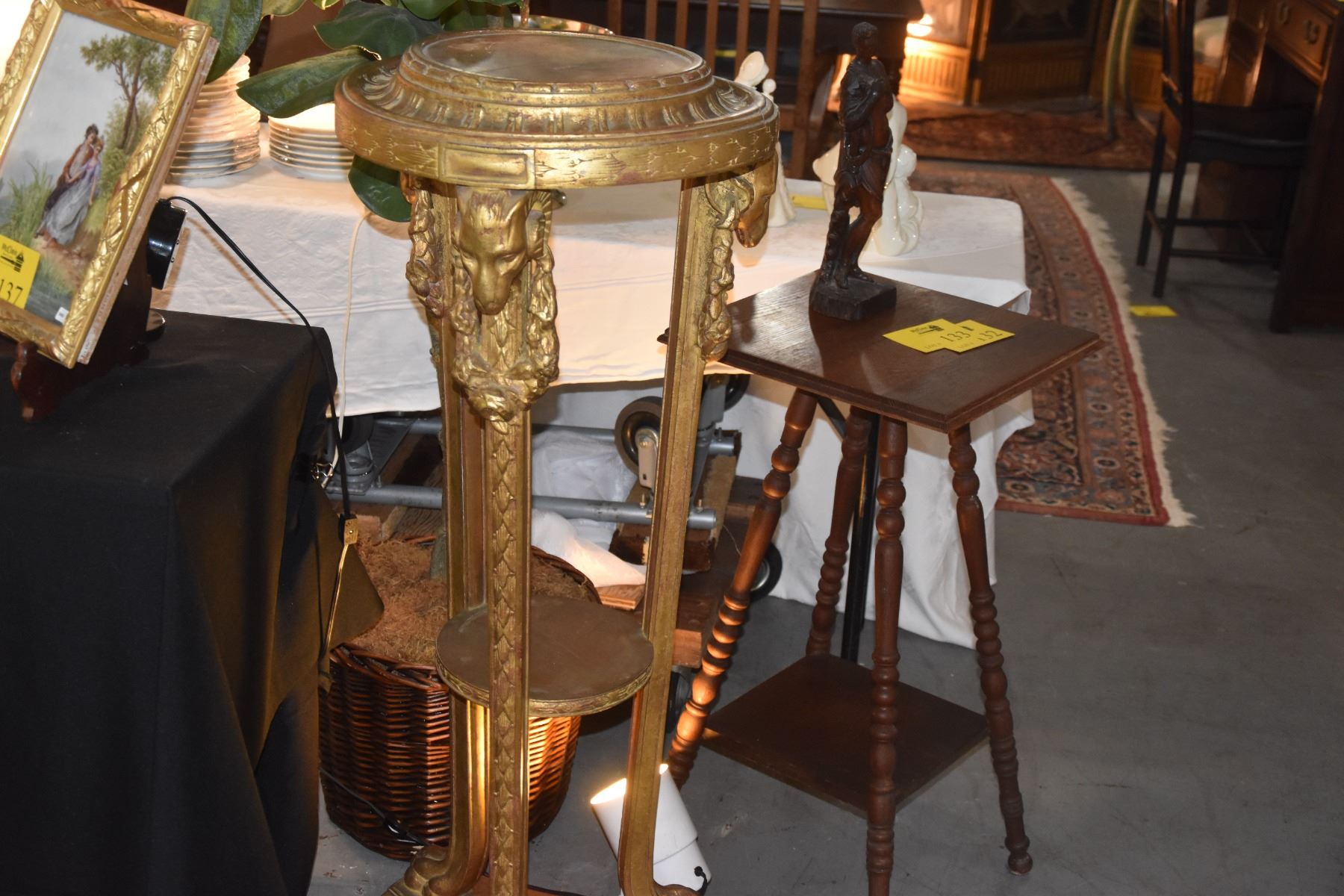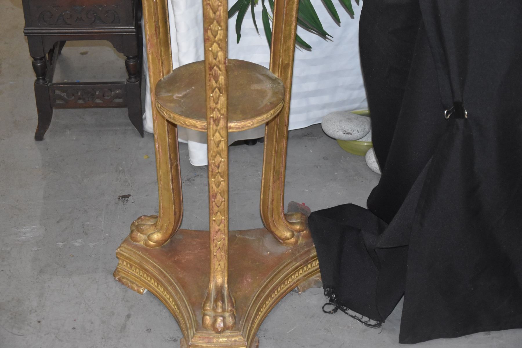 PAIR GILT GOLD & CARVED WOOD PLANT STANDS (45") (PAIR)