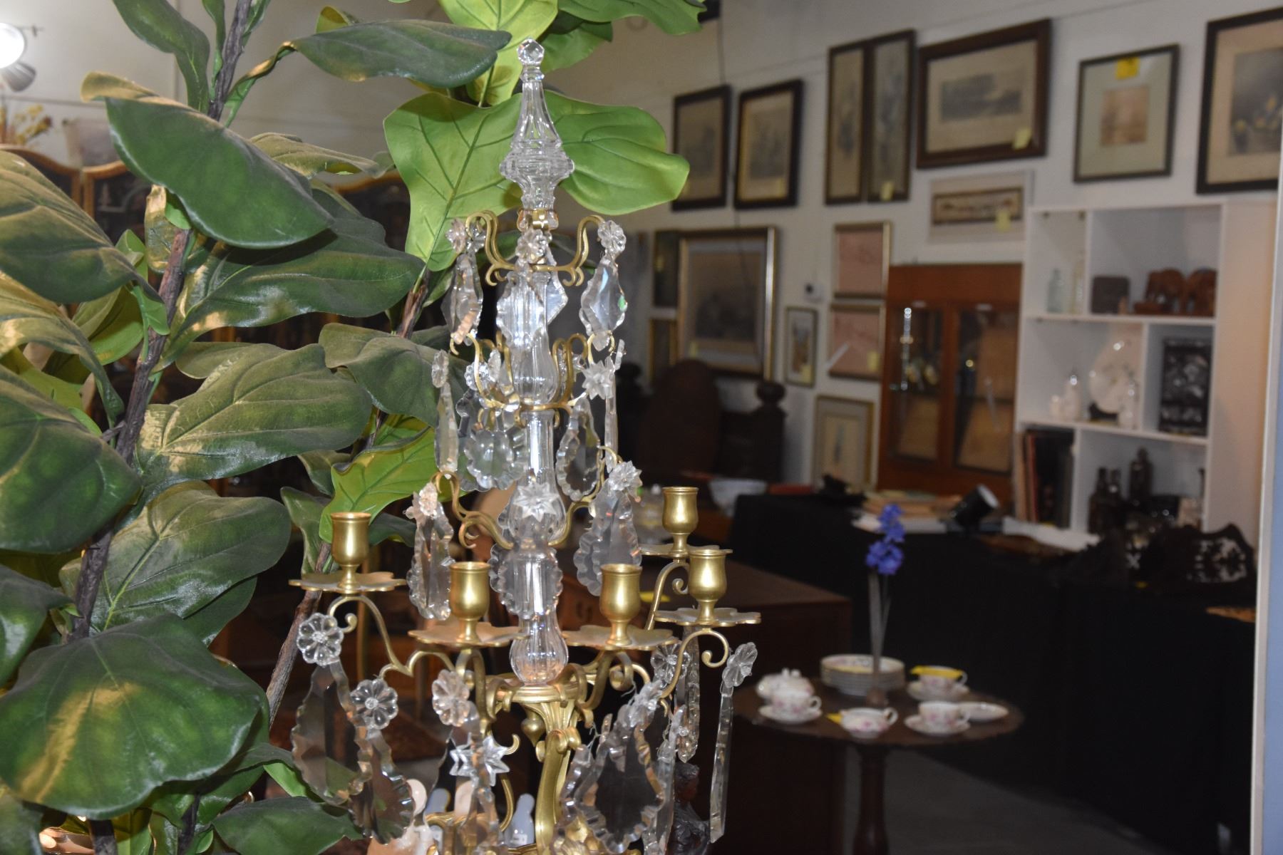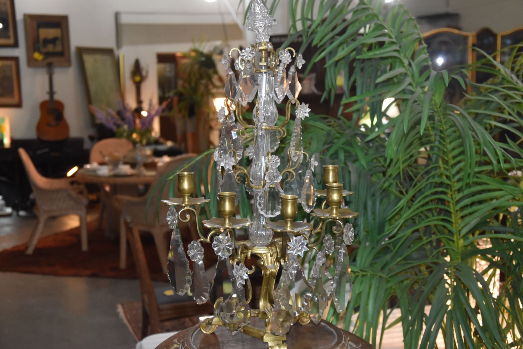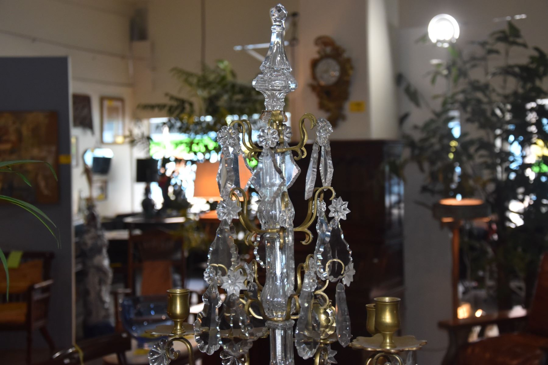 PAIR GILT WORK BRONZE & CRYSTAL CANDELABRAS (26") (PAIR)