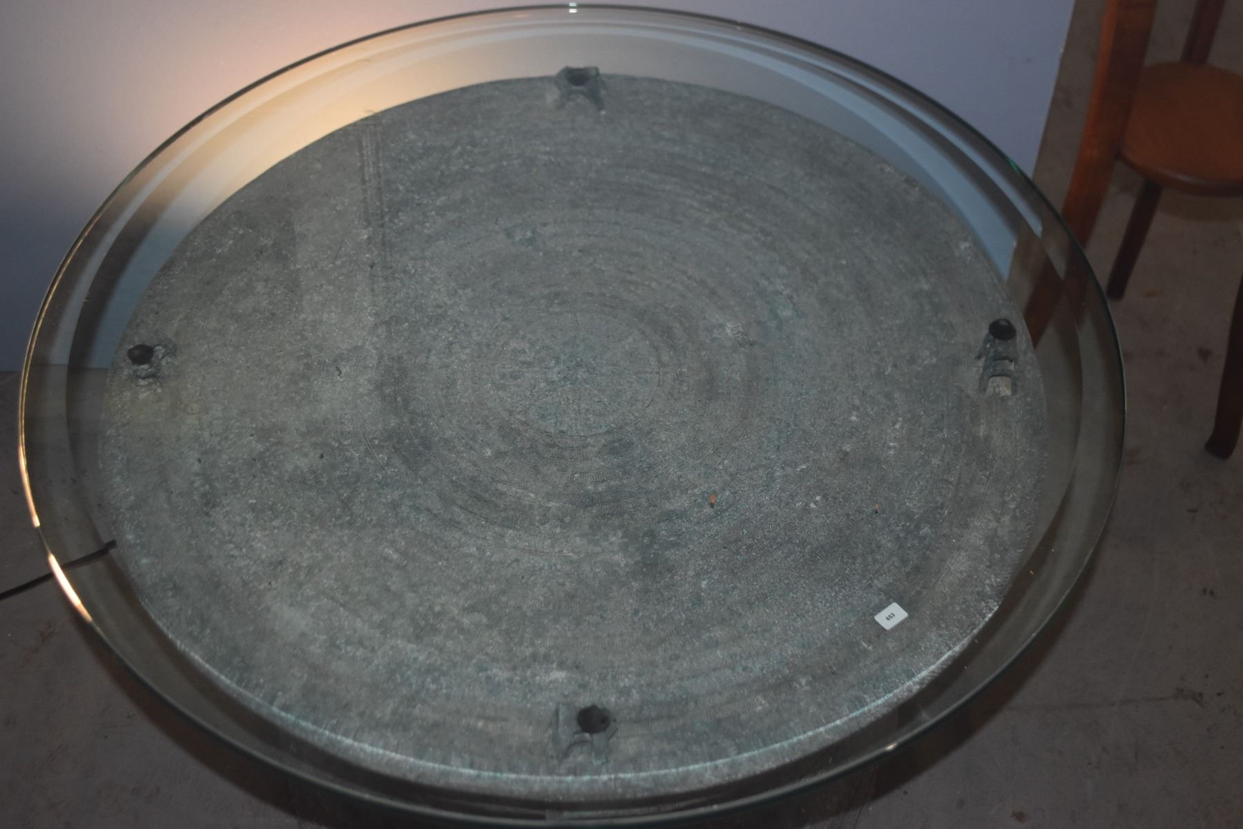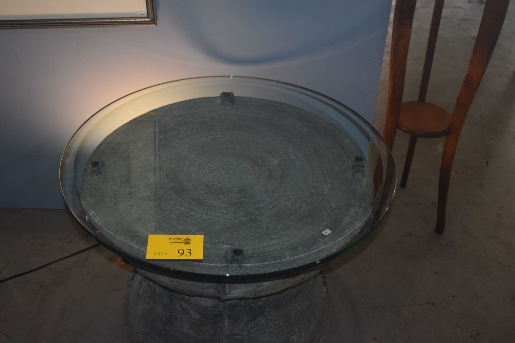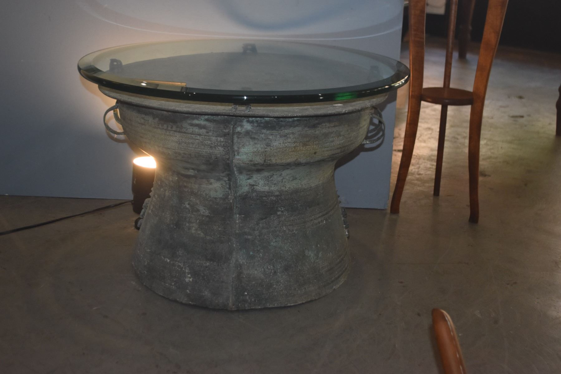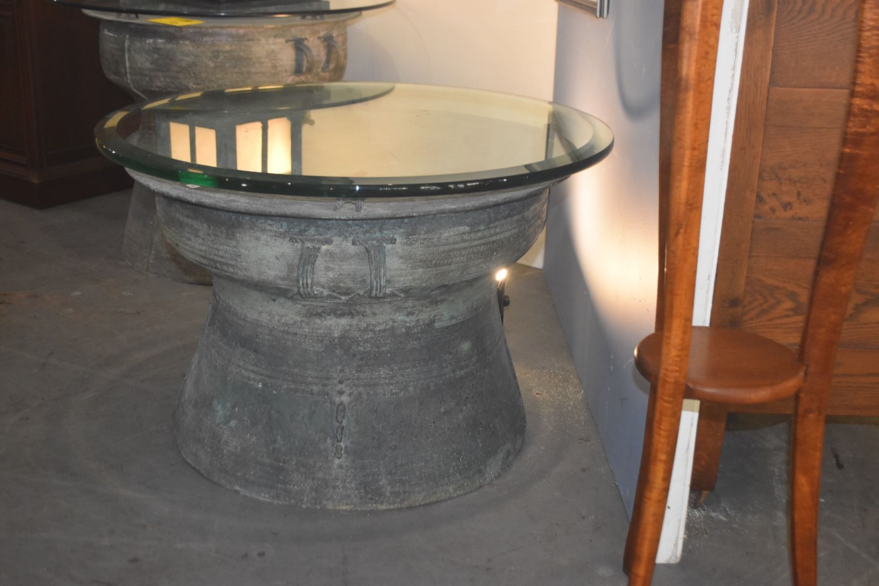 PAIR SOUTHEAST ASIAN BRONZE RAIN DRUMS W/GLASS TOPS (PAIR)