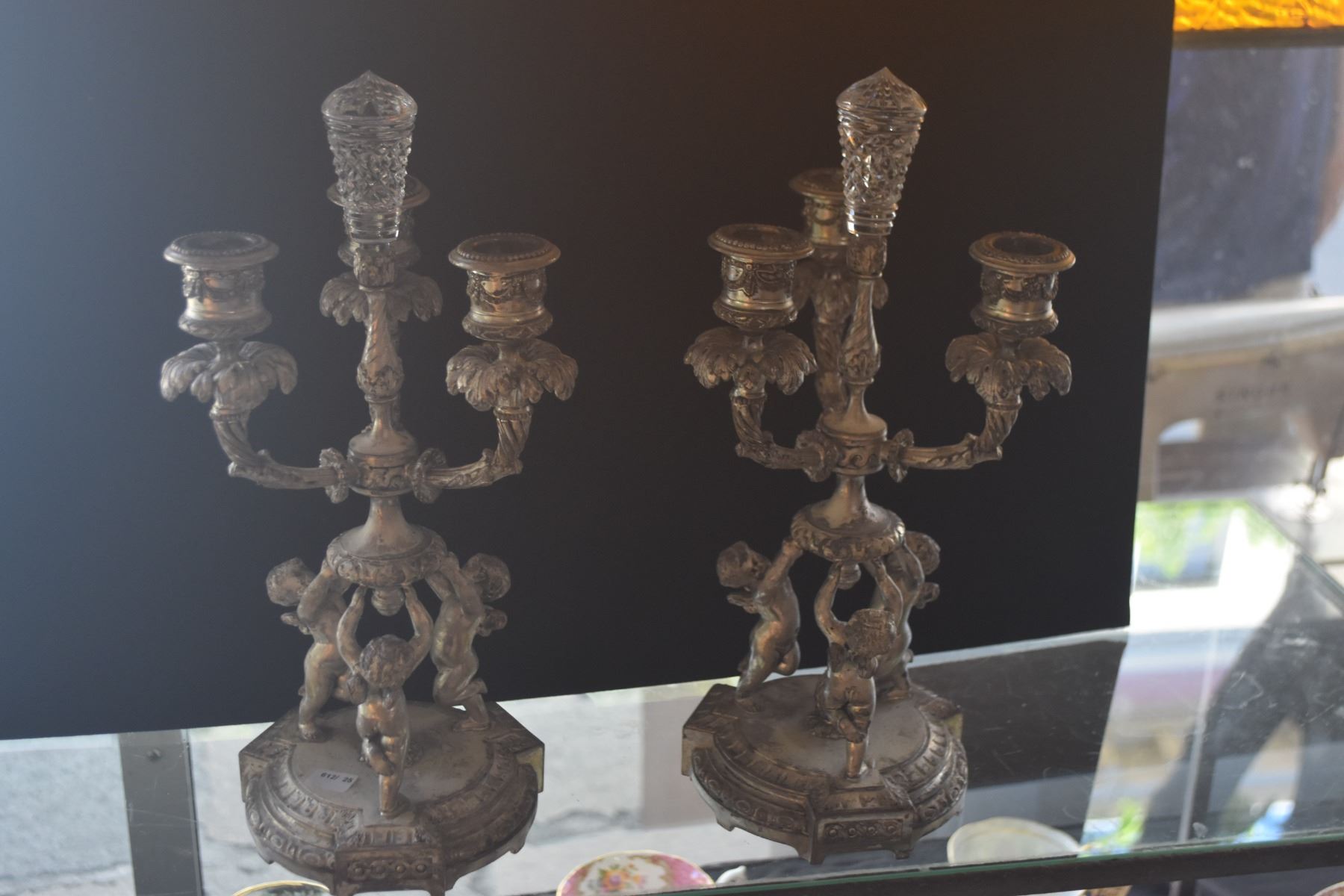PAIR VINTAGE CANDELABRA SET W/ANGEL MOTIF (PAIR)