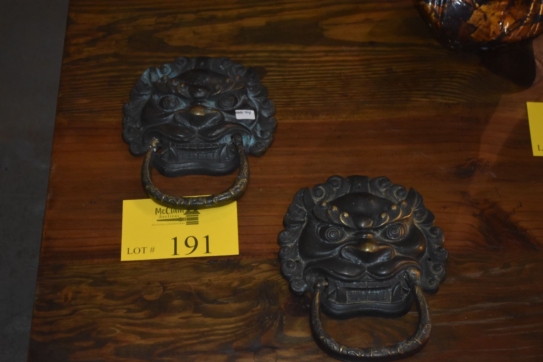PAIR VINTAGE CHINESE BRONZE DOOR KNOCKERS, STYLIZED BEAST/LION LIKE FACES (PAIR)