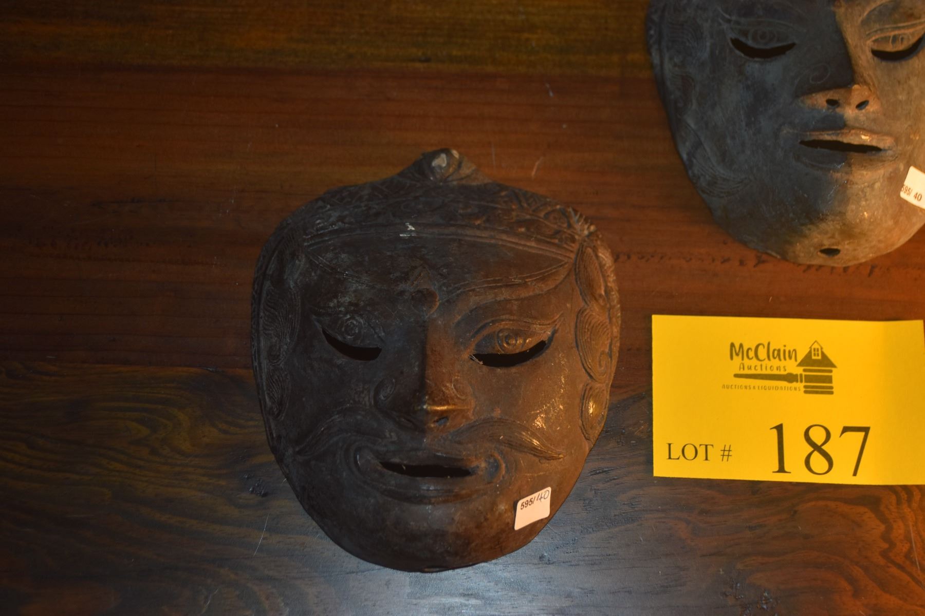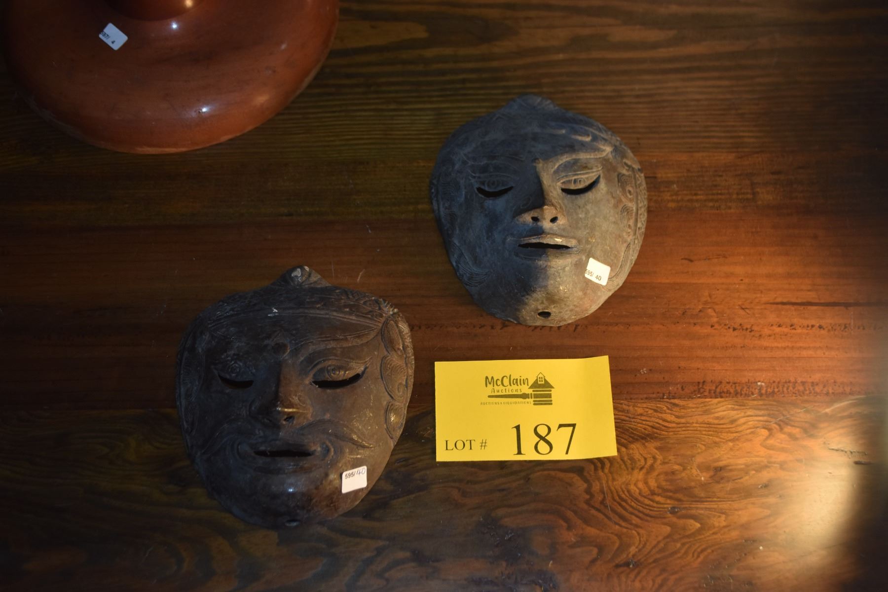 PAIR VINTAGE SOUTH EAST ASIAN HAMMERED METAL MASKS (PAIR)