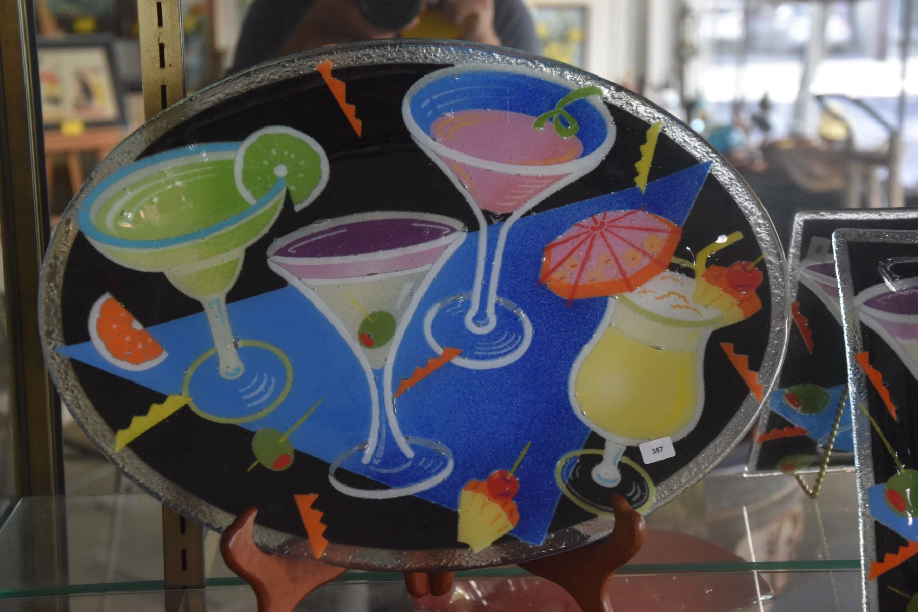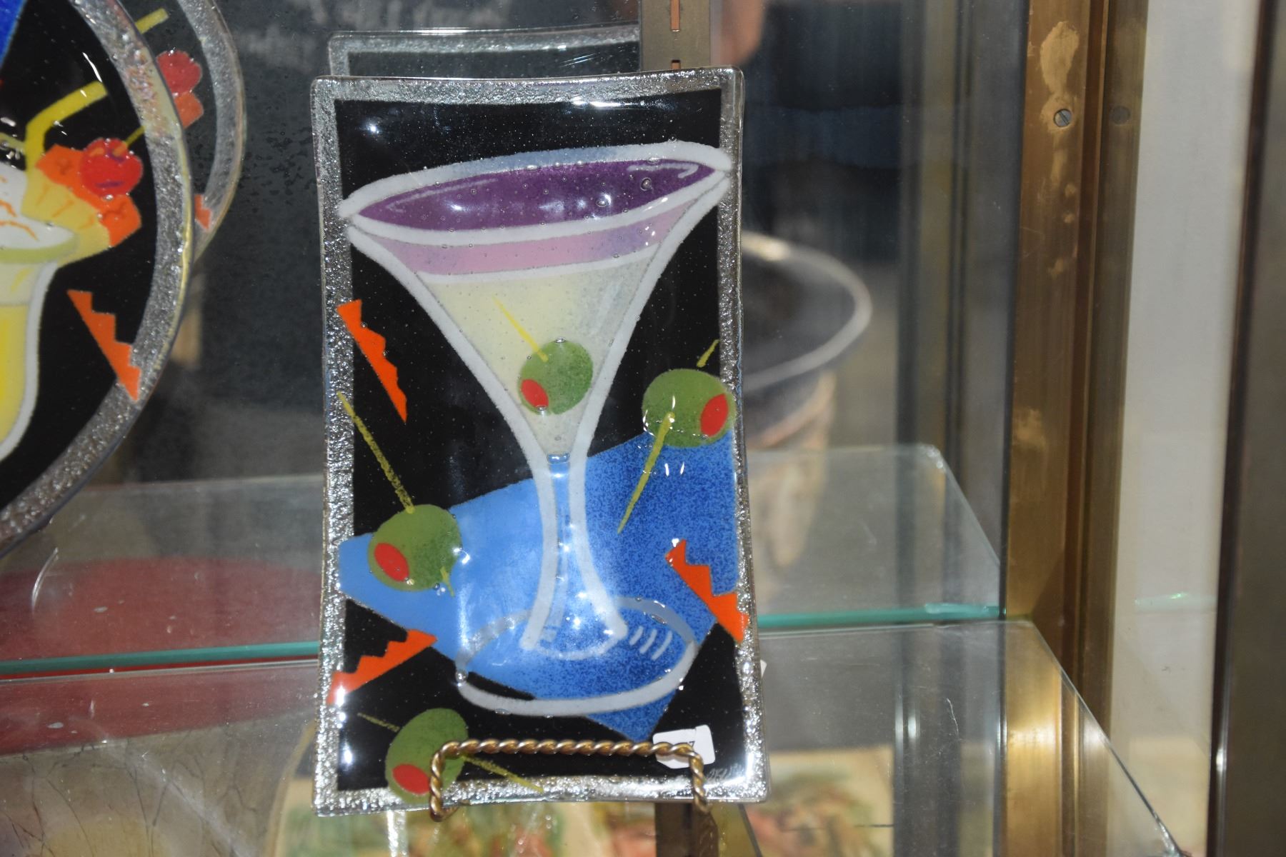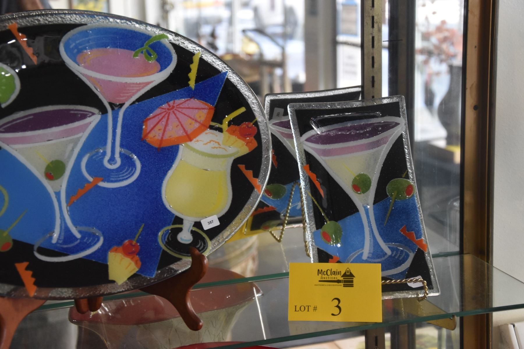 PEGGY KARR FUSED GLASS PLATES W/COCKTAIL MOTIF & ORIGINAL BOXES (2 PCS) (DOES NOT INCLUDE STAND)