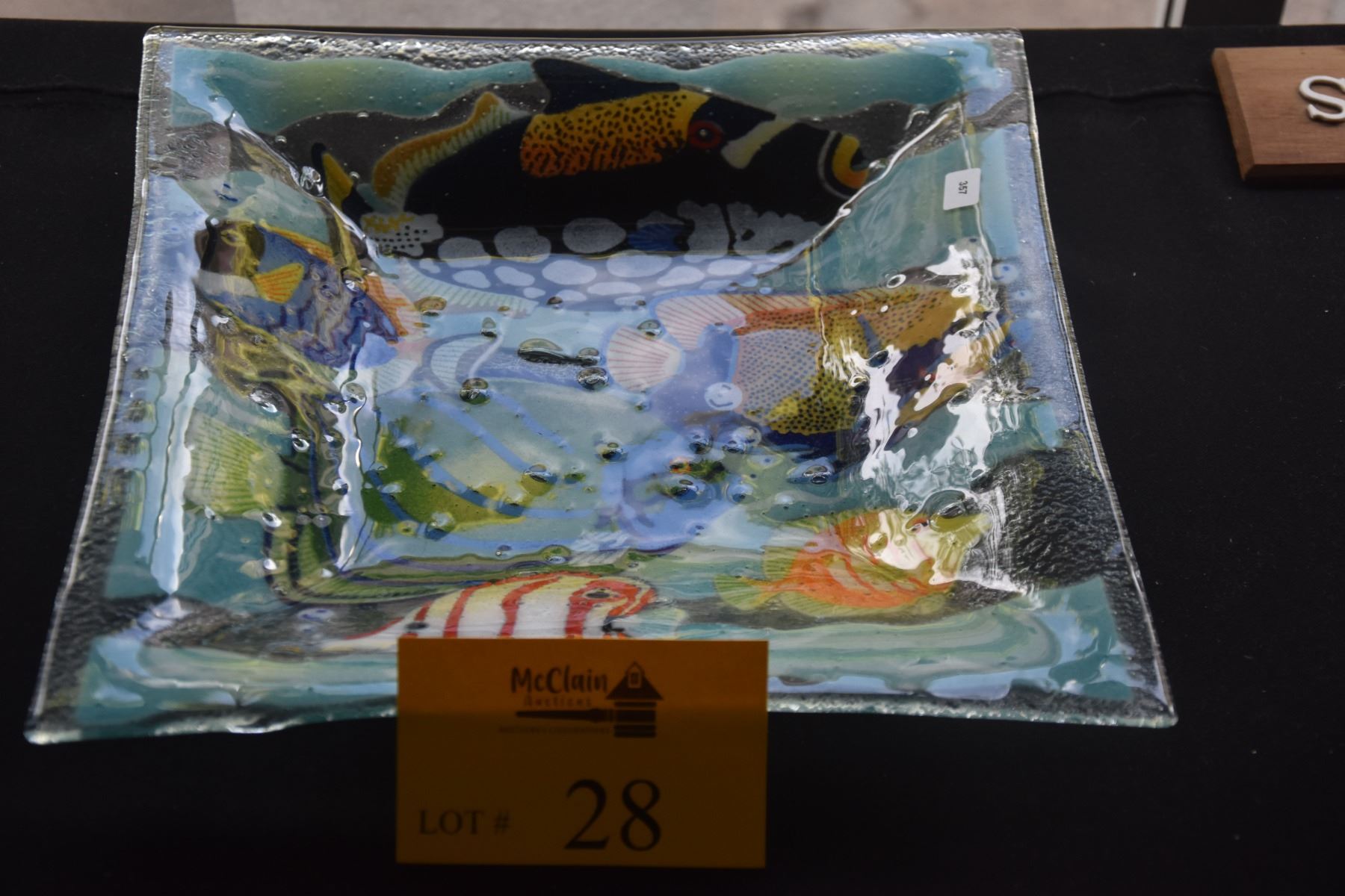 PEGGY KARR FUSED GLASS TROPICAL FISH SQUARE PLATE (DOES NOT INCLUDE STAND)