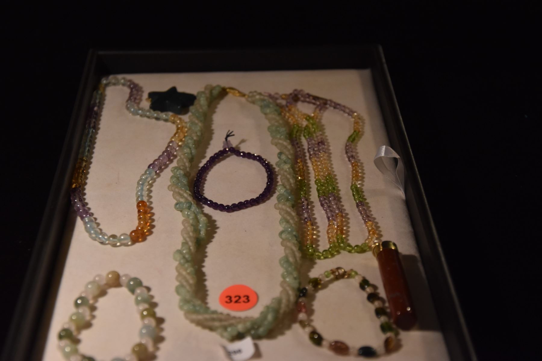 PERIDOT, AMETHYST, CITRINE & JASPER NECKLACES, BRACELETS & PENDANTS (9 PCS)