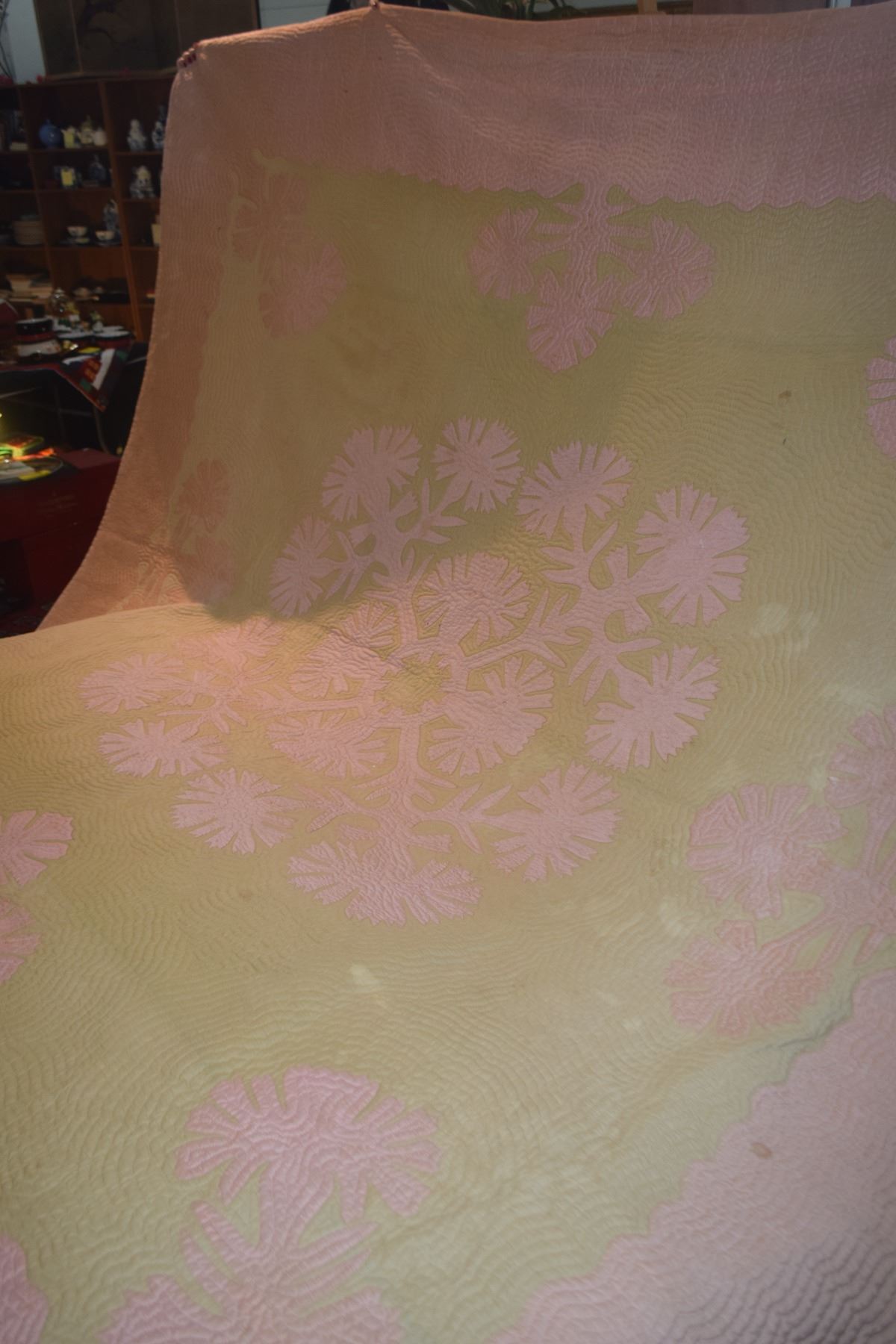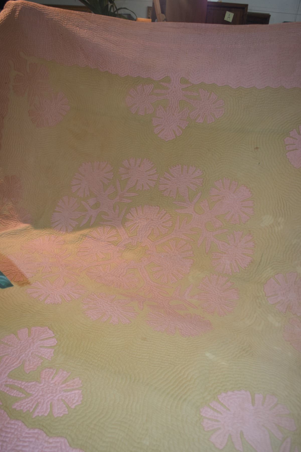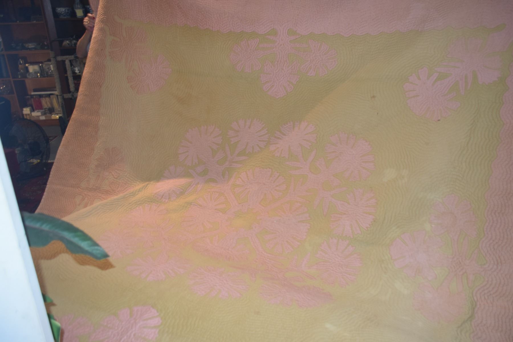 PINK & BEIGE HAND STITCHED HAWAIIAN QUILT