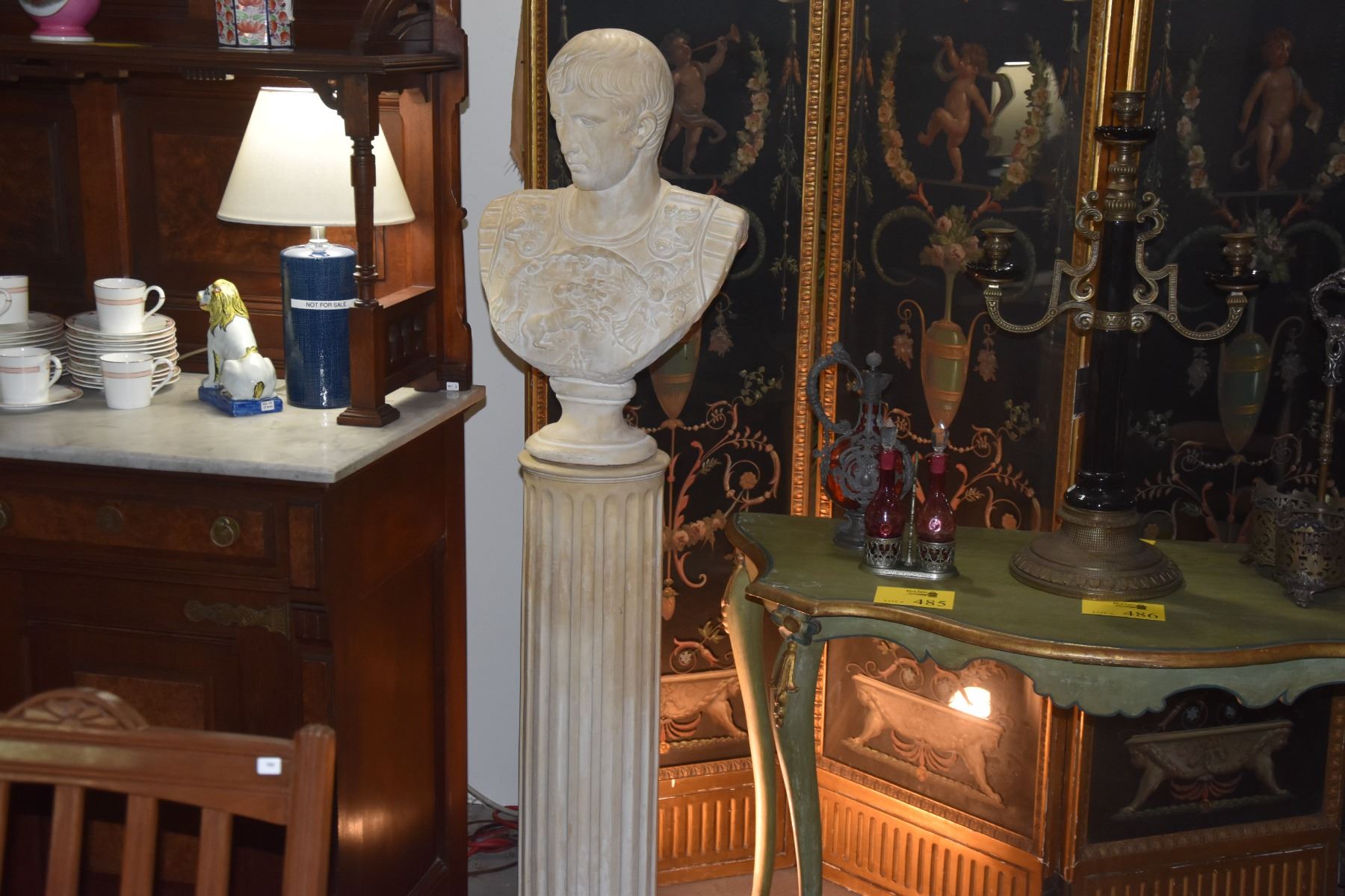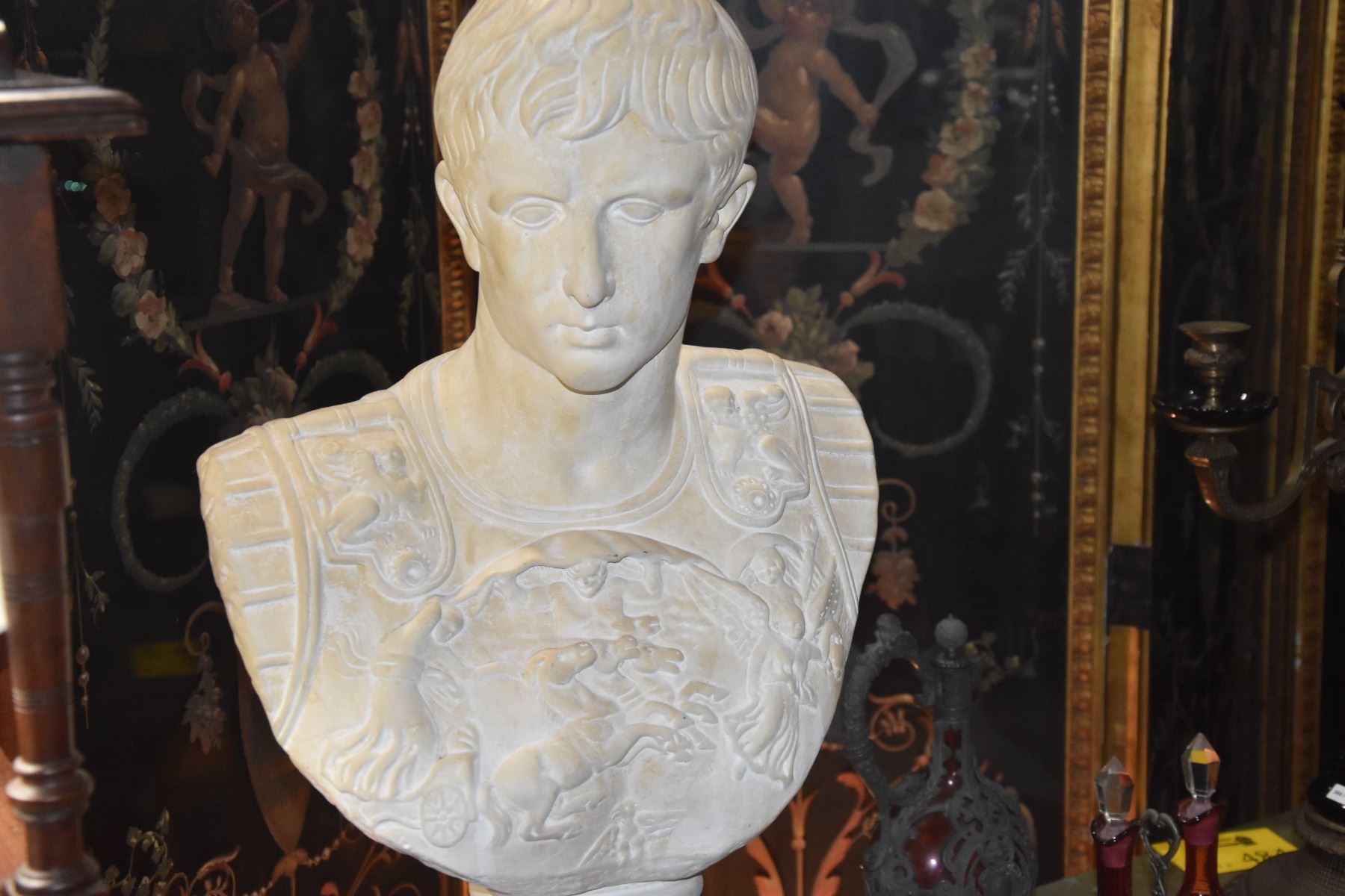 PLASTER BUST OF JULIUS CAESAR W/PEDESTAL (2 PCS)