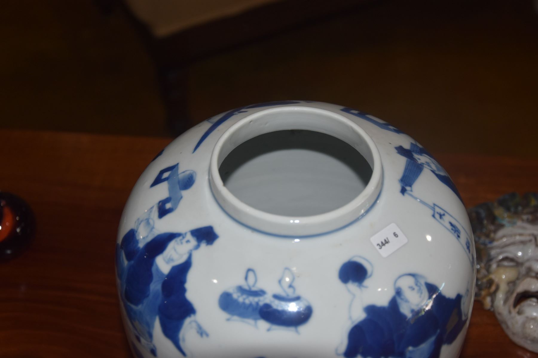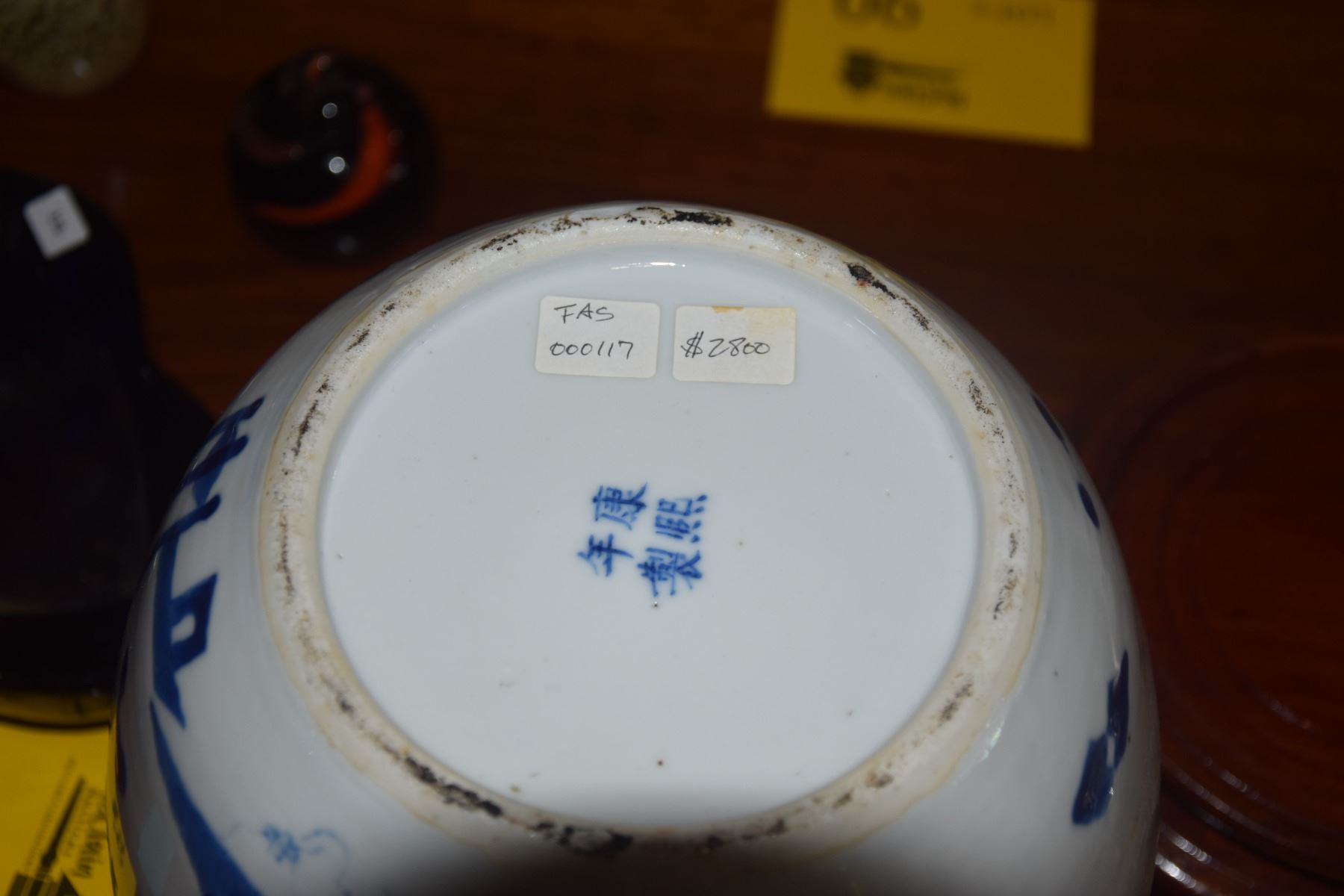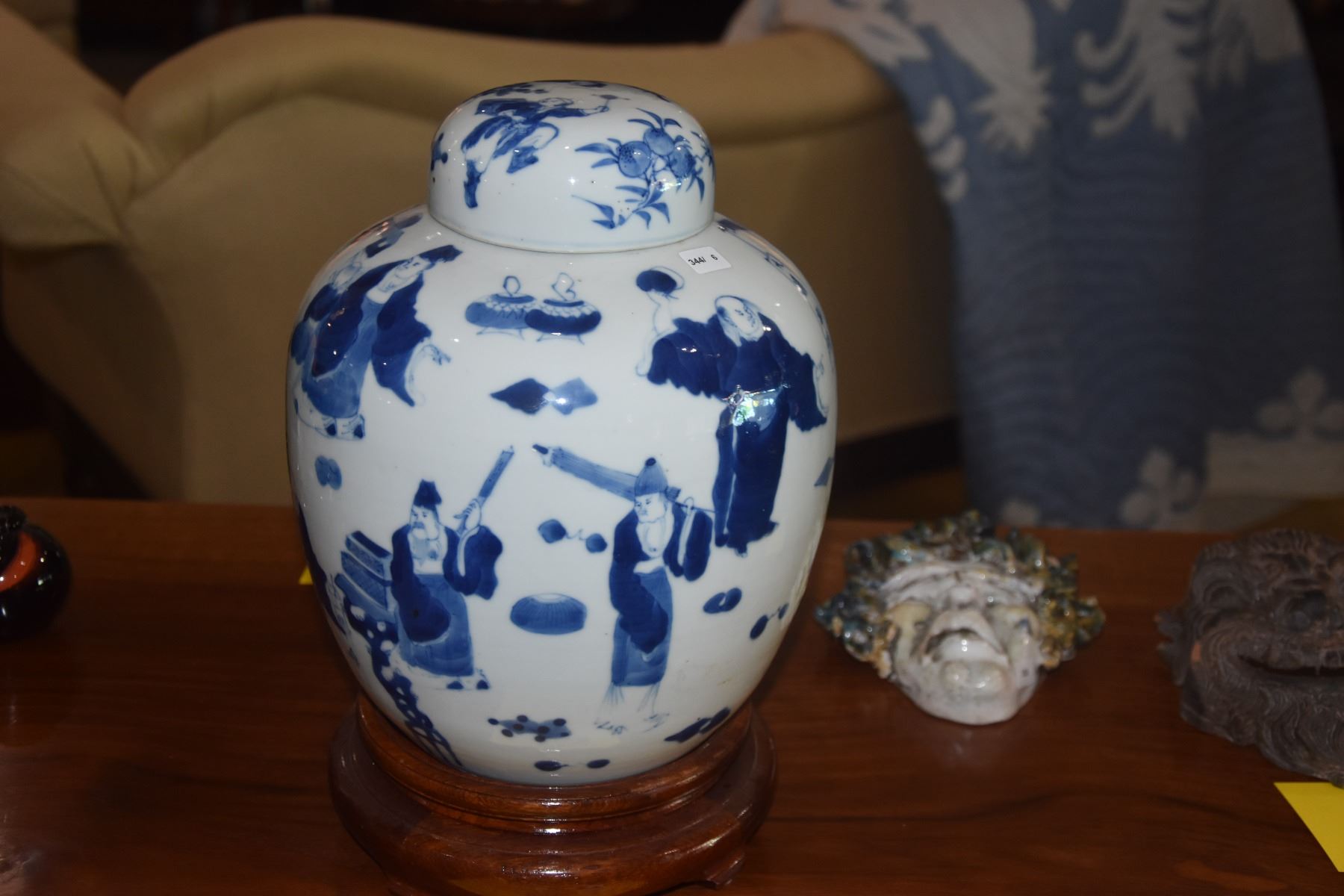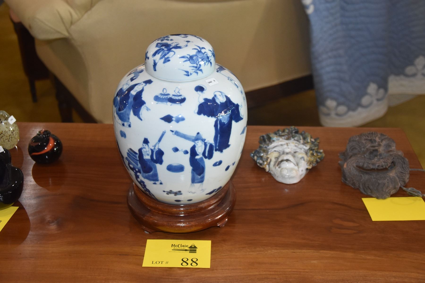 PORCELAIN BLUE & WHITE COVERED GINGER JAR, KANG HSI (17TH CENTURY) MARK W/STAND
