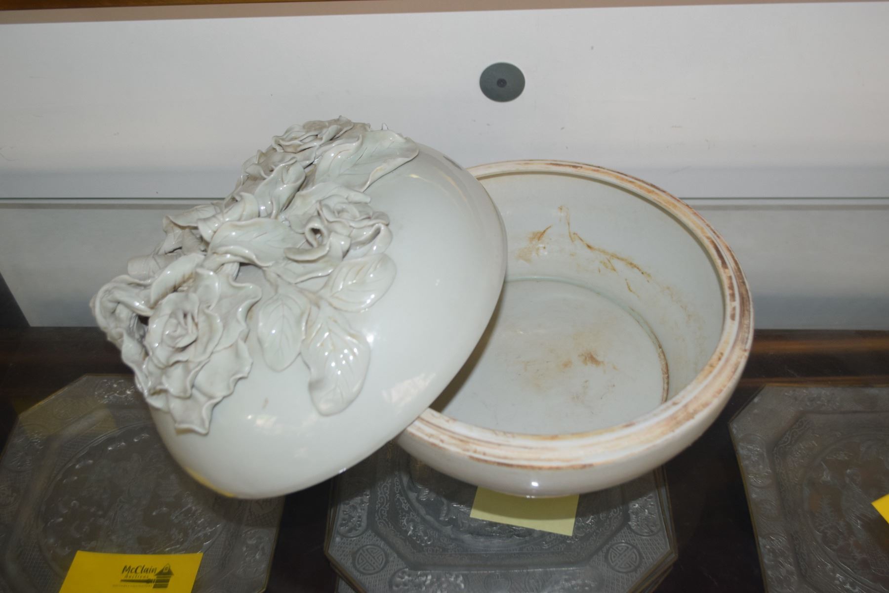 PORCELAIN COVERED BOWL W/HIGH RELIEF ROSE MOTIF