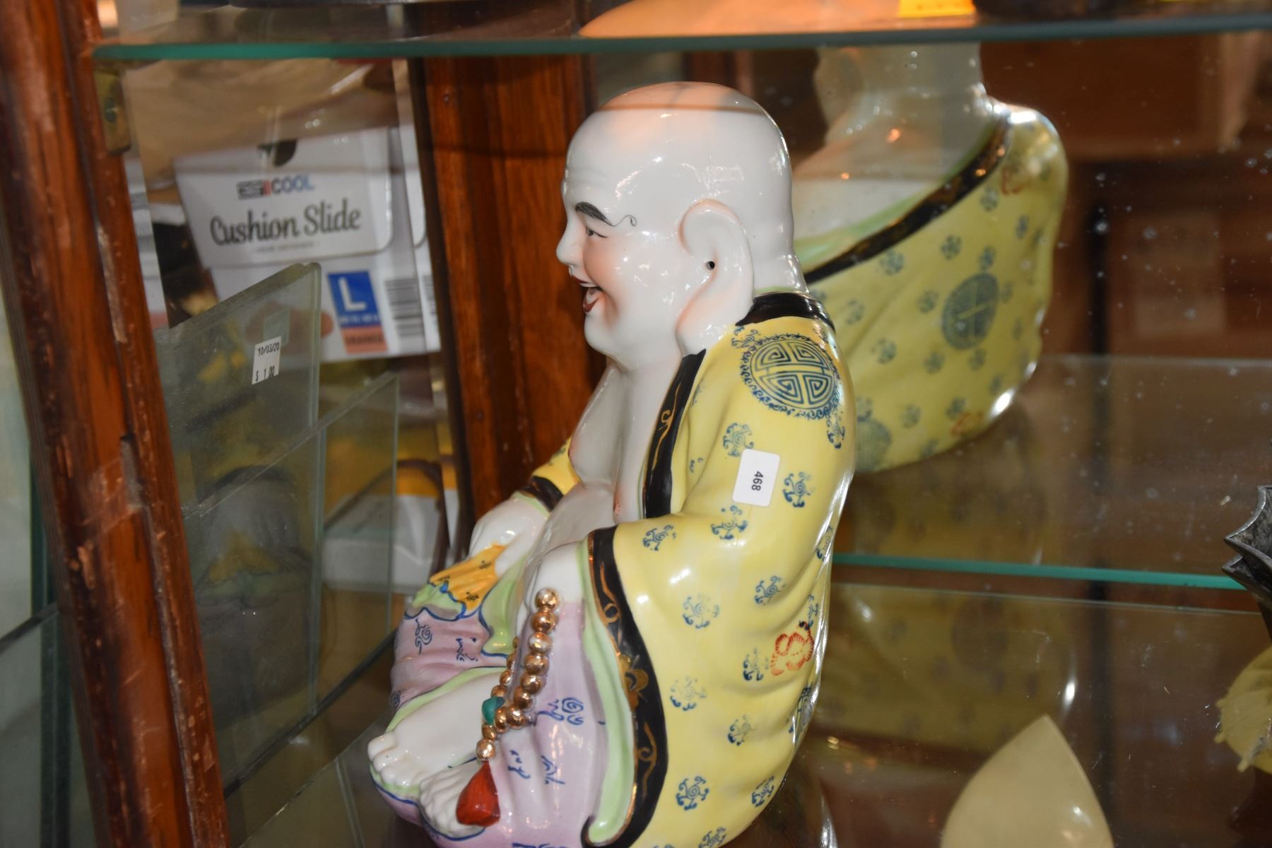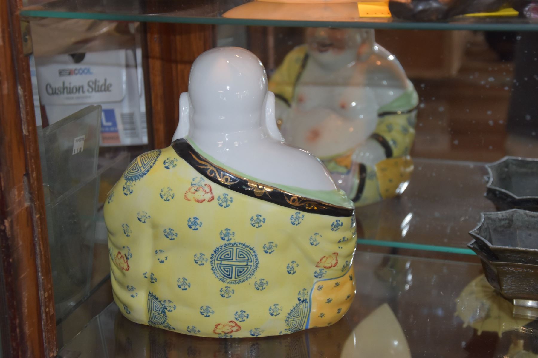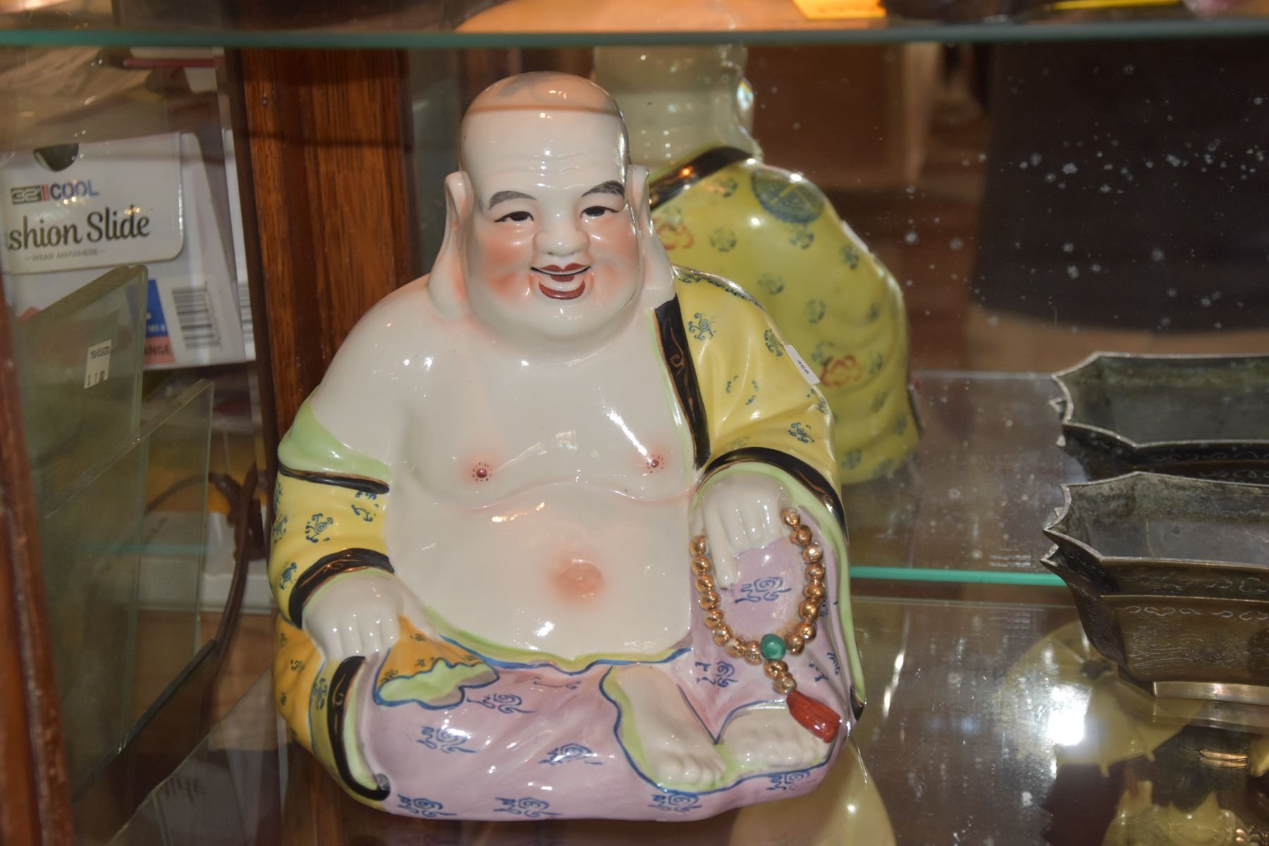 PORCELAIN HAPPY BUDDHA & VINTAGE MUDMAN FISHERMAN (2 PCS)