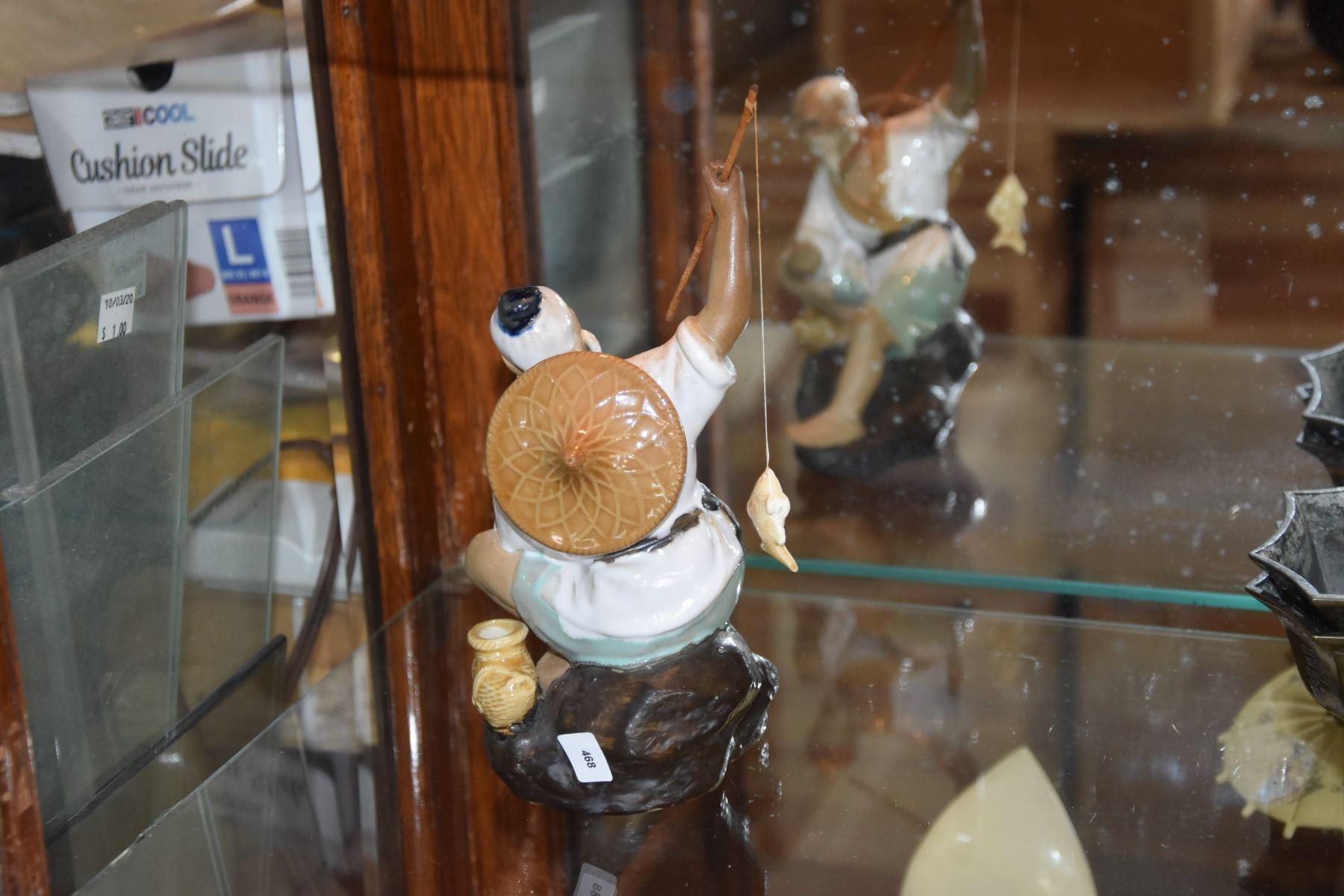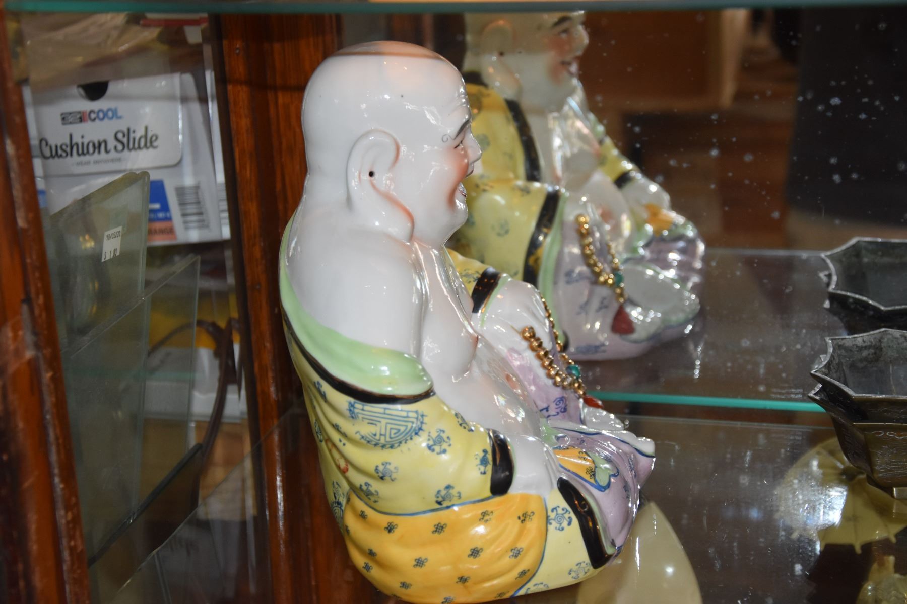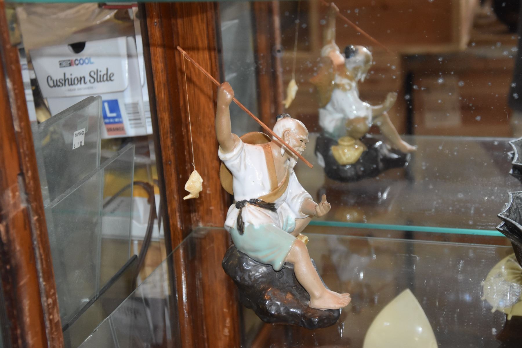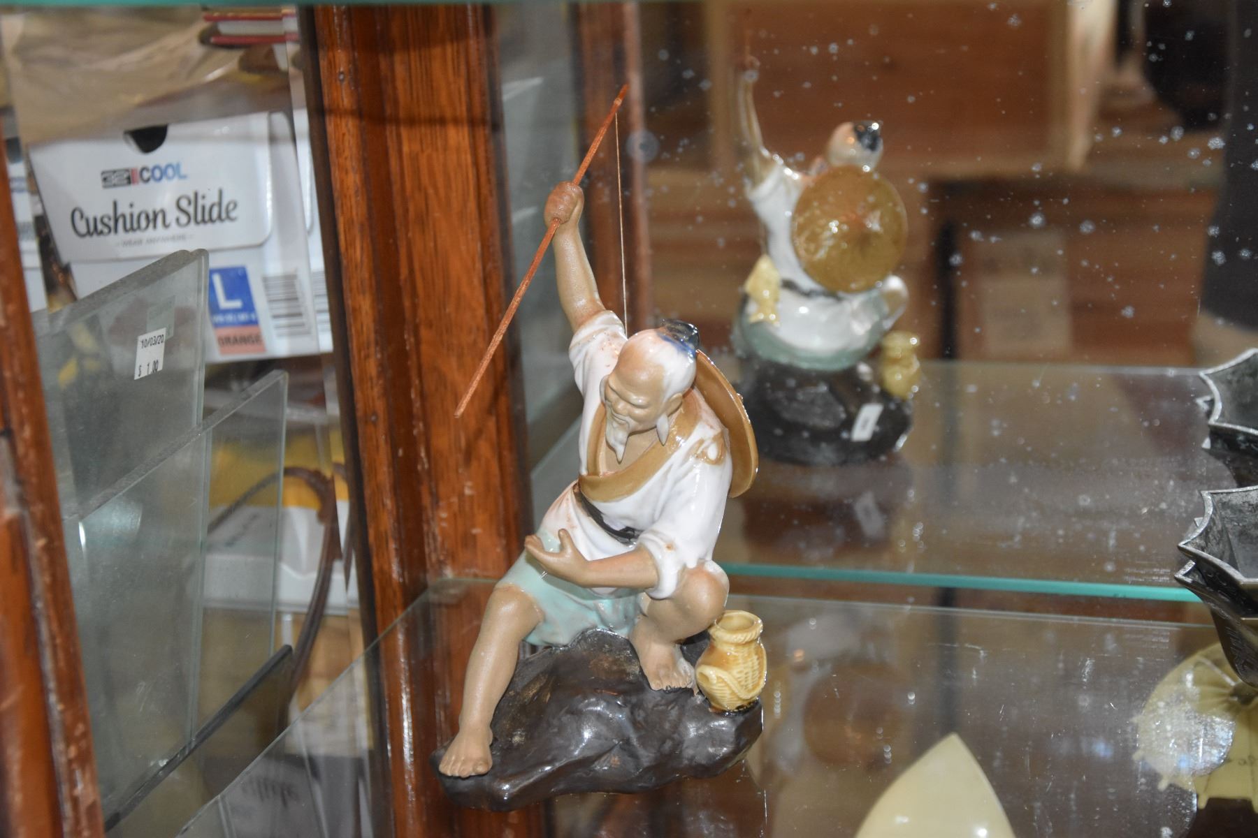 PORCELAIN HAPPY BUDDHA & VINTAGE MUDMAN FISHERMAN (2 PCS)