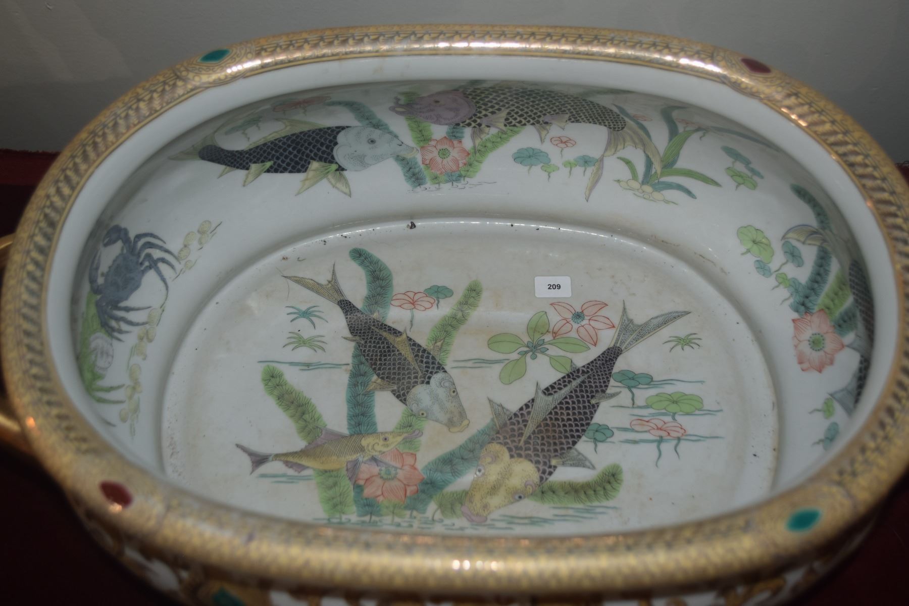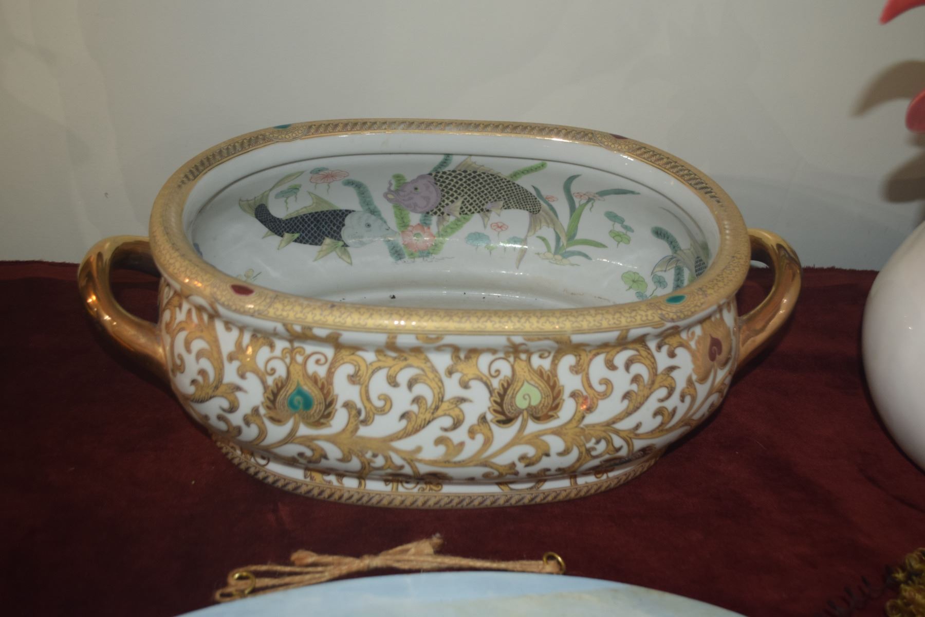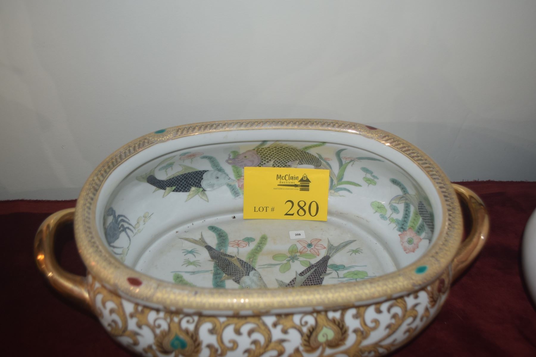 PORCELAIN JARDINIERE W/FISH MOTIF (18" X 10")