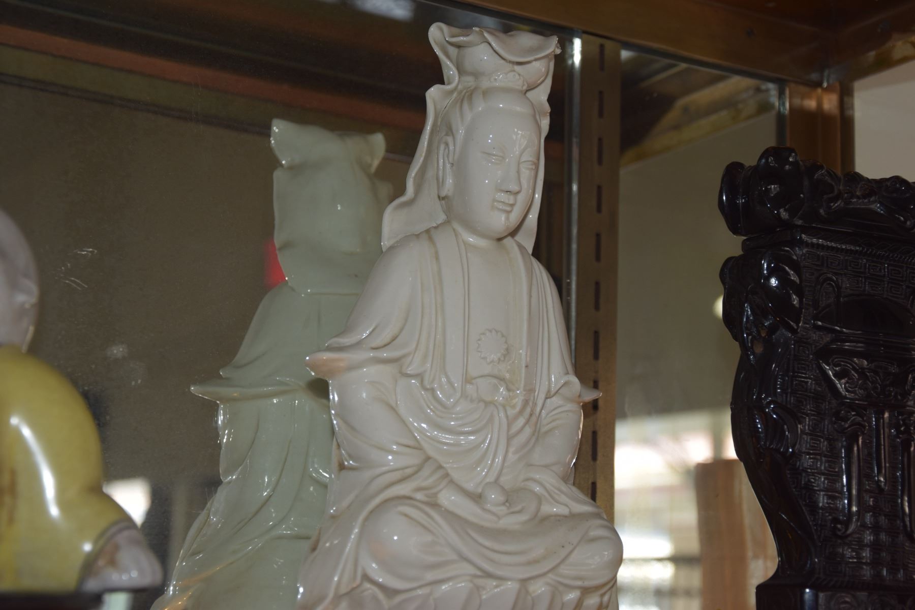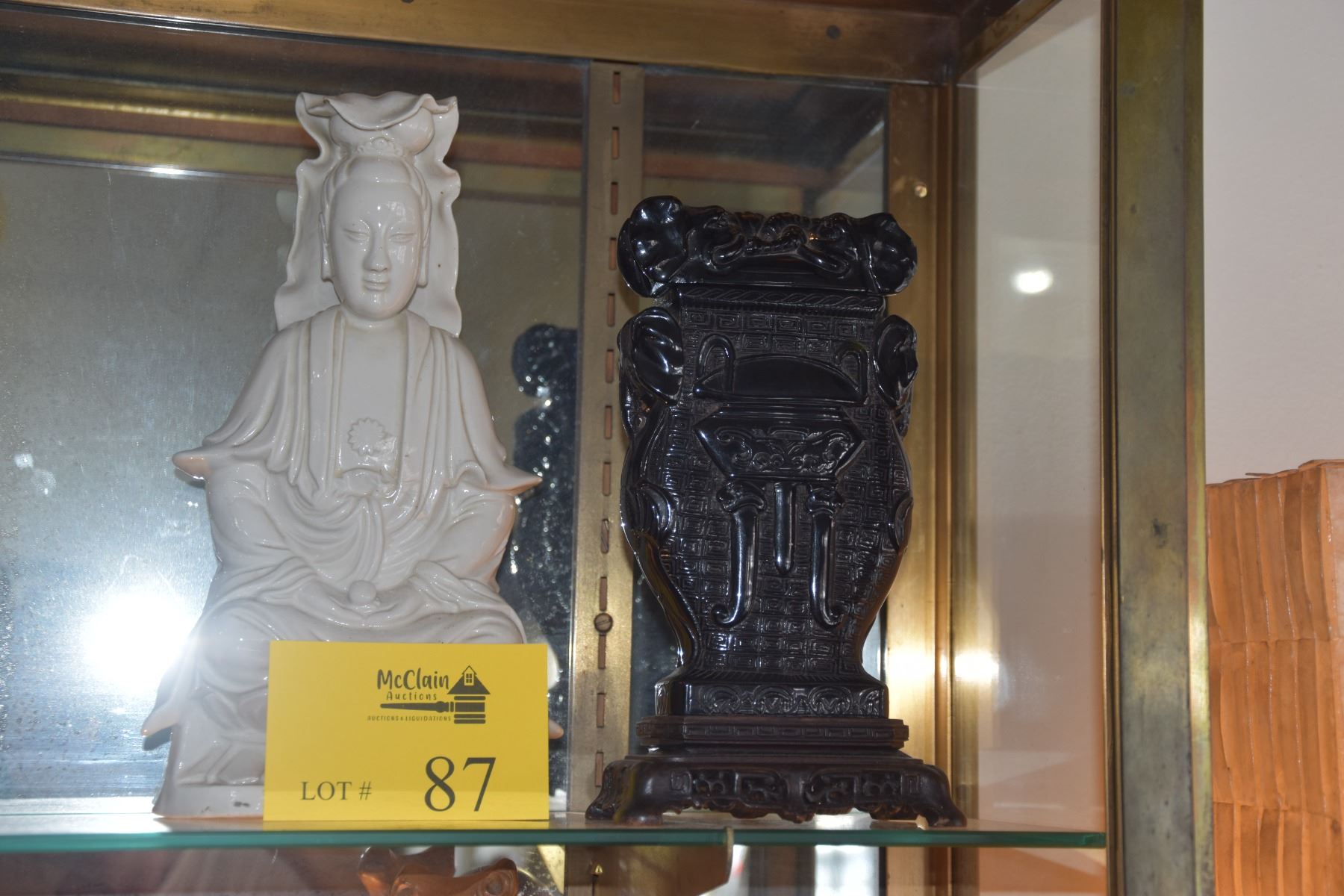 PORCELAIN SEATED QUAN YIN & LIDDED VASE (2 PCS)