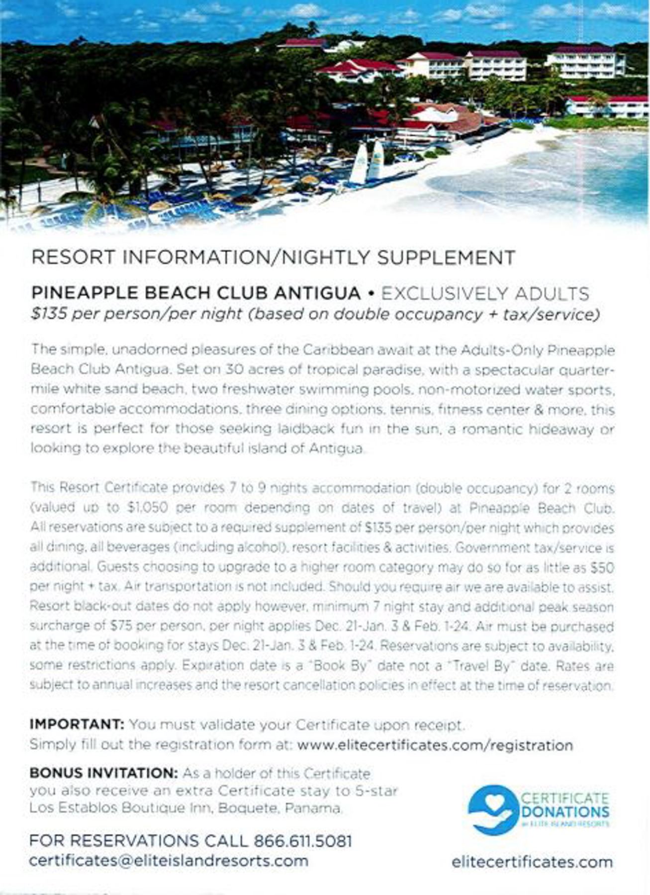 7 to 9 nights of Oceanview accommodation, for two rooms double occupancy at the following Caribbean beachfront resort Pineapple Beach Club Antigua