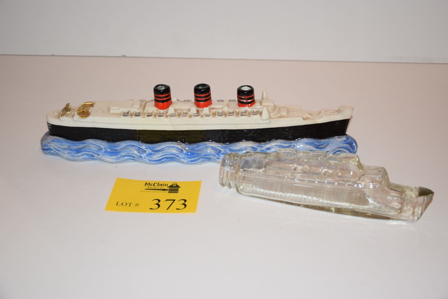 QUEEN MARY LIQUER BOTTLE-ANNEE 1970, MODELE EXLUSIF N. 200, GARNIER LIQUERS & CLEAR GLASS QUEEN MARY BOTTLE (2 PCS)