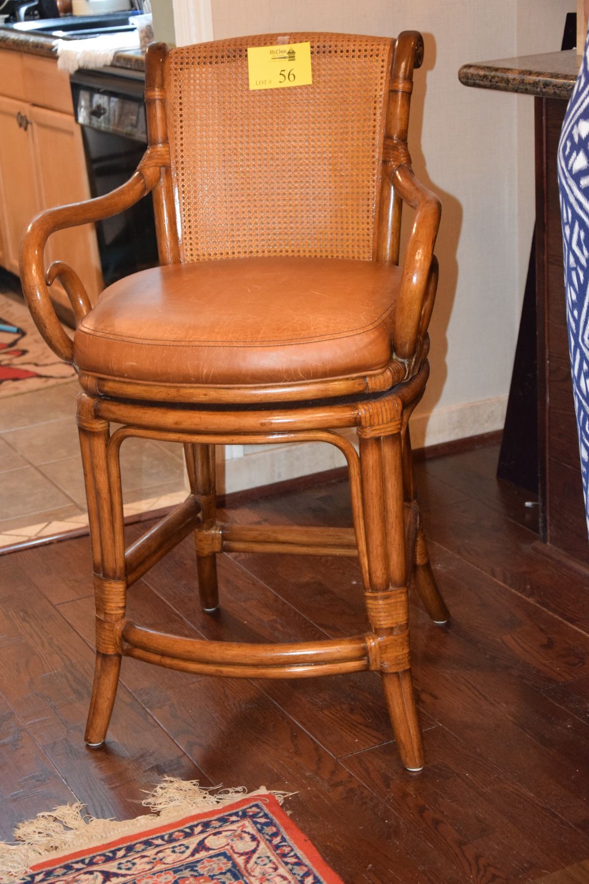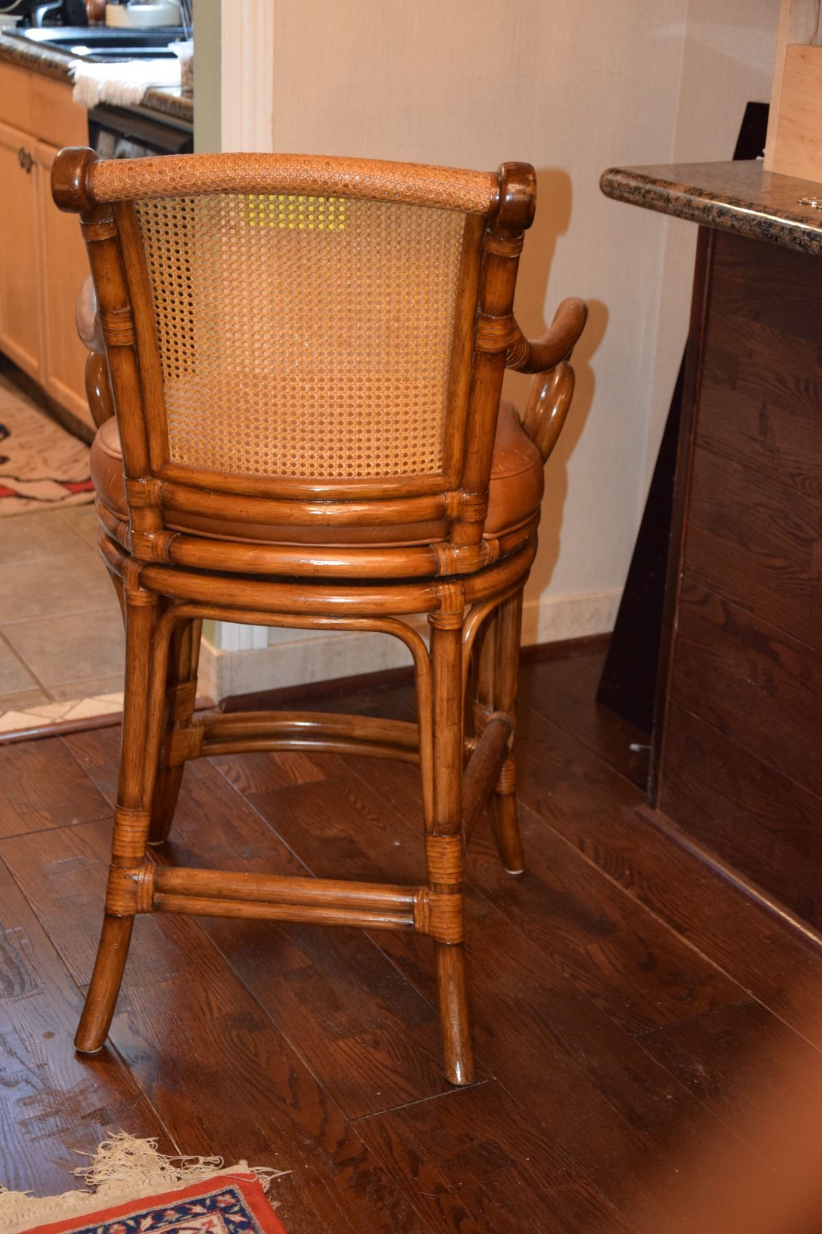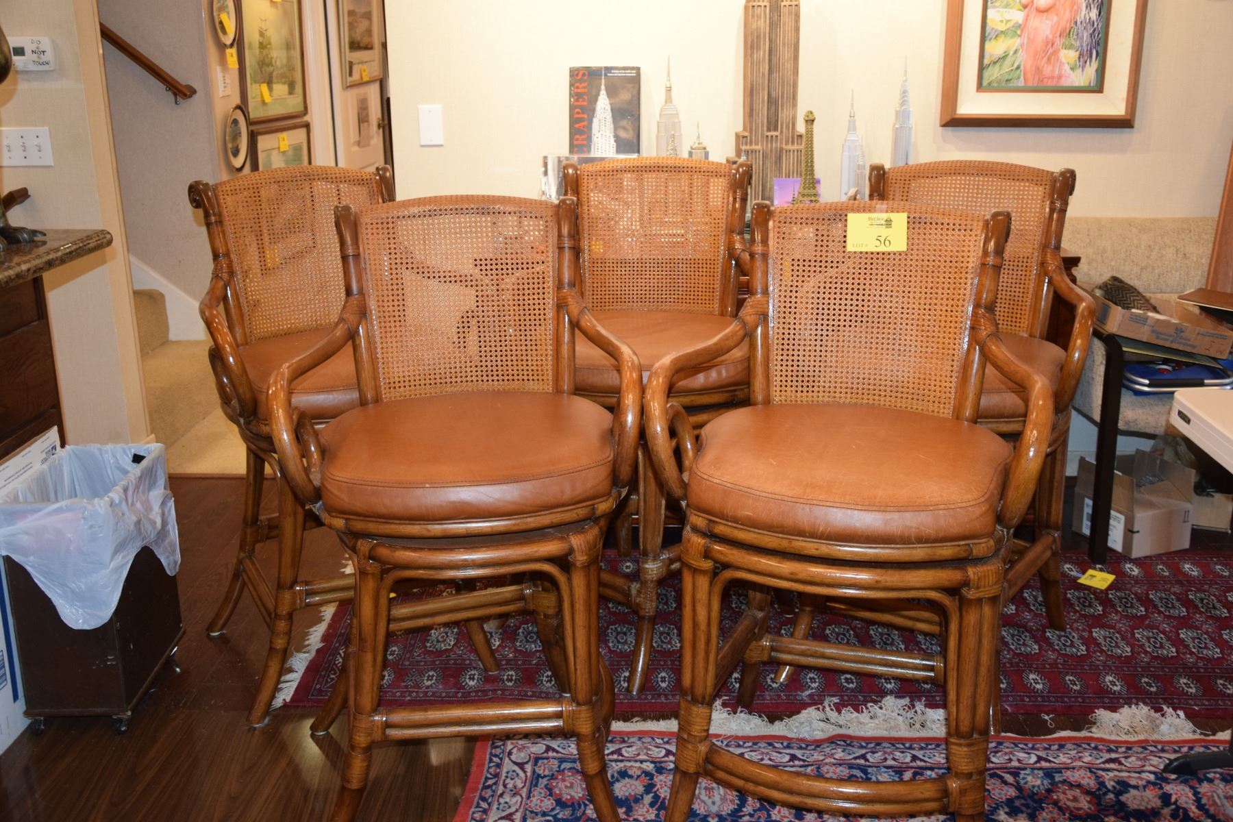 RATTAN BAR SWIVEL STOOLS W/UPHOLSTERED SEATS & CANE BACKS (5 PCS)